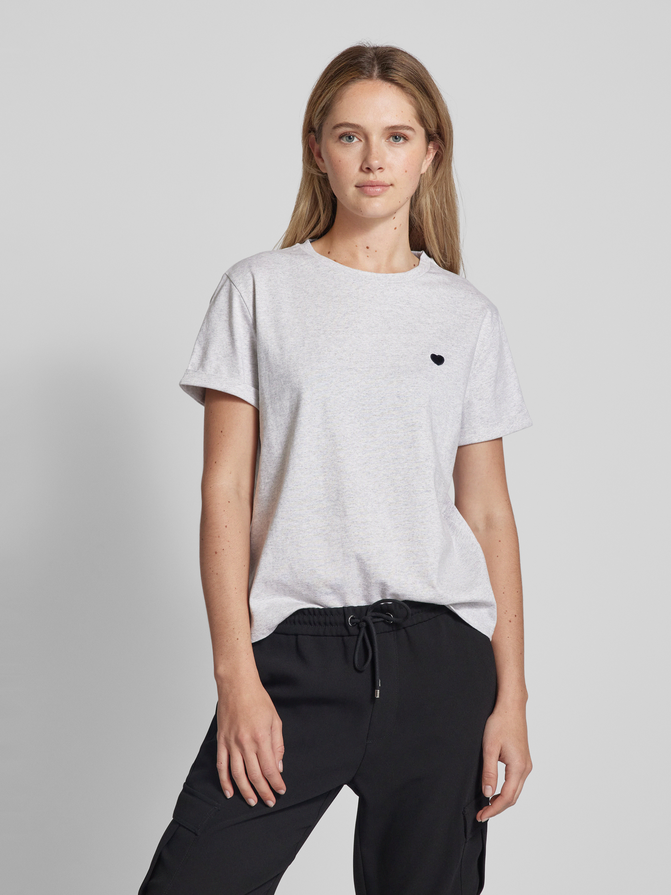 T-Shirt mit Motiv-Stitching Modell 'Serz' in mittelgrau