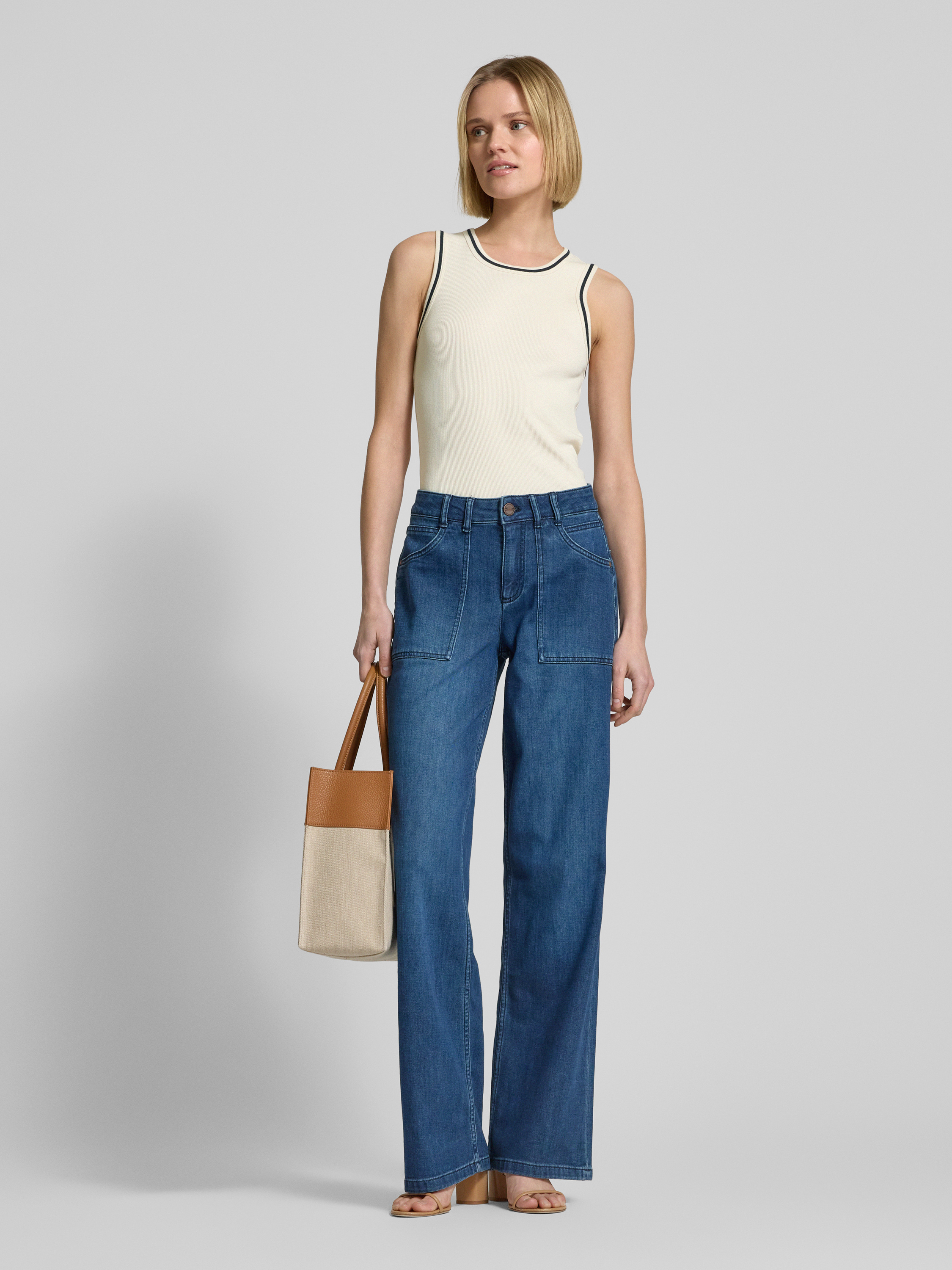 Das Tanktop 'Ilesso' von OPUS kombiniert einen körpernahen Schnitt mit einem angenehmen Baumwoll-Elasthan-Mix, der Bewegungsfreiheit gewährleistet. Der Rundhalsausschnitt verleiht eine klassische Note, während die gerippten Abschlüsse subtile Akzente setzen. Ideal für vielseitige Kombinationen im Alltag.