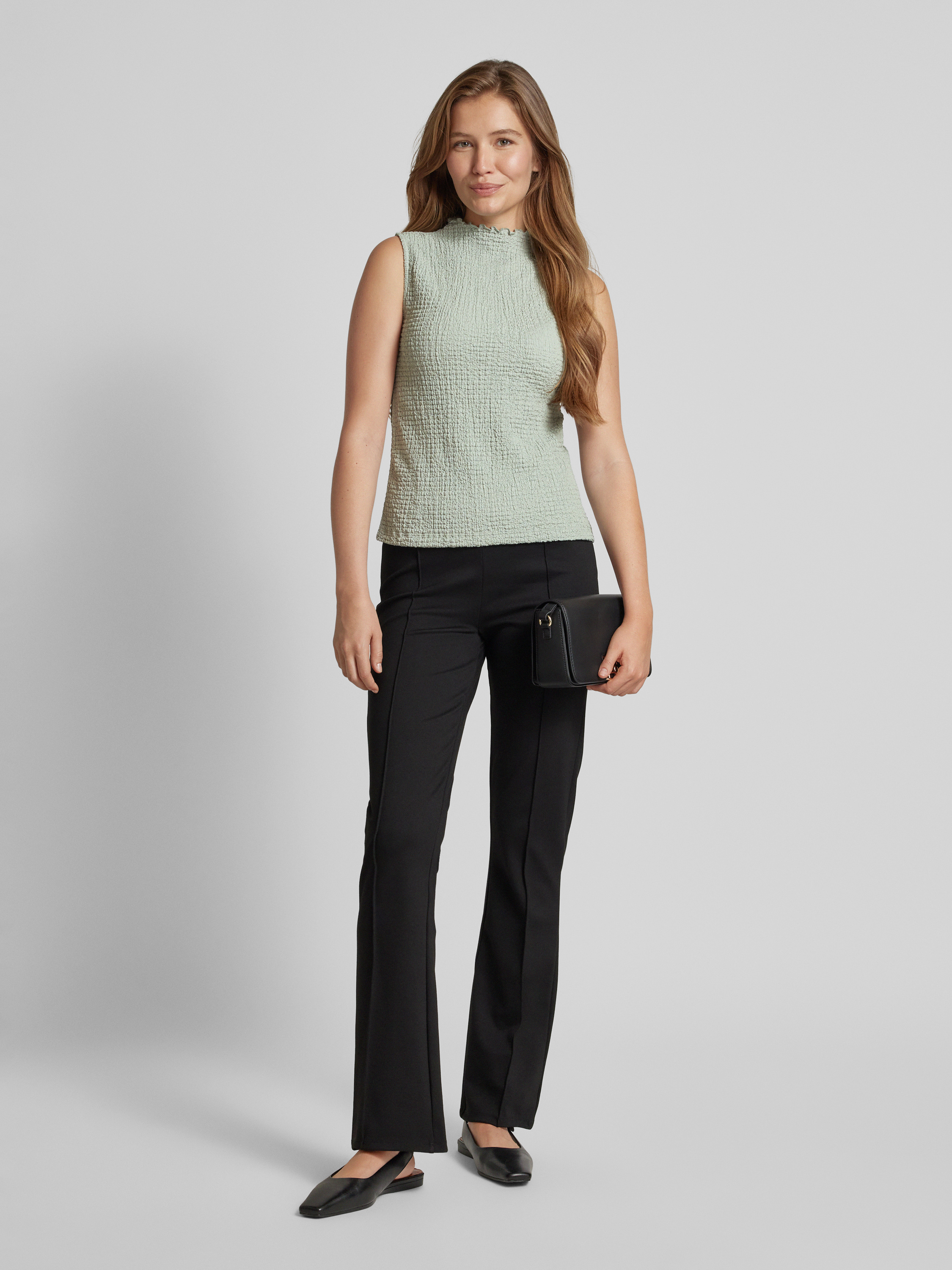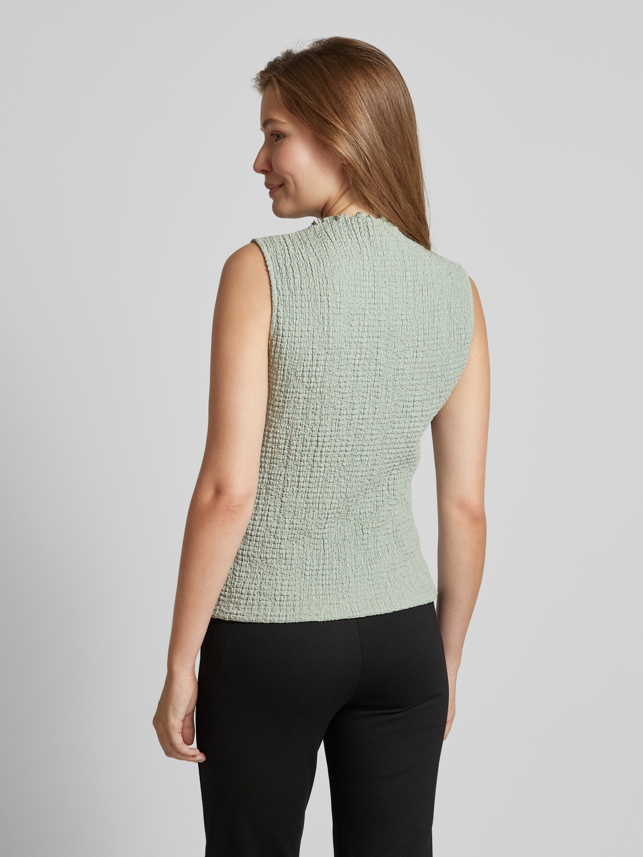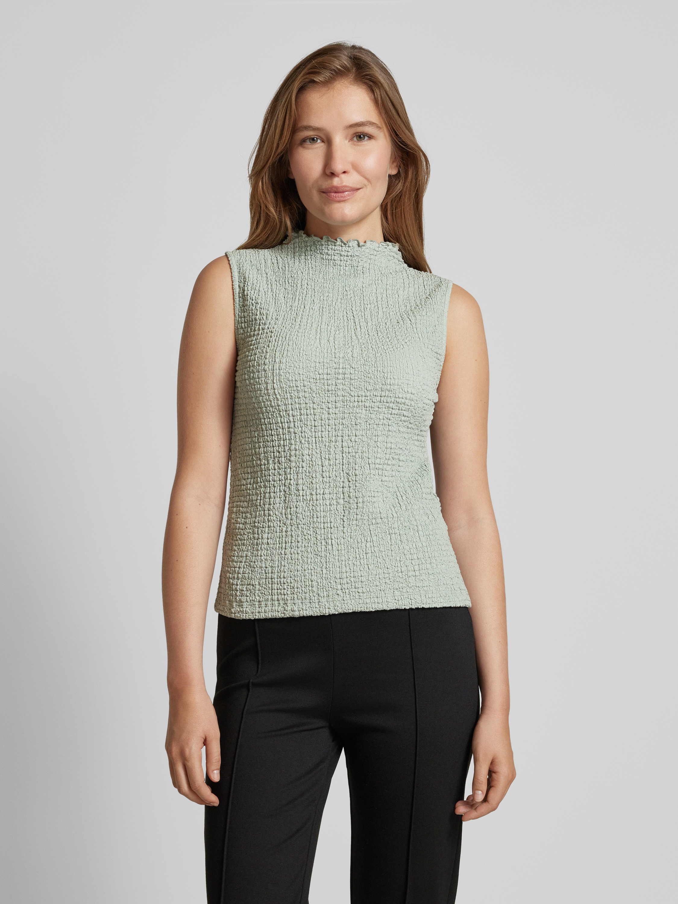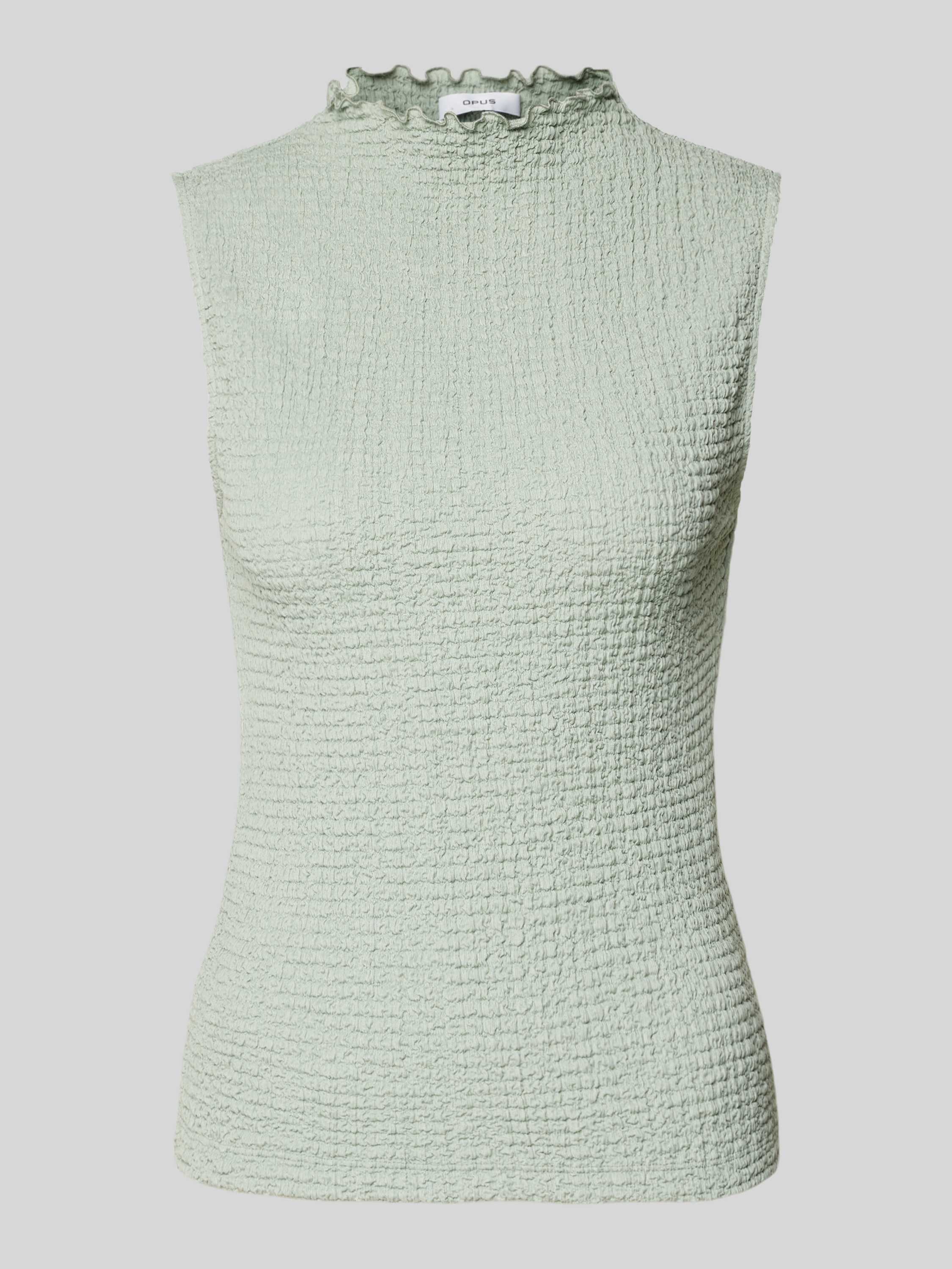 Das Damen Top von OPUS im Modell 'Iruki' kombiniert einen geraden Schnitt mit einem eleganten Turtleneck, was es vielseitig tragbar macht. Aus reiner Baumwolle gefertigt, fühlt sich das strukturierte Muster angenehm auf der Haut an und verleiht jedem Outfit eine dezente Raffinesse.