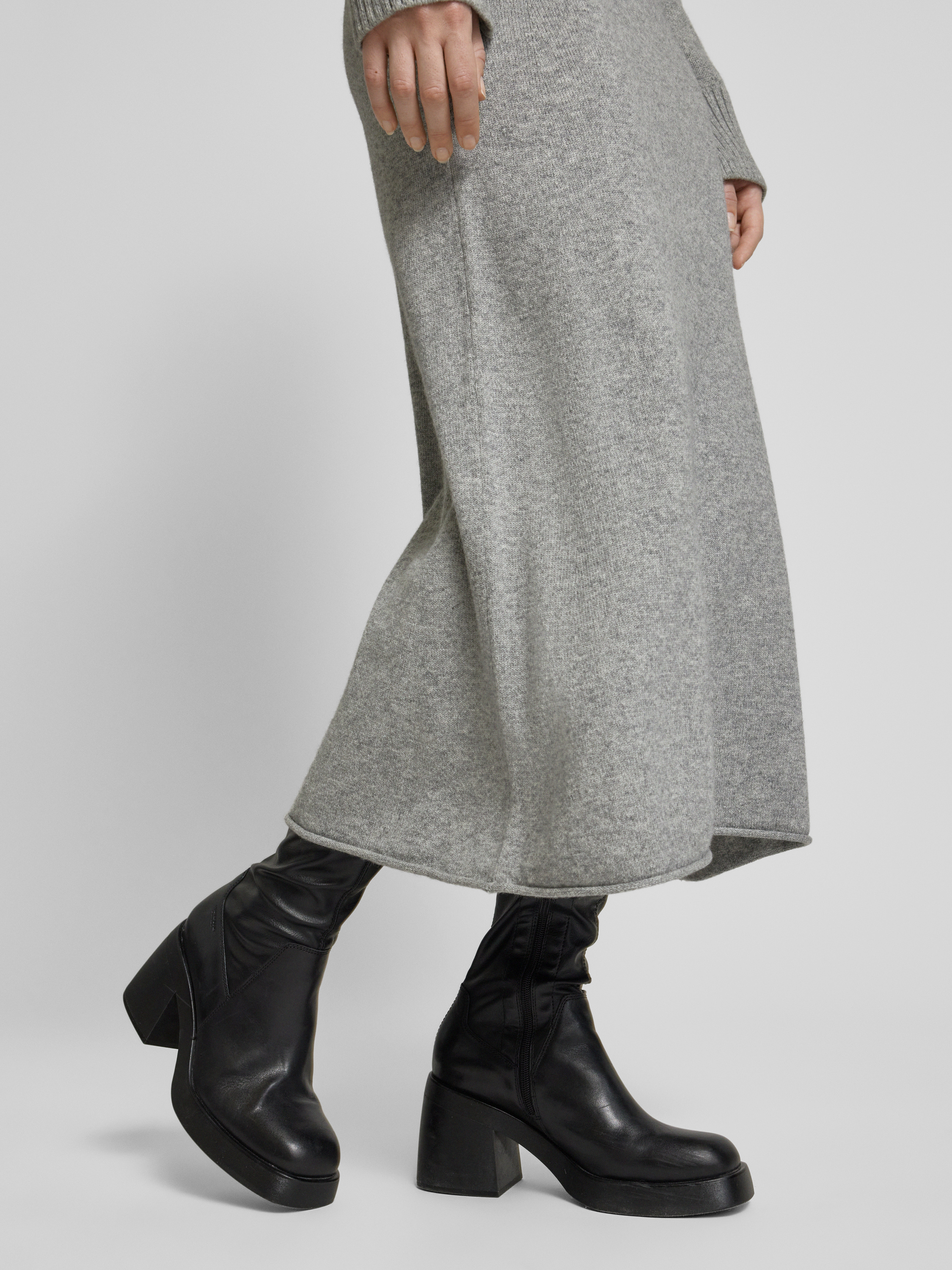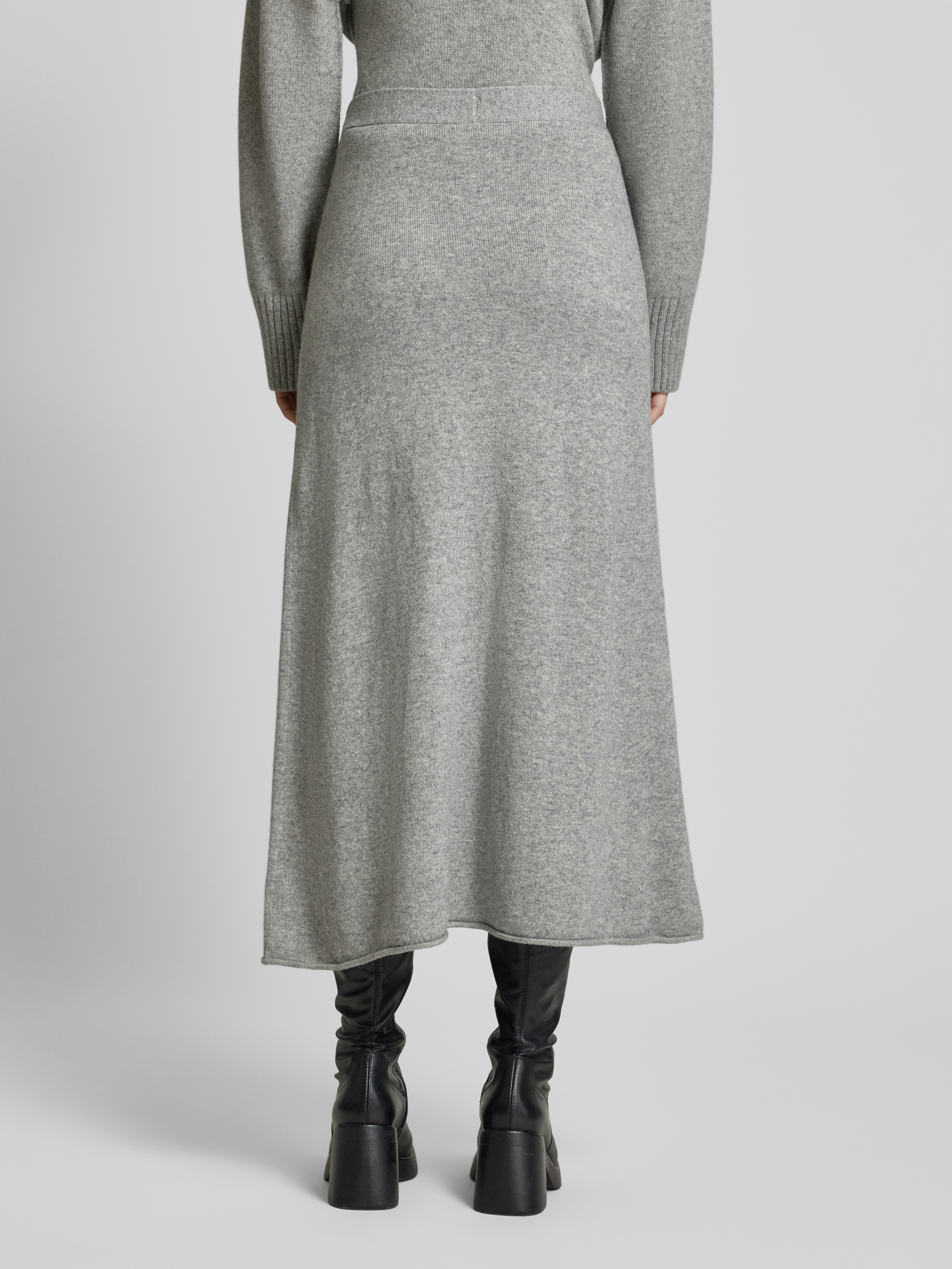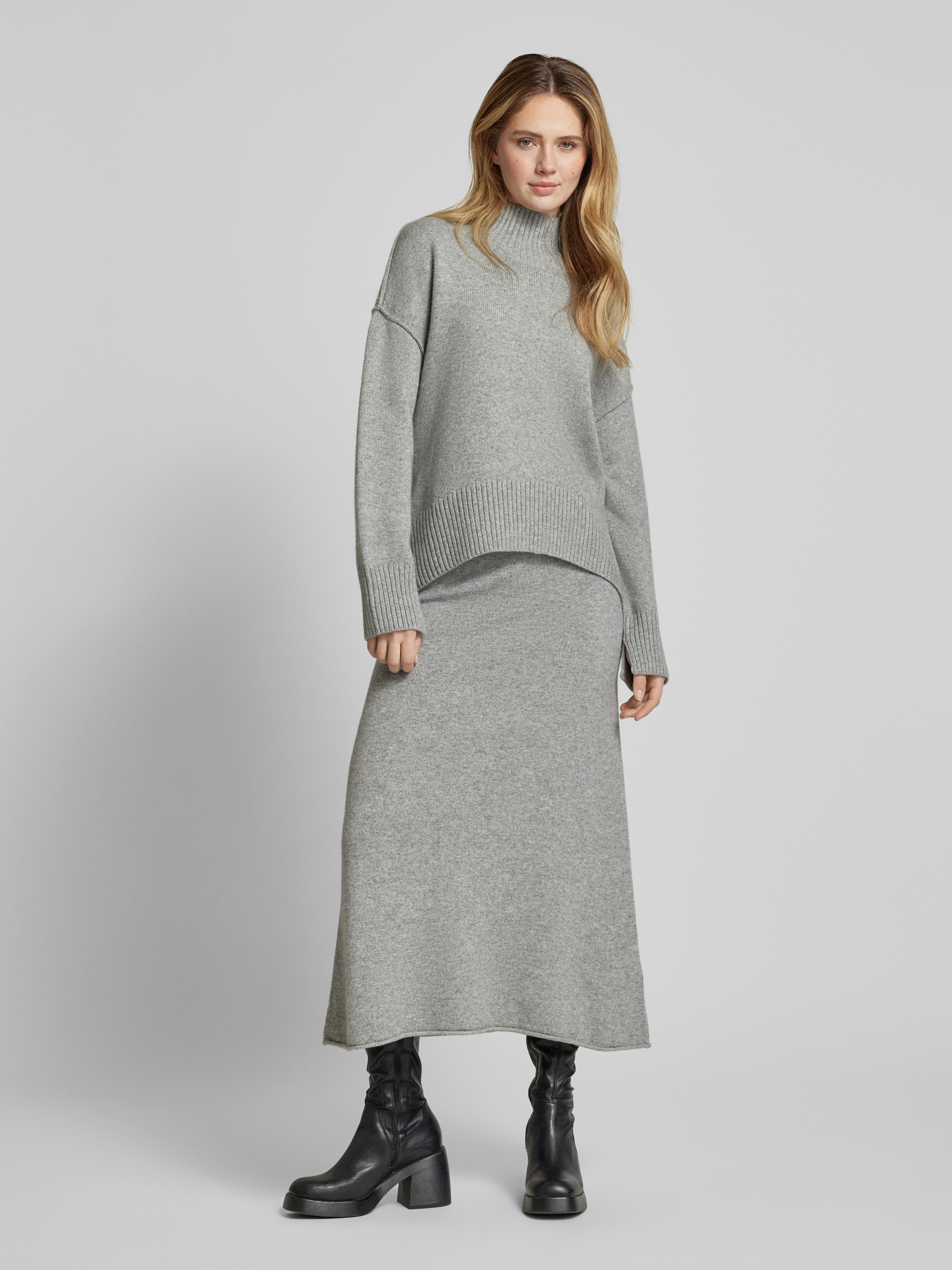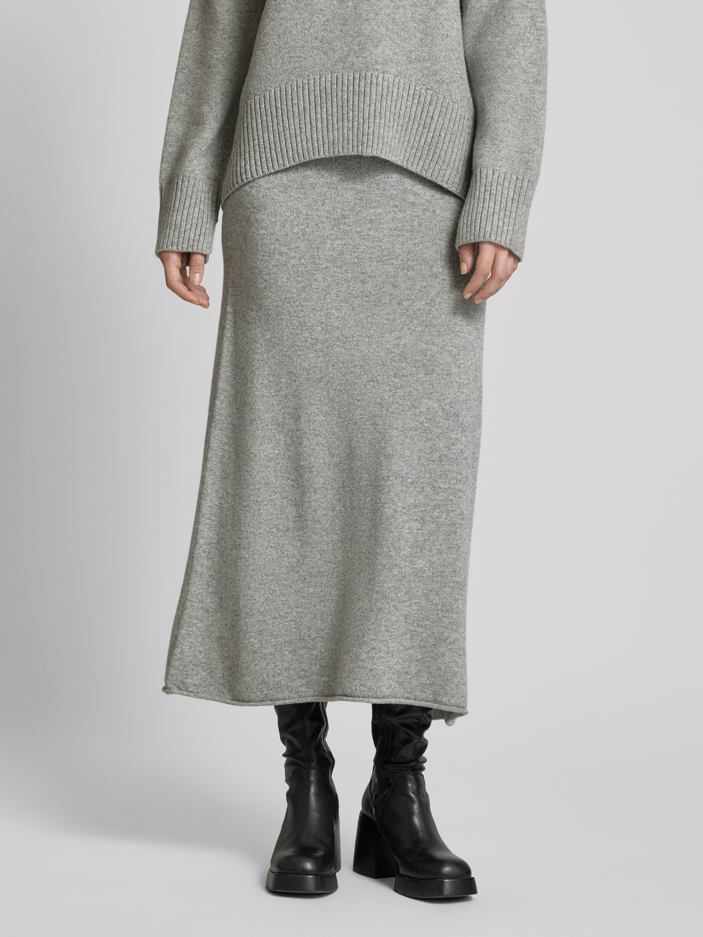 OuiKnielanger Strickrock mit elastischem Bund in hellgrau melange