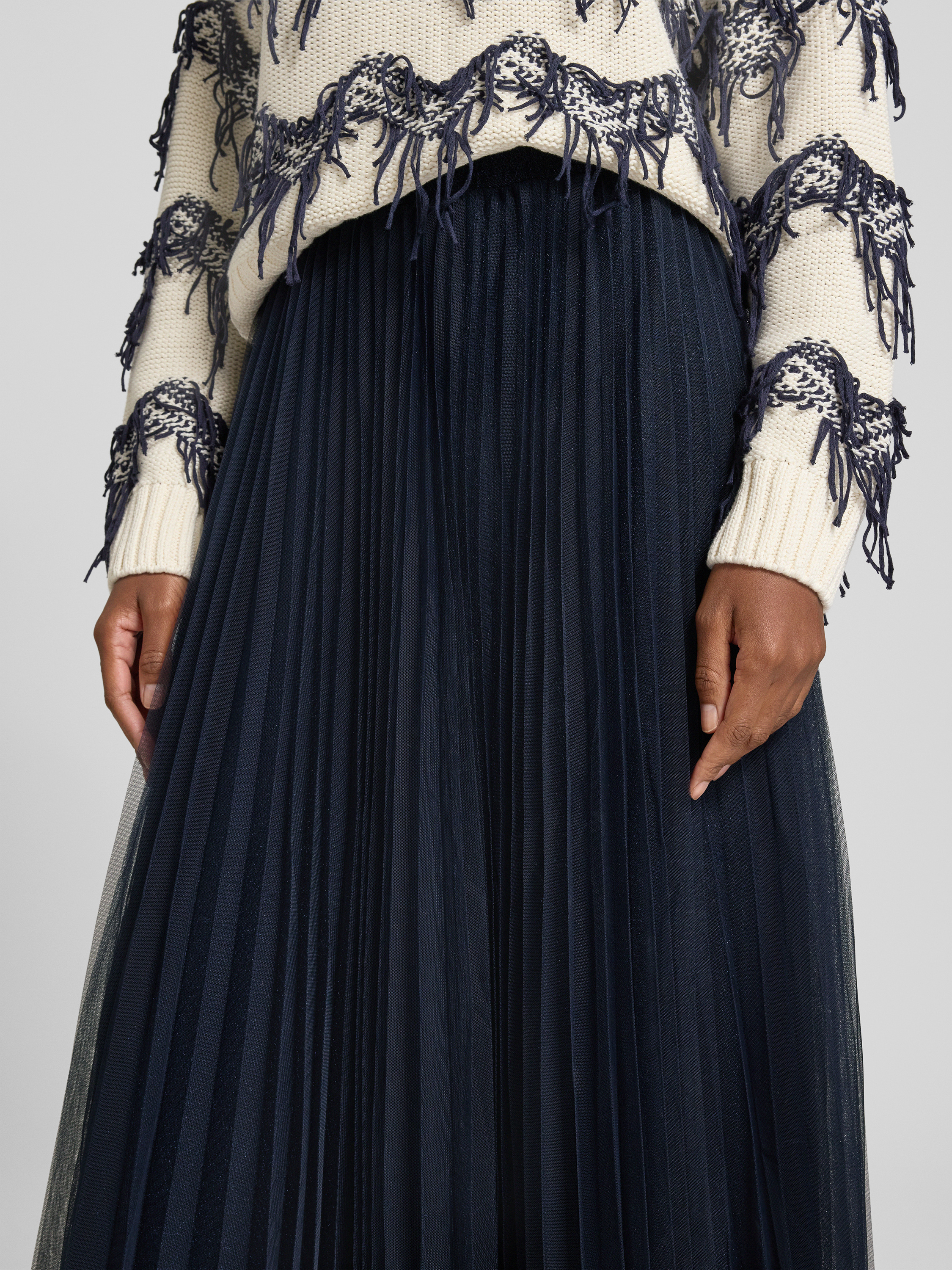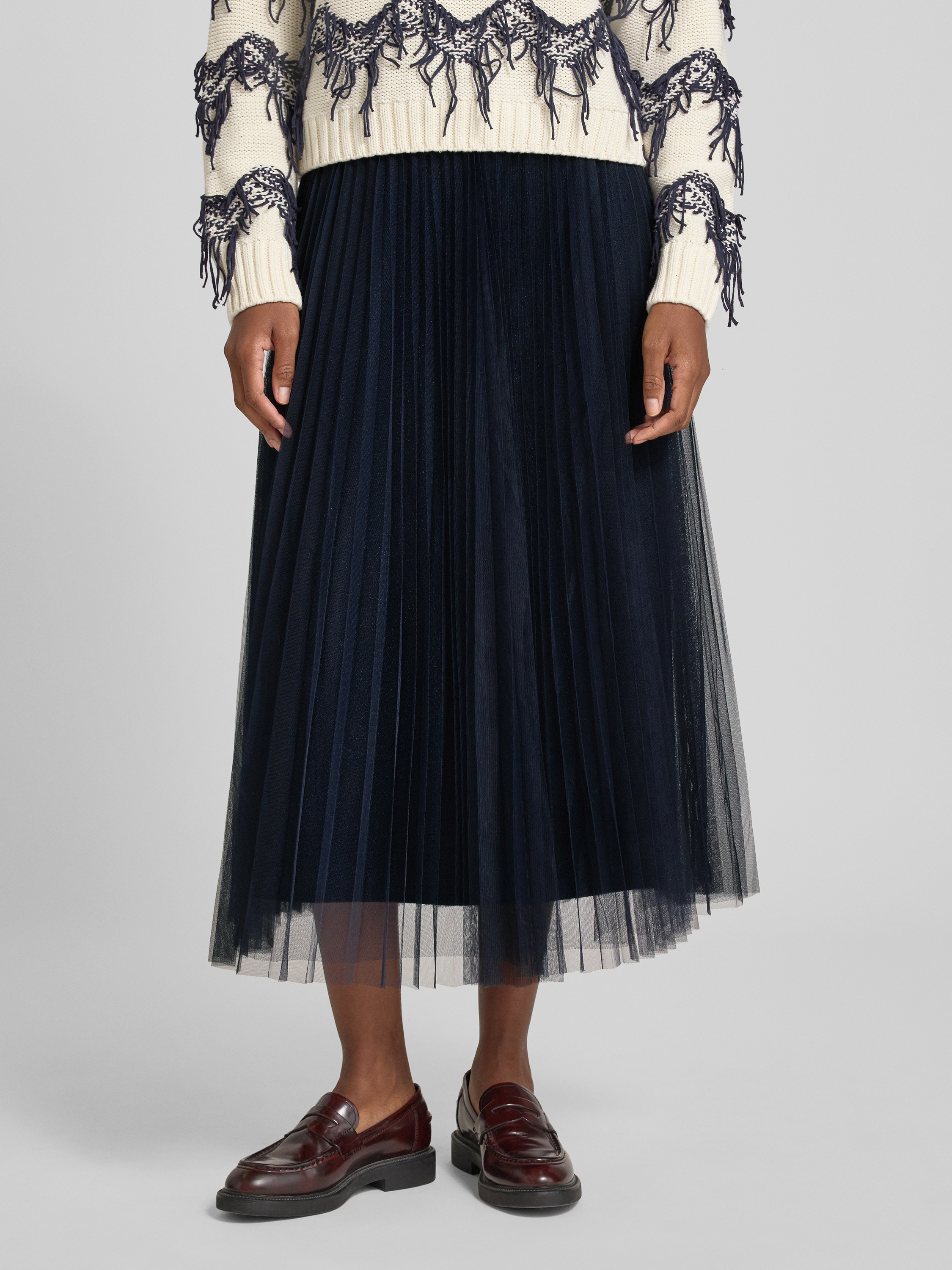 Der Damen Midirock von Oui präsentiert sich mit feinen Plisseefalten, die für eine elegante Linienführung sorgen und Bewegungsfreiheit ermöglichen. Dank des blickdichten Unterrocks bleibt die Silhouette stets dezent. Durch den angenehm sitzenden Bund trägt sich der Rock unkompliziert im Alltag.