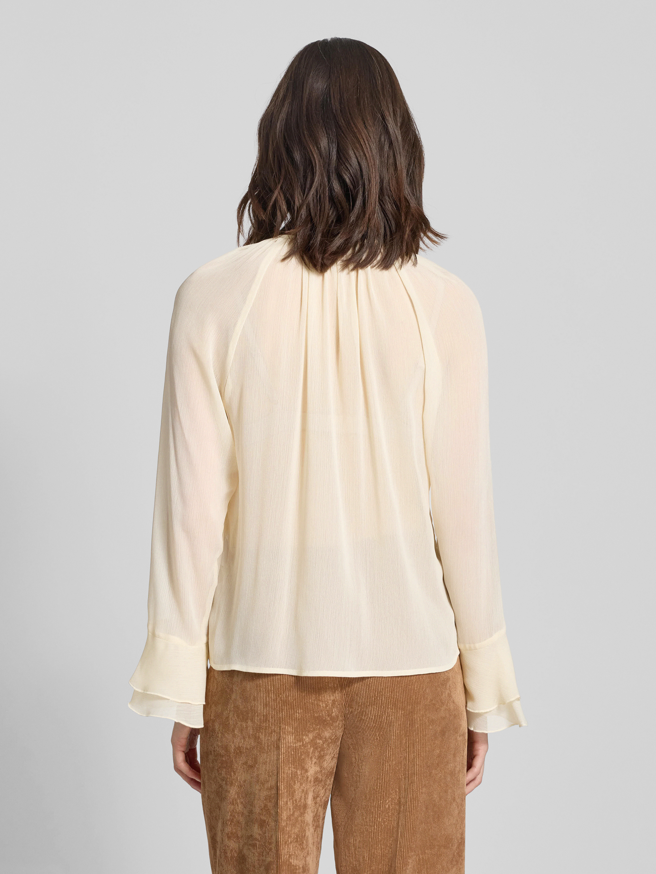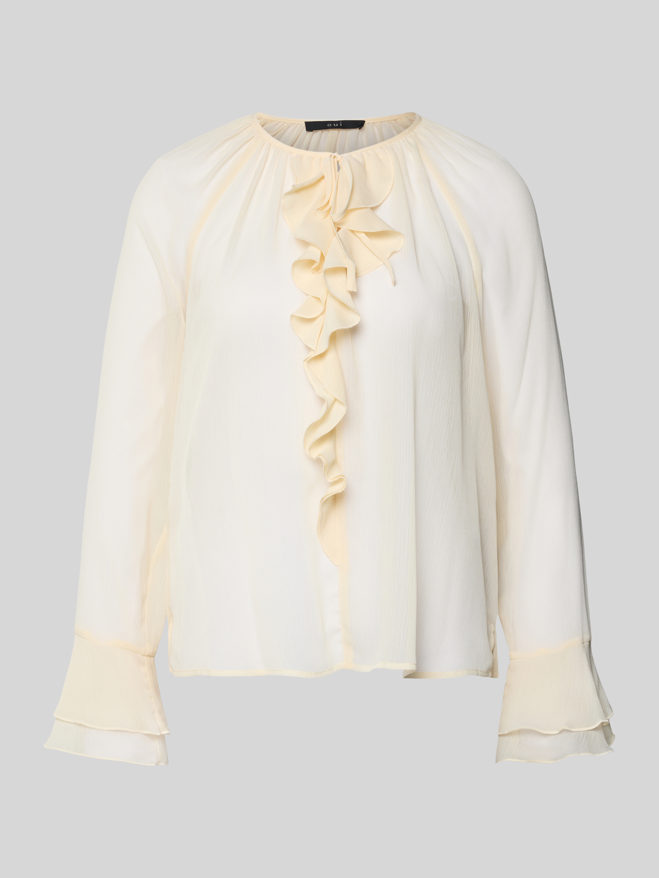 Die Regular Fit Bluse mit Volants von Oui fällt locker und schmeichelt durch ihren geraden Schnitt der Figur, während der Rundhalsausschnitt einen klassischen Akzent setzt. Verspielte Volants und eine dezente Schnürung bringen Bewegung ins Design, ohne aufdringlich zu wirken. So eignet sich das Modell für entspannte Alltagskombinationen und lässt sich vielseitig tragen.