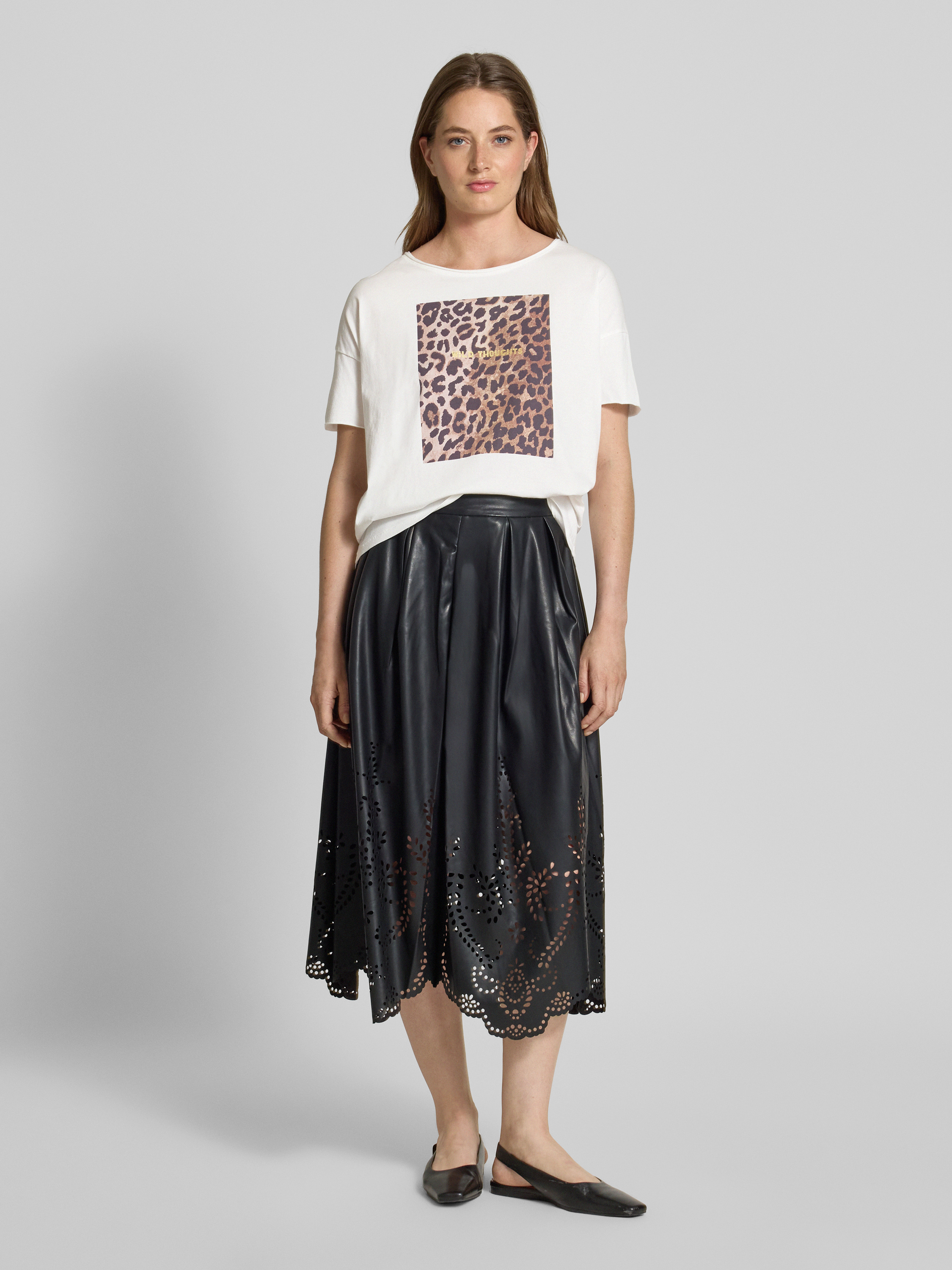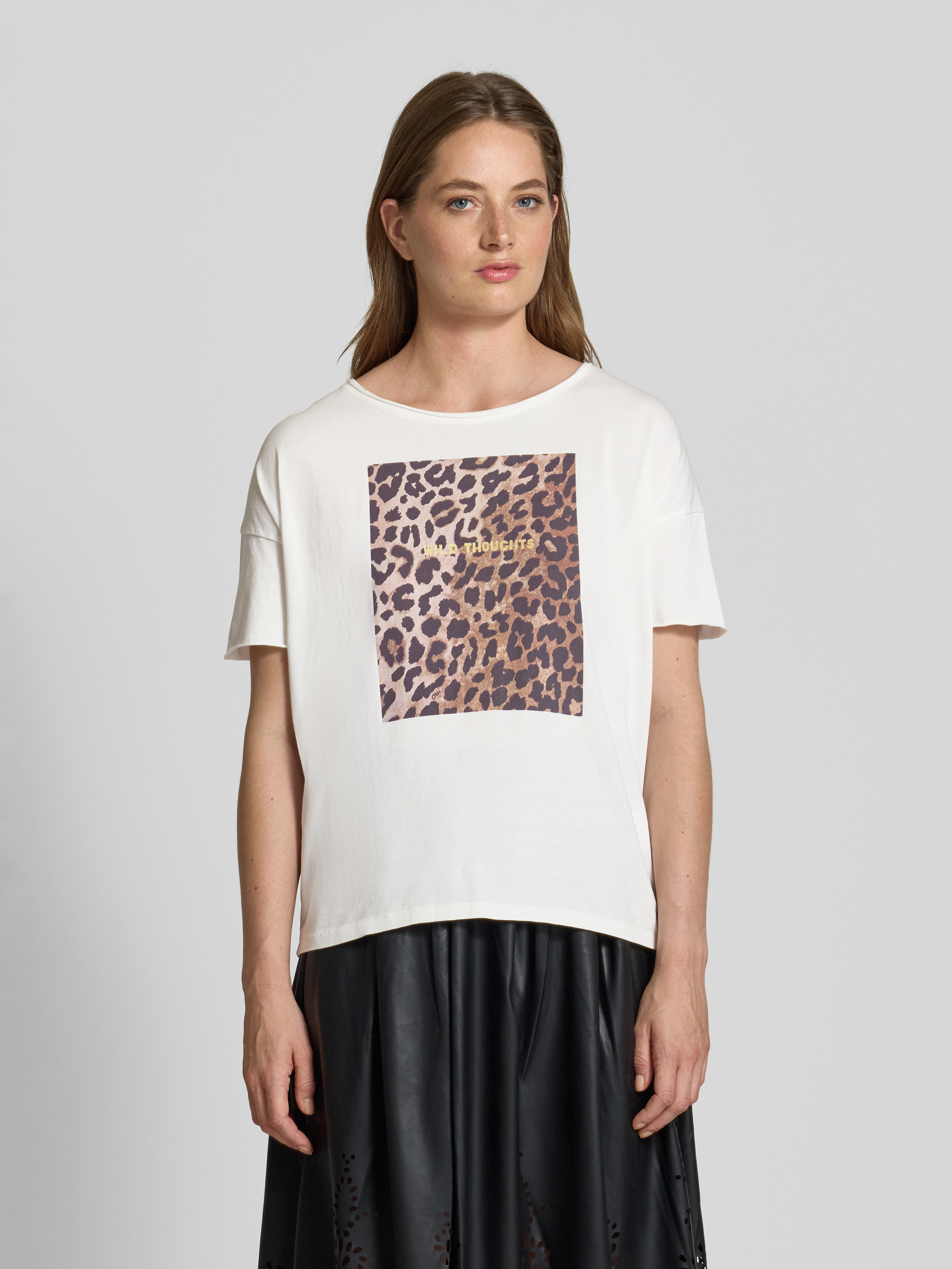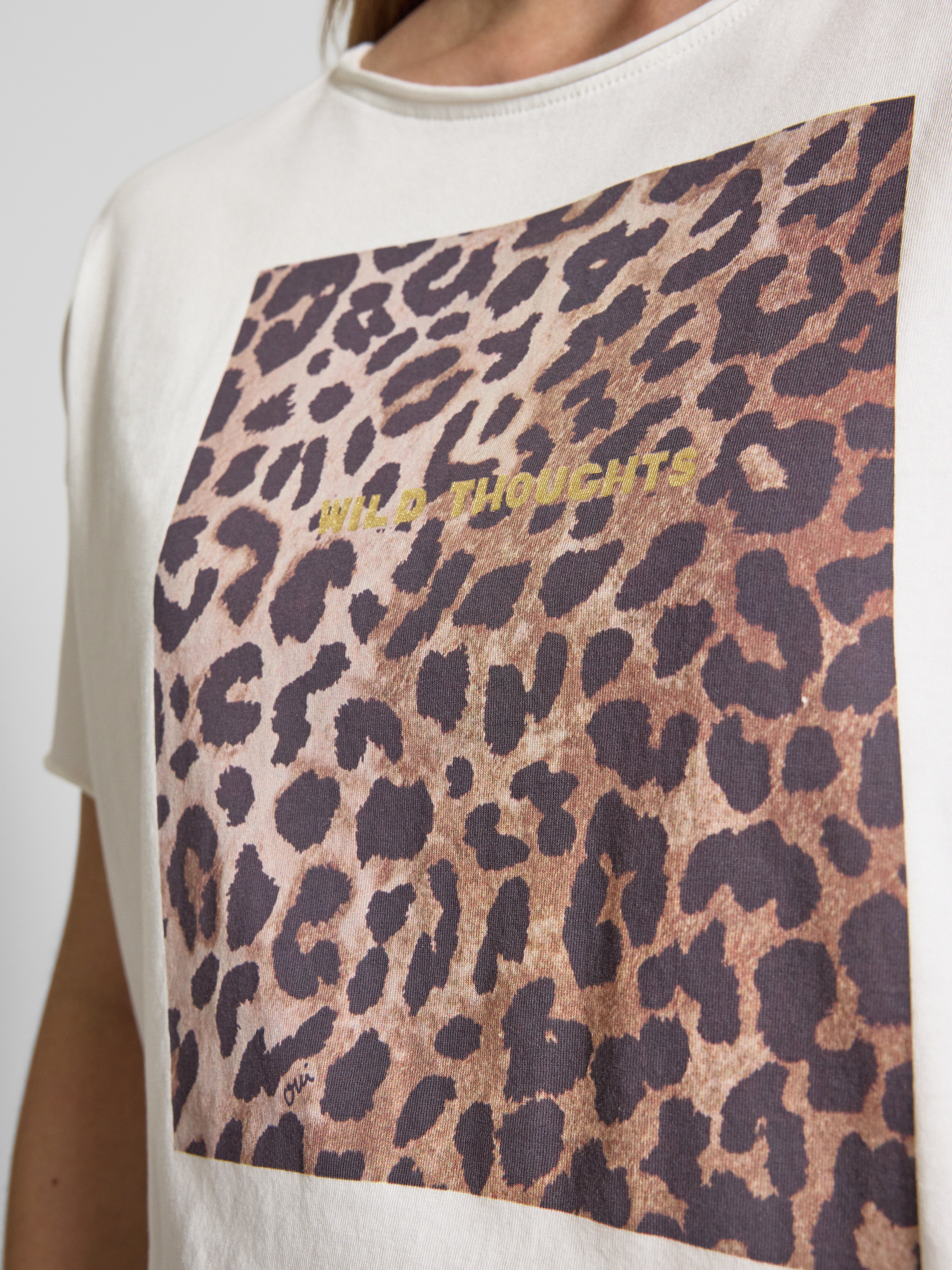 OuiRegular Fit T-Shirt aus reiner Baumwolle mit Animal-Print in weiss