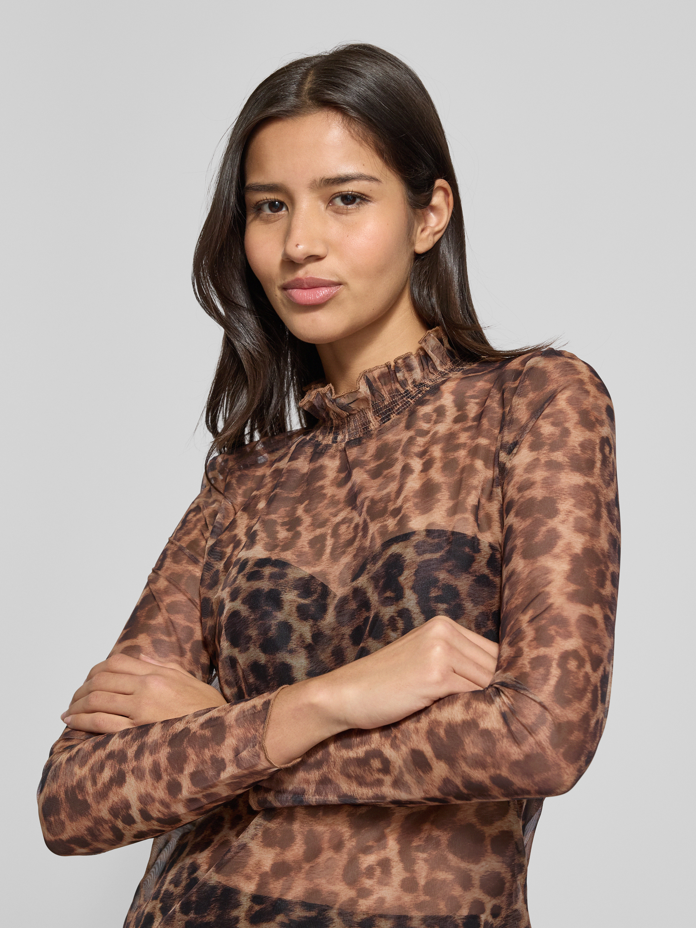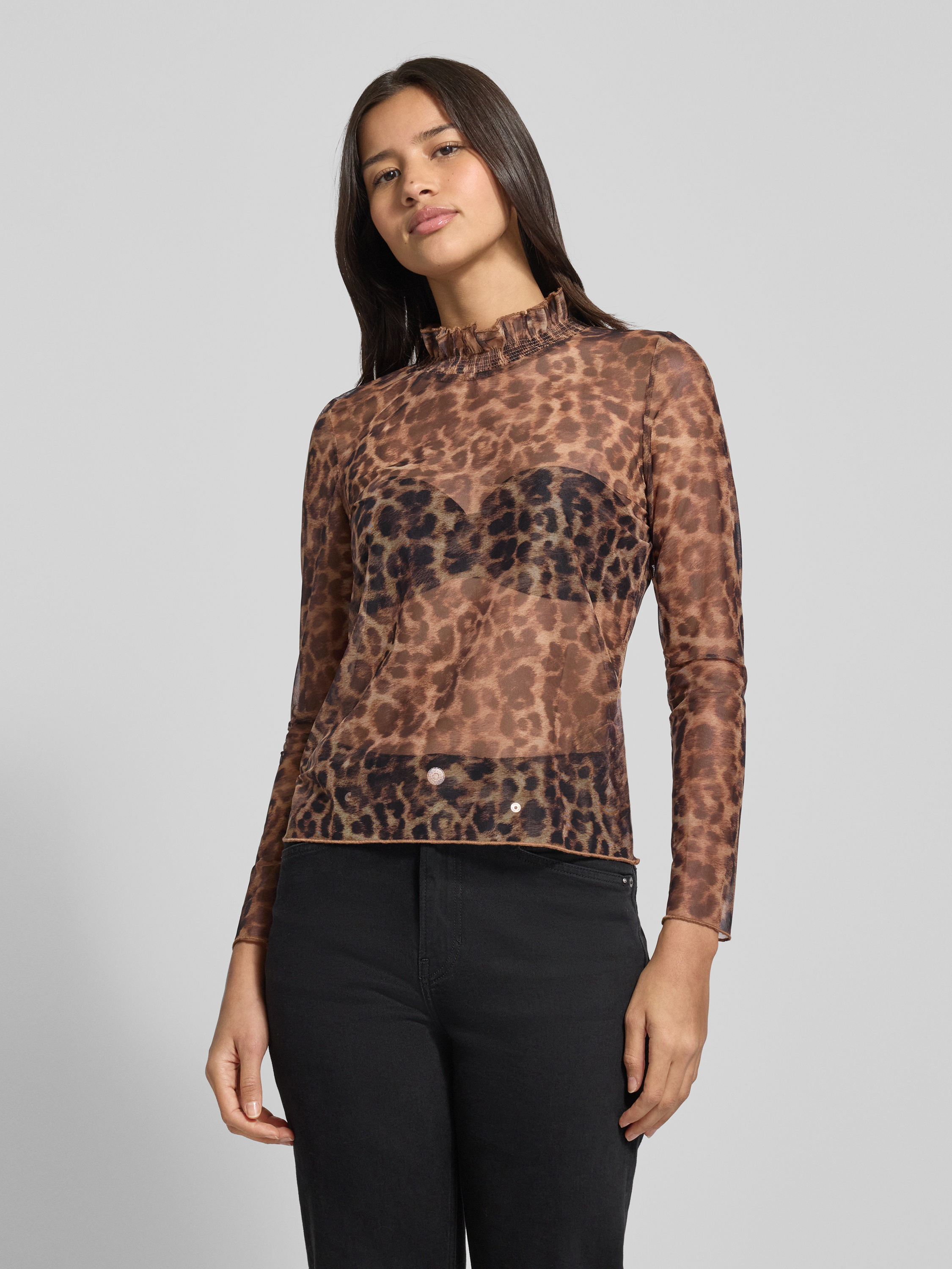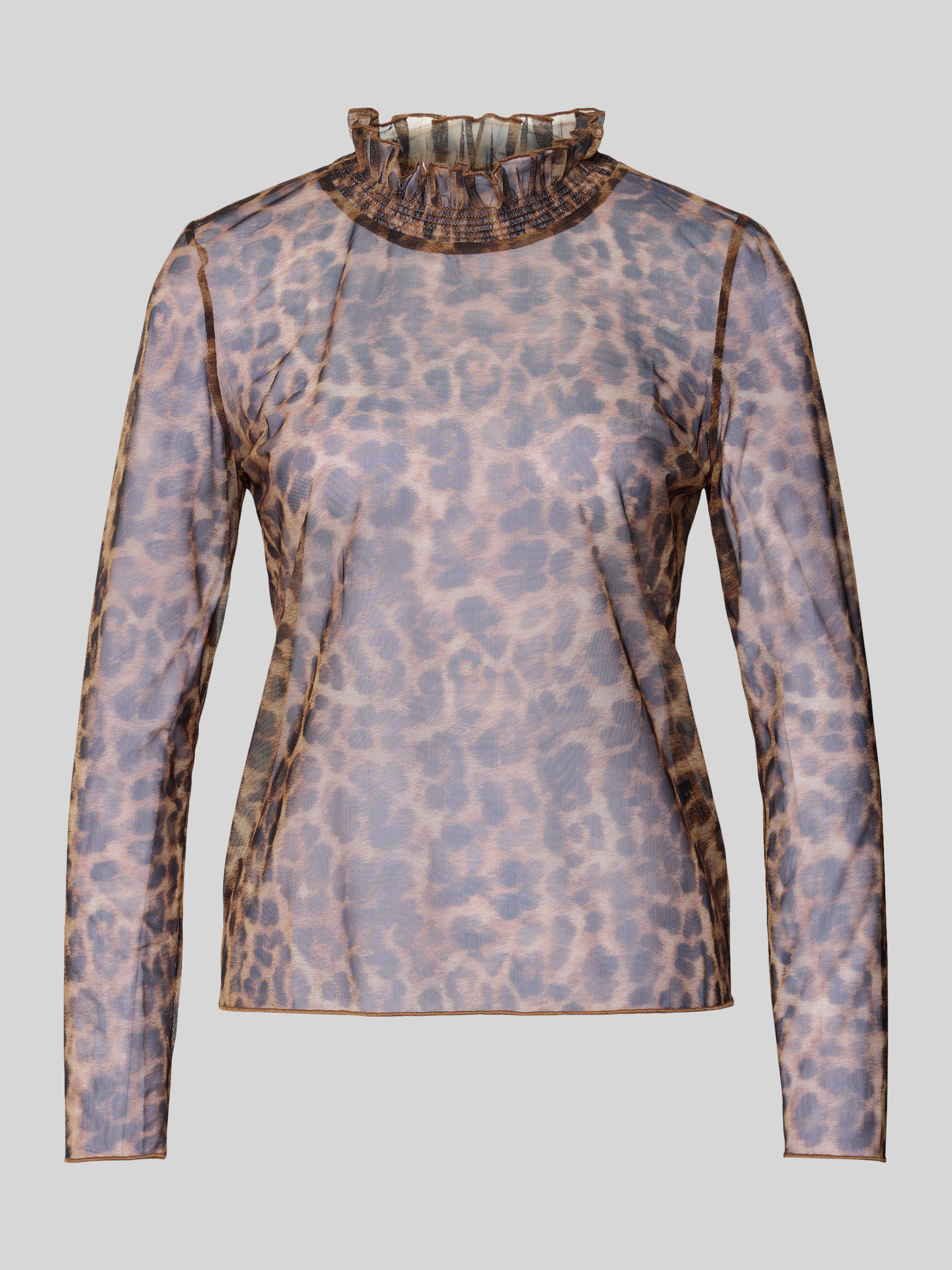 Das Damen Longsleeve von Oui zeigt sich in semitransparenter Optik und bringt durch die Rüschen am Stehkragen eine verspielte Note ins Outfit. Der Material-Mix mit Stretch-Anteil sorgt für angenehmen Tragekomfort, während der Regular Fit Bewegungsfreiheit lässt. So eignet sich dieses Longsleeve als vielseitige Ergänzung im Alltag.