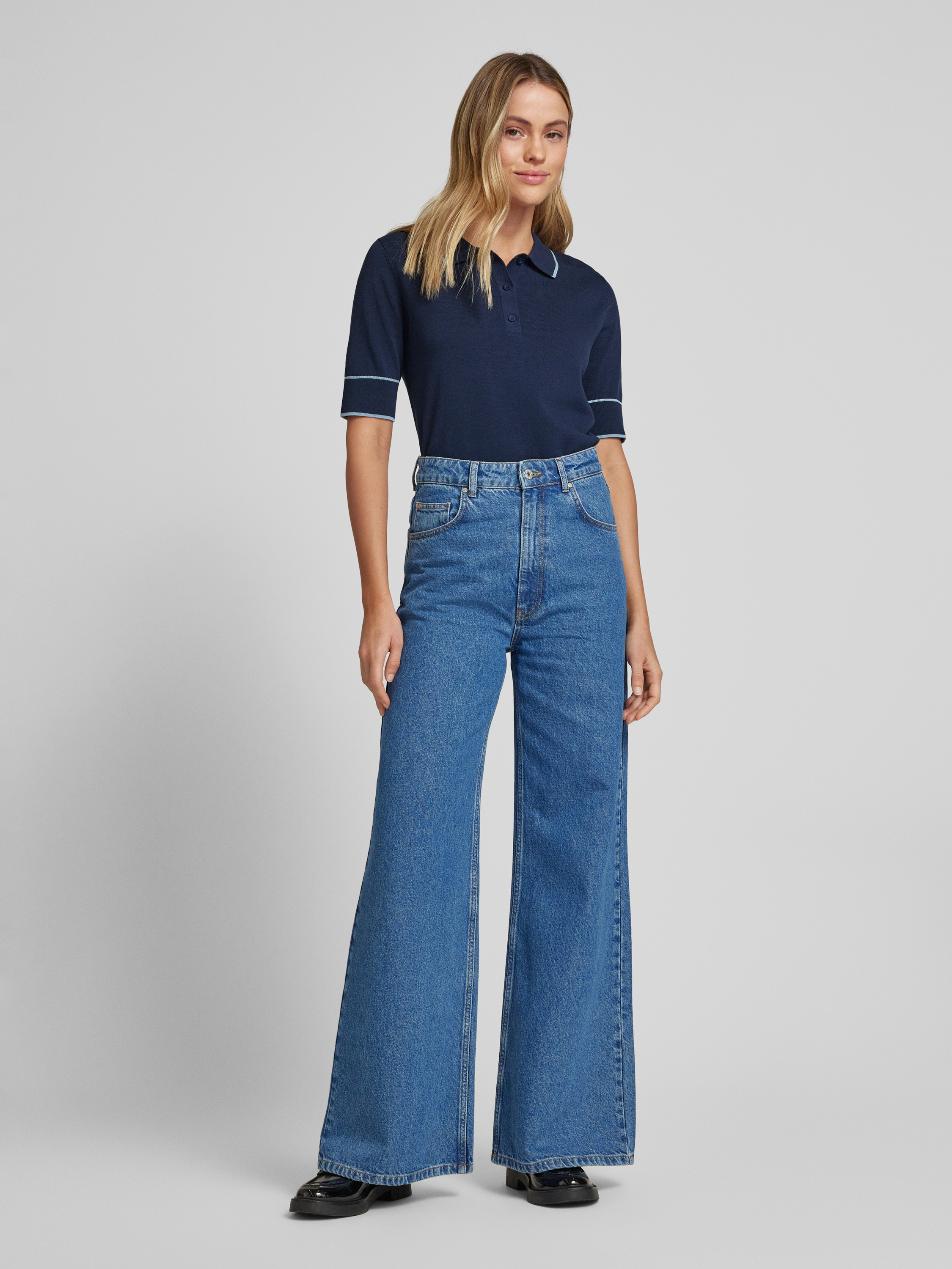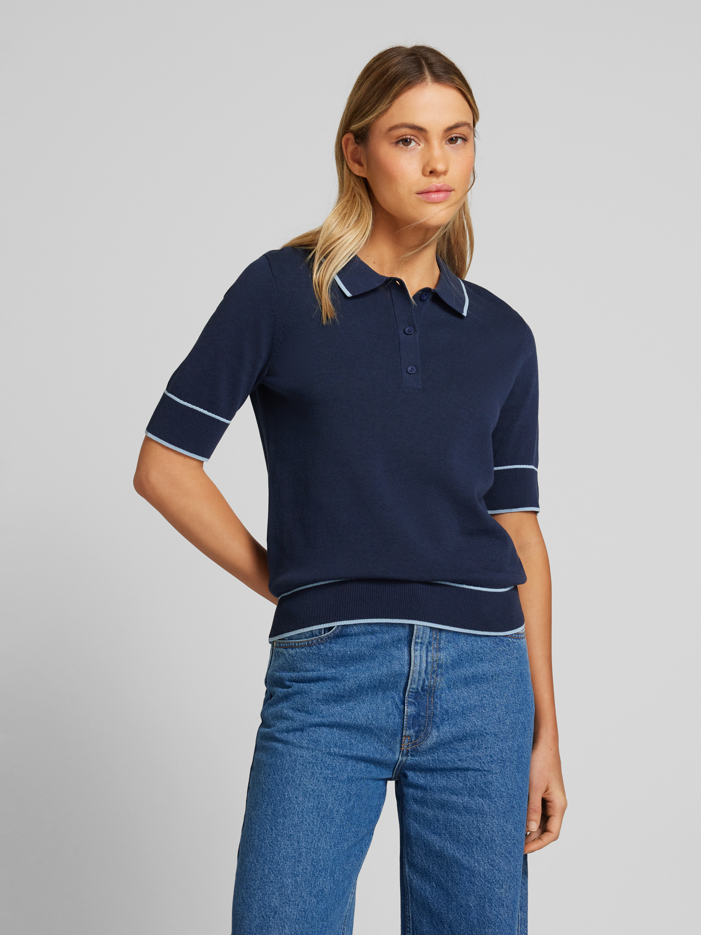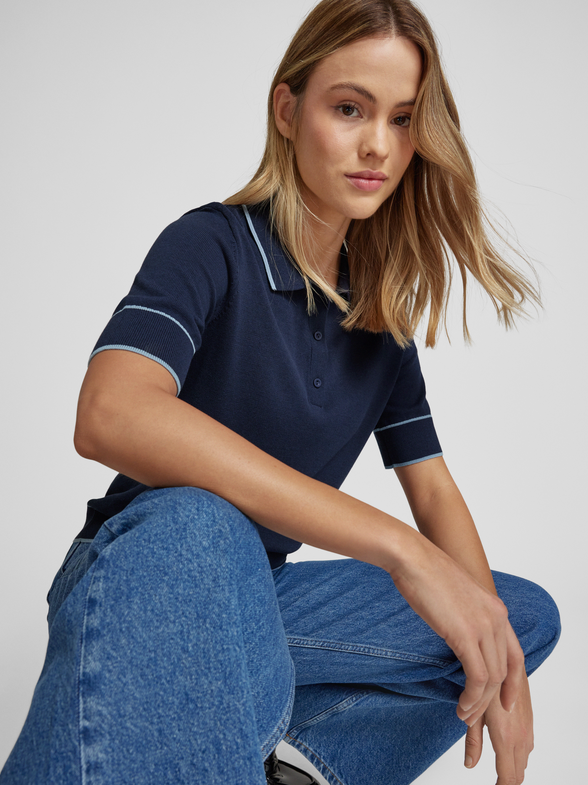 P&C* curated by Veronika HeilbrunnerStrick-Polo mit Kontrastdetail in dunkelblau