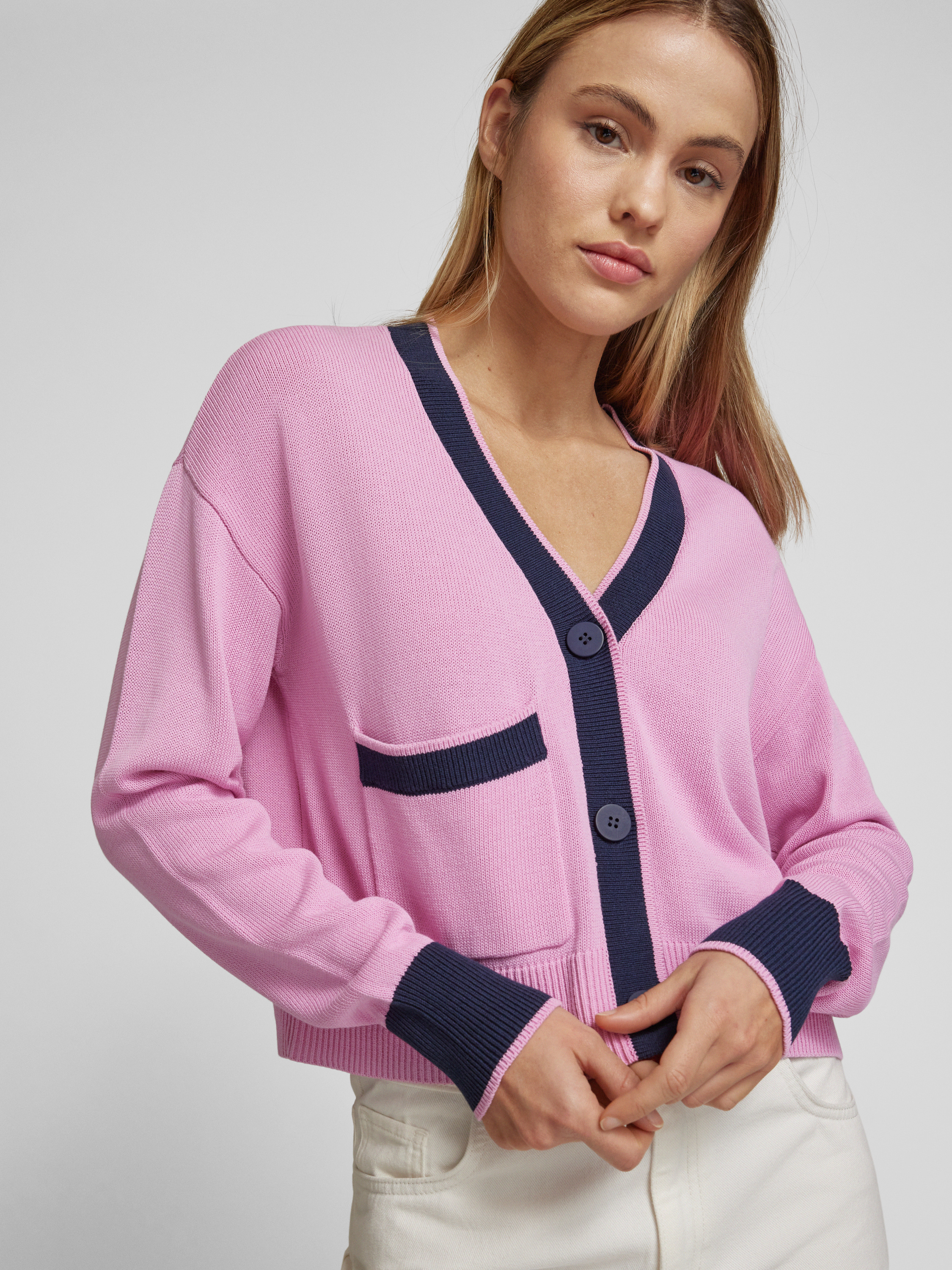 P&C* curated by Veronika HeilbrunnerVerkürzter Cardigan mit Kontrastdetail in rosa