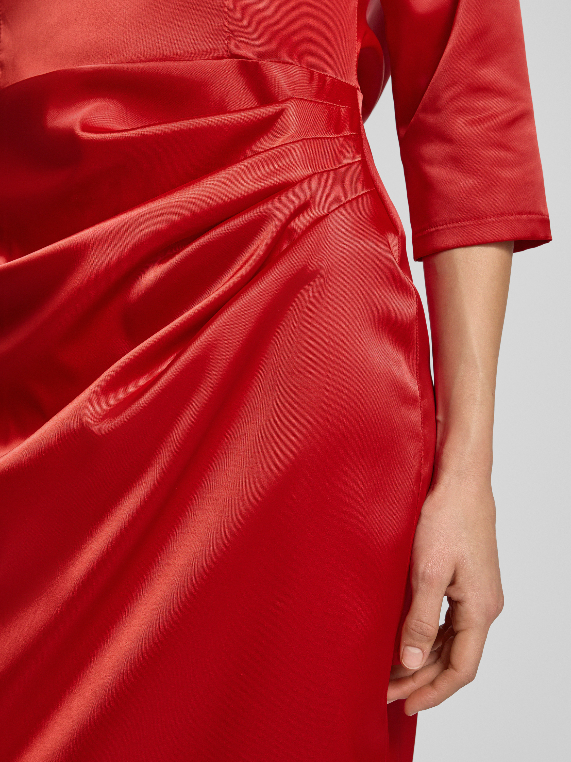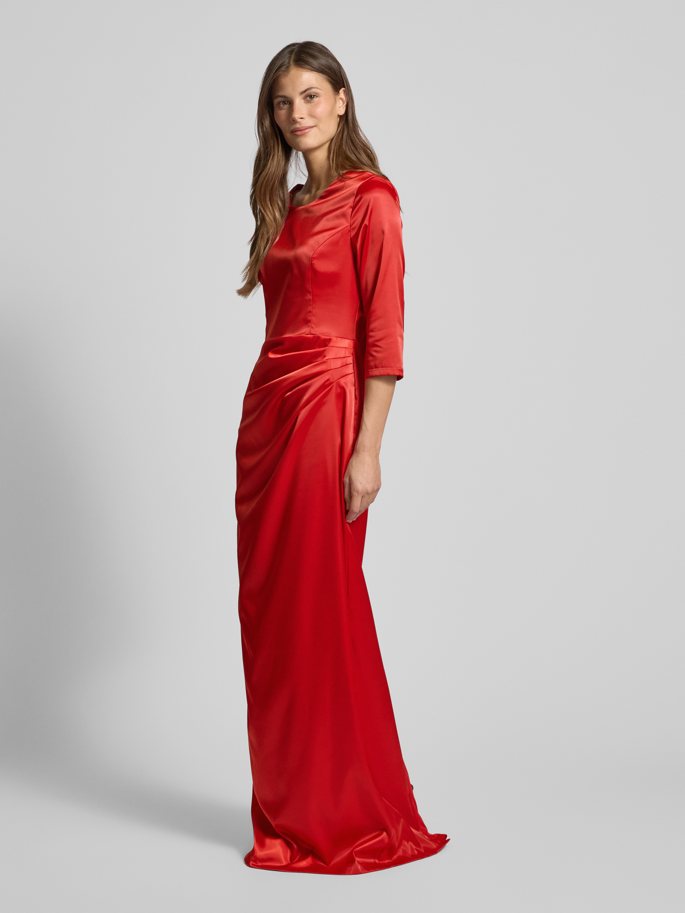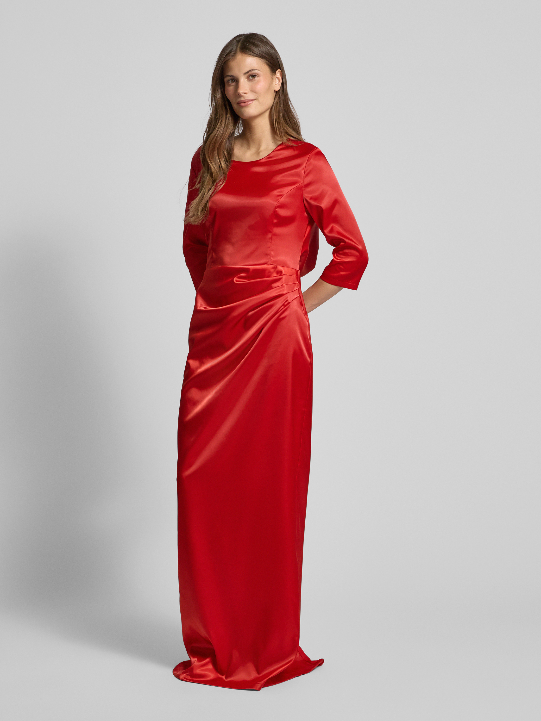 Das elegante Abendkleid von Paradi kombiniert geschickt einen körpernahen Schnitt mit einem fließenden Maxikleid-Design. Dank des Material-Mix mit Stretch-Anteil passt es sich angenehm an und bietet Bewegungsfreiheit. Die seitliche Raffung und die 3/4-Ärmel verleihen dem Kleid eine besondere Note.