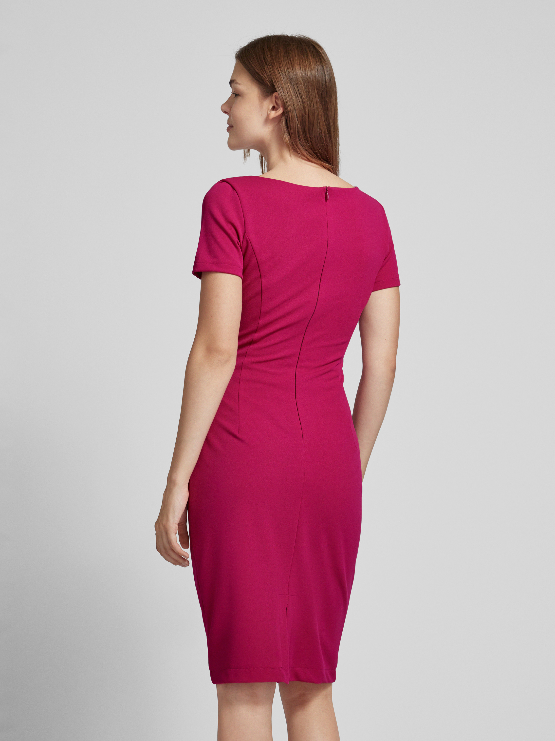 ParadiKnielanges Cocktailkleid mit seitlicher Raffung in dunkelrot