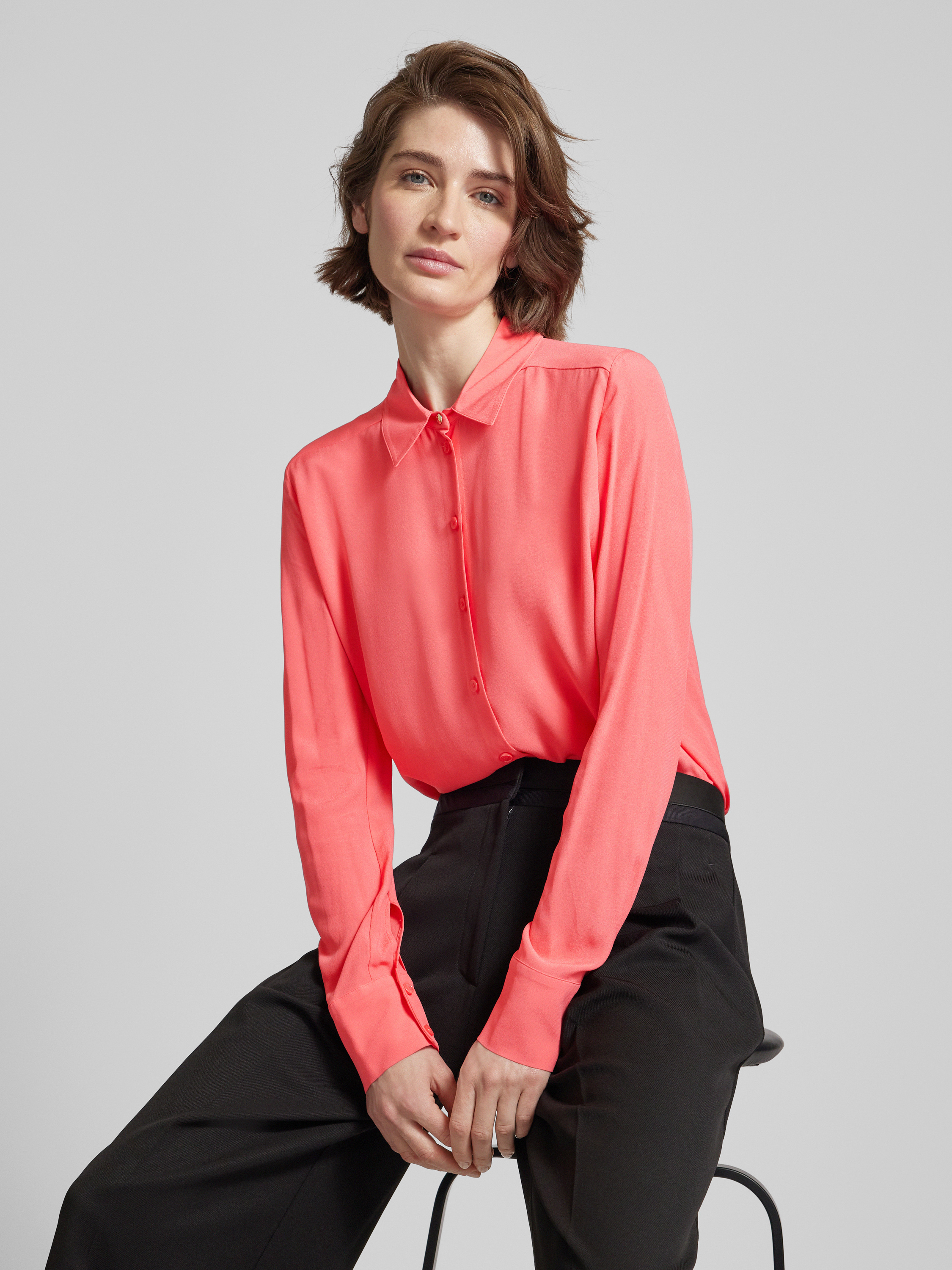Die Hemdbluse von Patrizia Pepe, Modell 'casacca', aus reiner Viskose besticht durch ihren lockeren Schnitt und das unifarbene Design. Der weiche Stoff fällt leicht und sorgt für ein angenehmes Tragegefühl. Ein klassischer Hemdblusenkragen ergänzt den zeitlosen Look harmonisch.