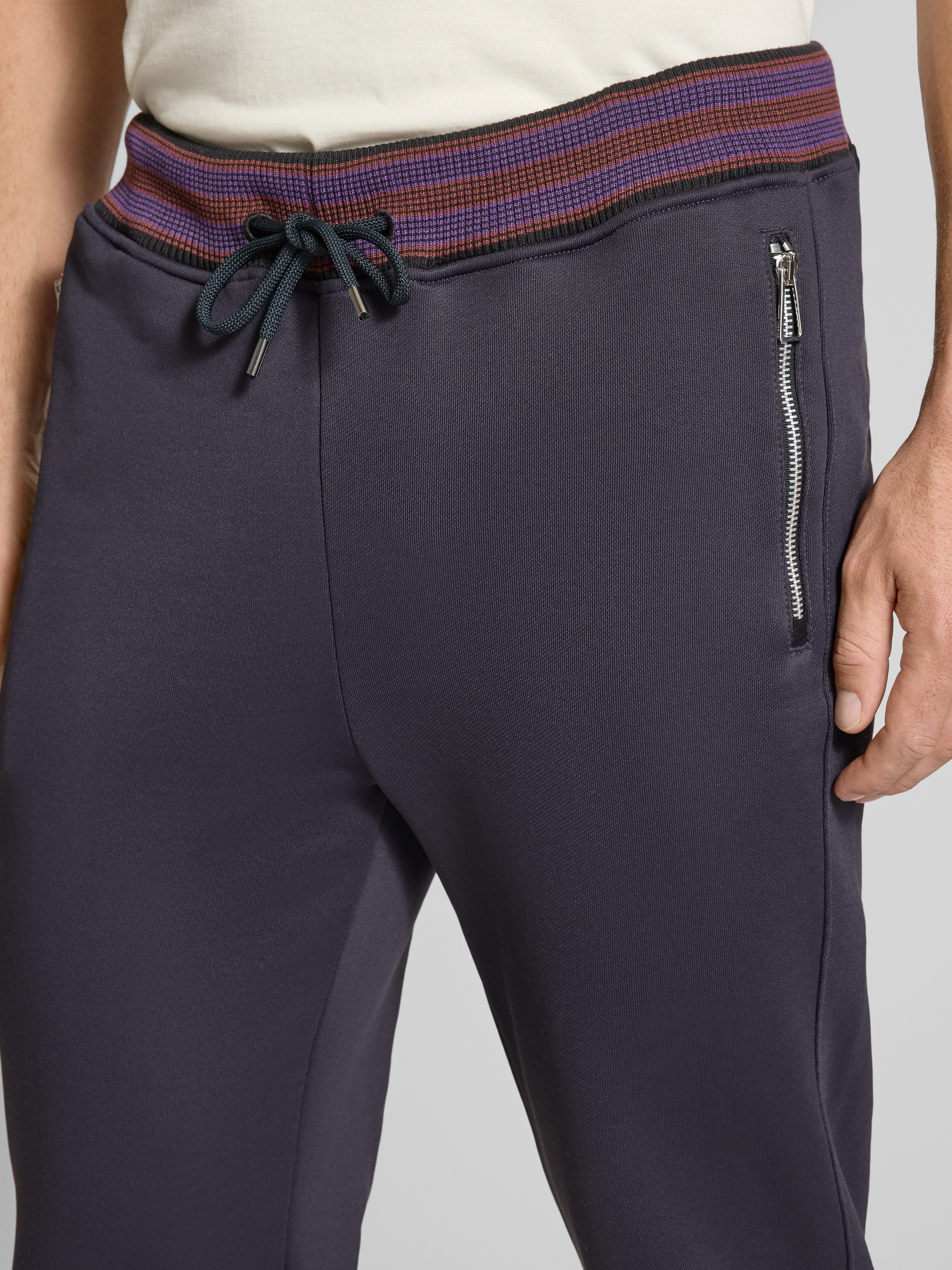Die Herren Slim Fit Jogpants von PAUL SMITH kombiniert einen modernen Schnitt mit einem angenehmen Baumwoll-Mix, wodurch sie sich vielseitig im Alltag einsetzen lässt. Durch den elastischen Bund und den Tunnelzug sitzt die Hose entspannt und passt sich flexibel an verschiedene Bewegungen an. Praktische Reißverschlusstaschen runden das Design funktional ab, sodass man persönliche Dinge griffbereit verstauen kann.