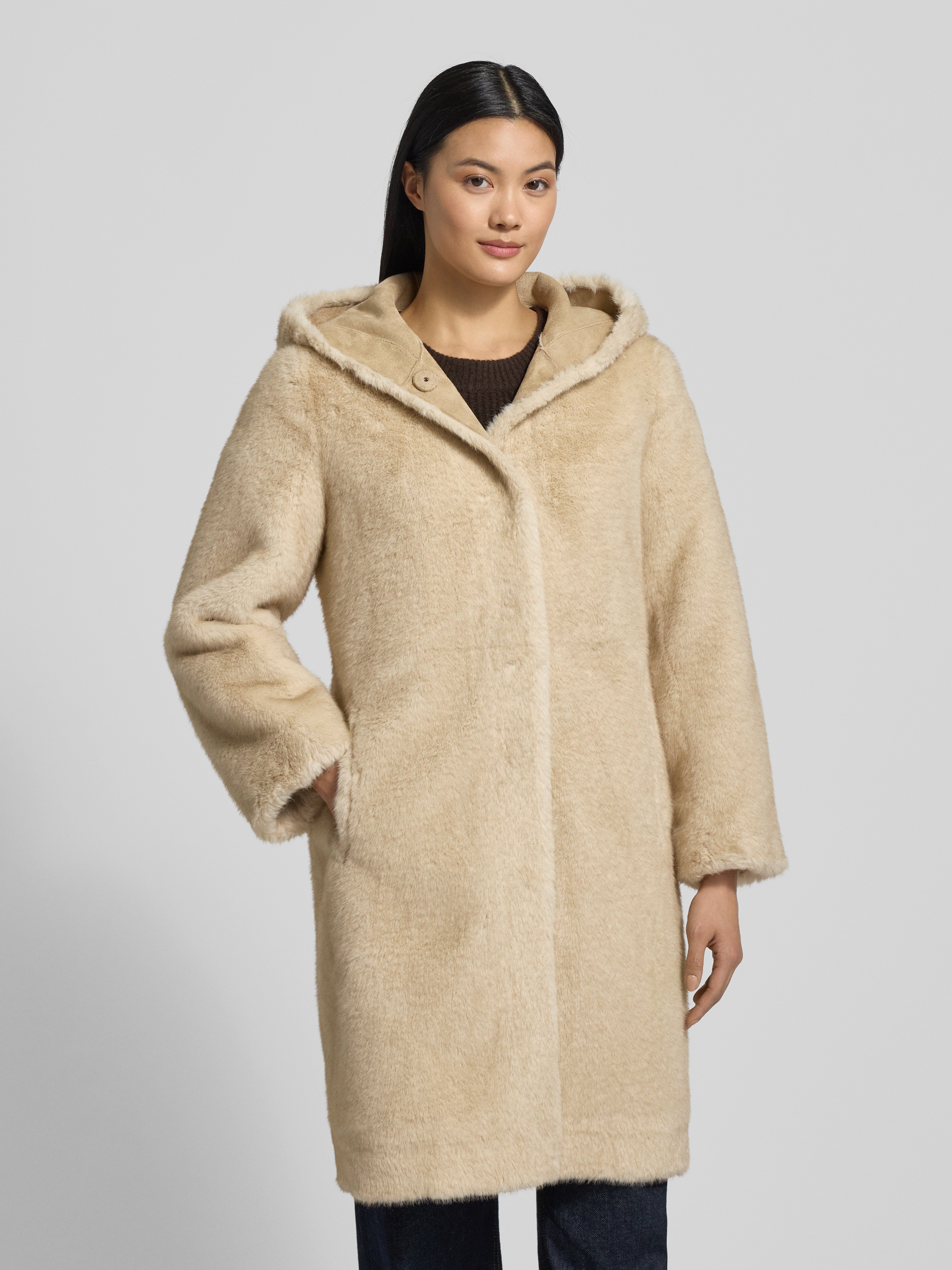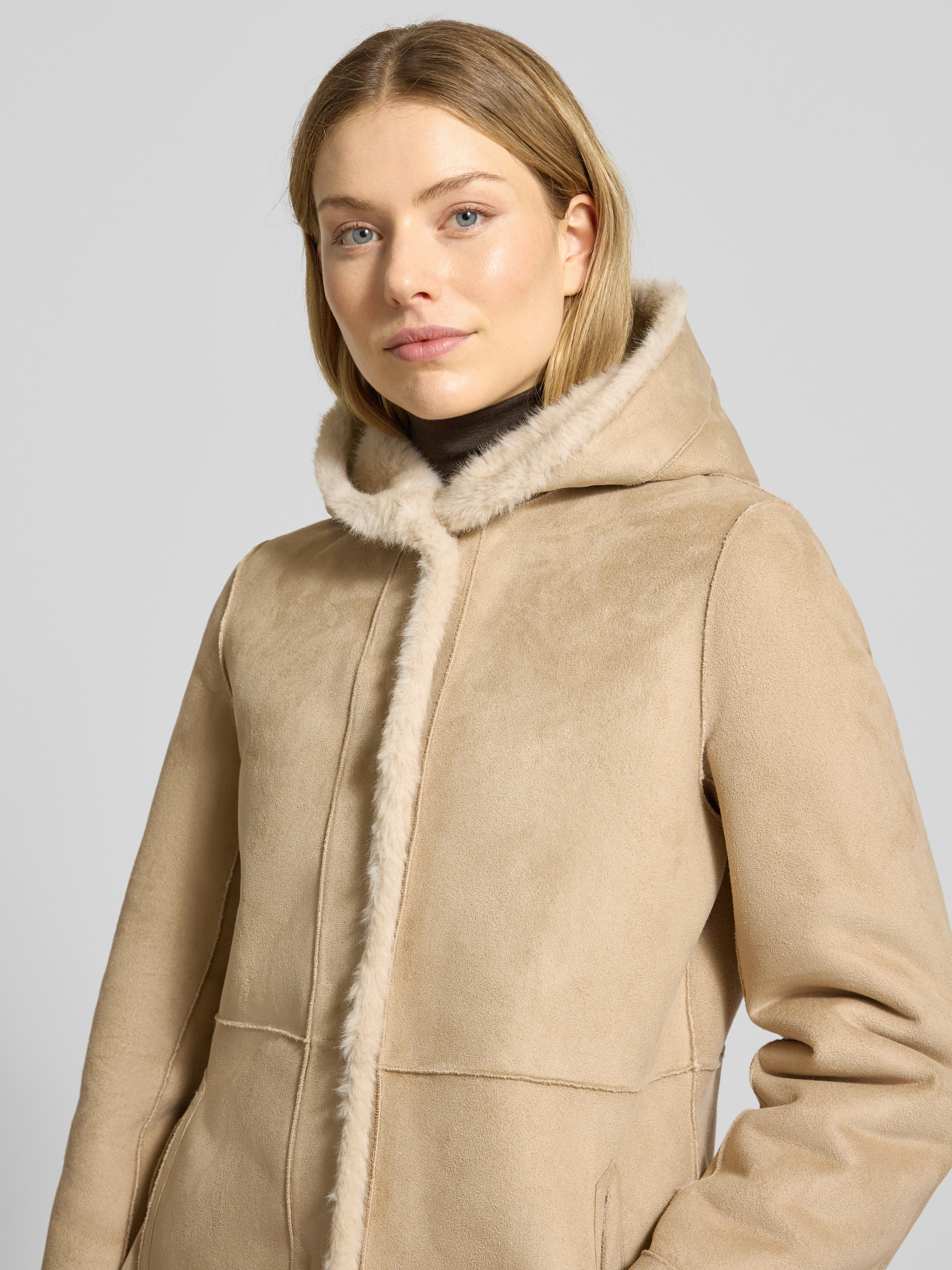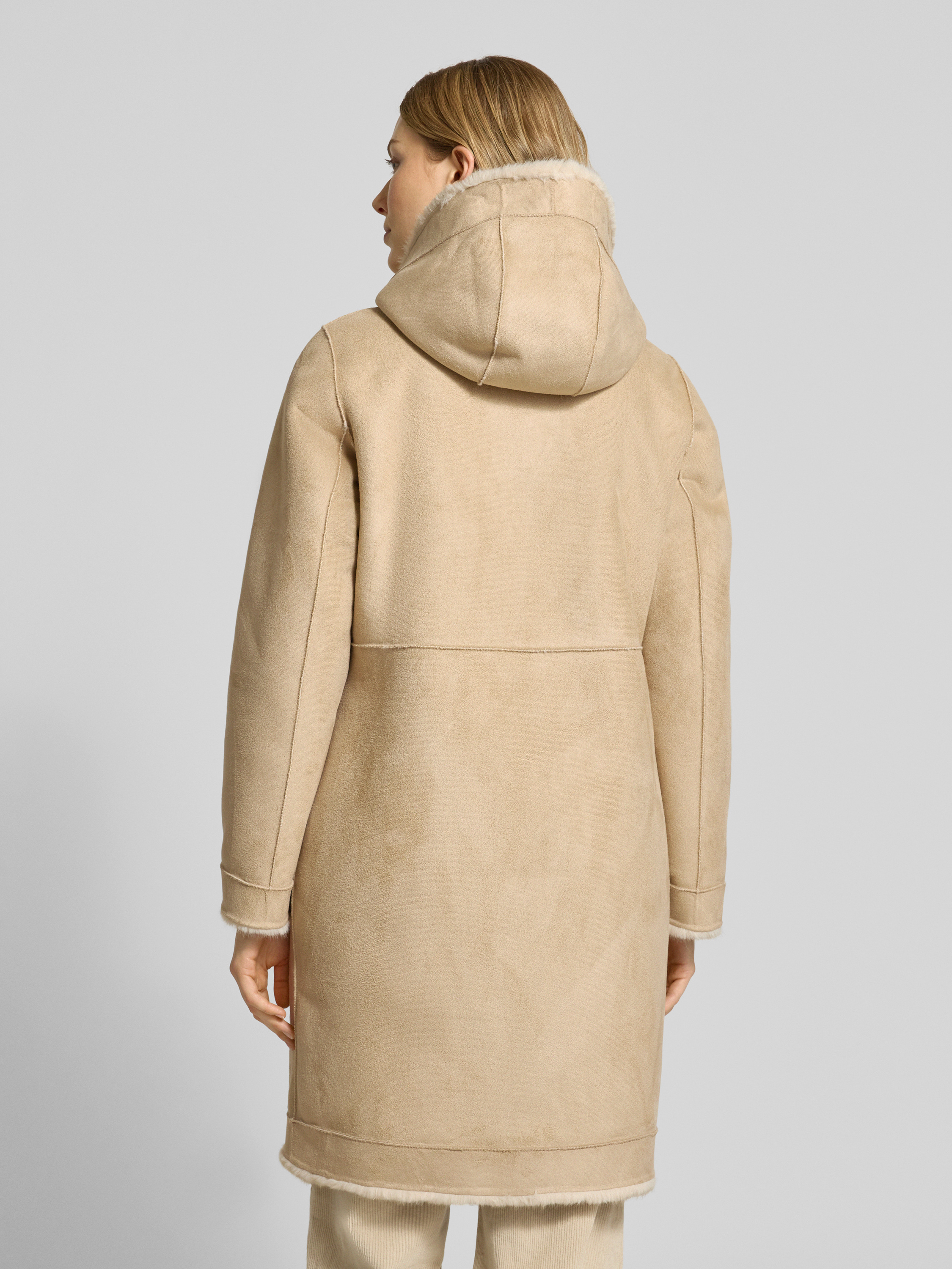 Der Damen Wendemantel von PETITE M. zeichnet sich durch einen angenehmen Regular Fit und eine Kapuze aus, die bei wechselhaftem Wetter Schutz bietet. Das weiche Kunstfell sorgt für ein behagliches Tragegefühl, während praktische Eingrifftaschen den Alltag erleichtern. Mit seinem schlichten Schnitt eignet sich das Modell für vielseitige Kombinationen.