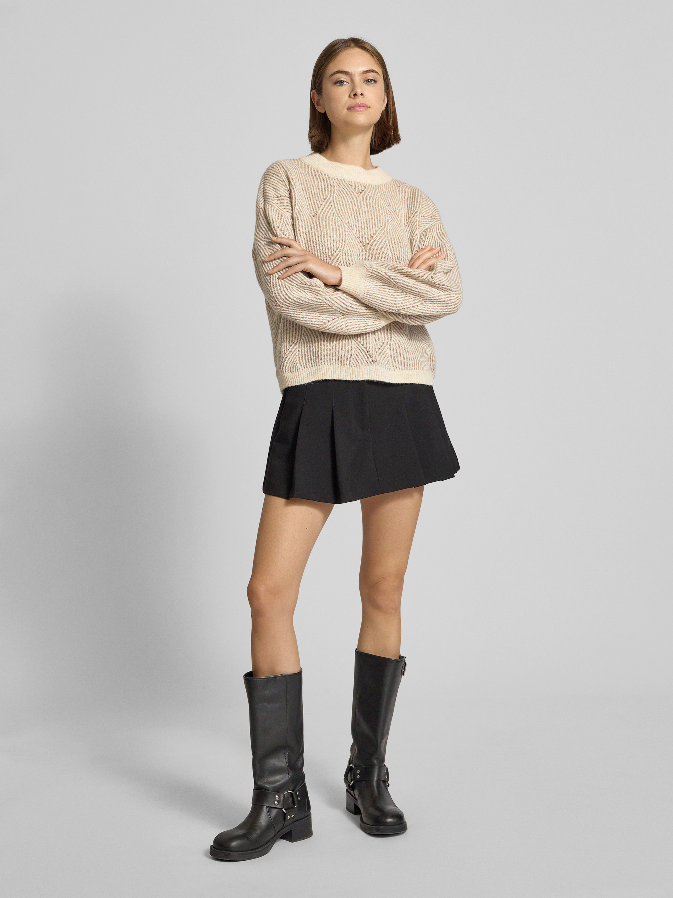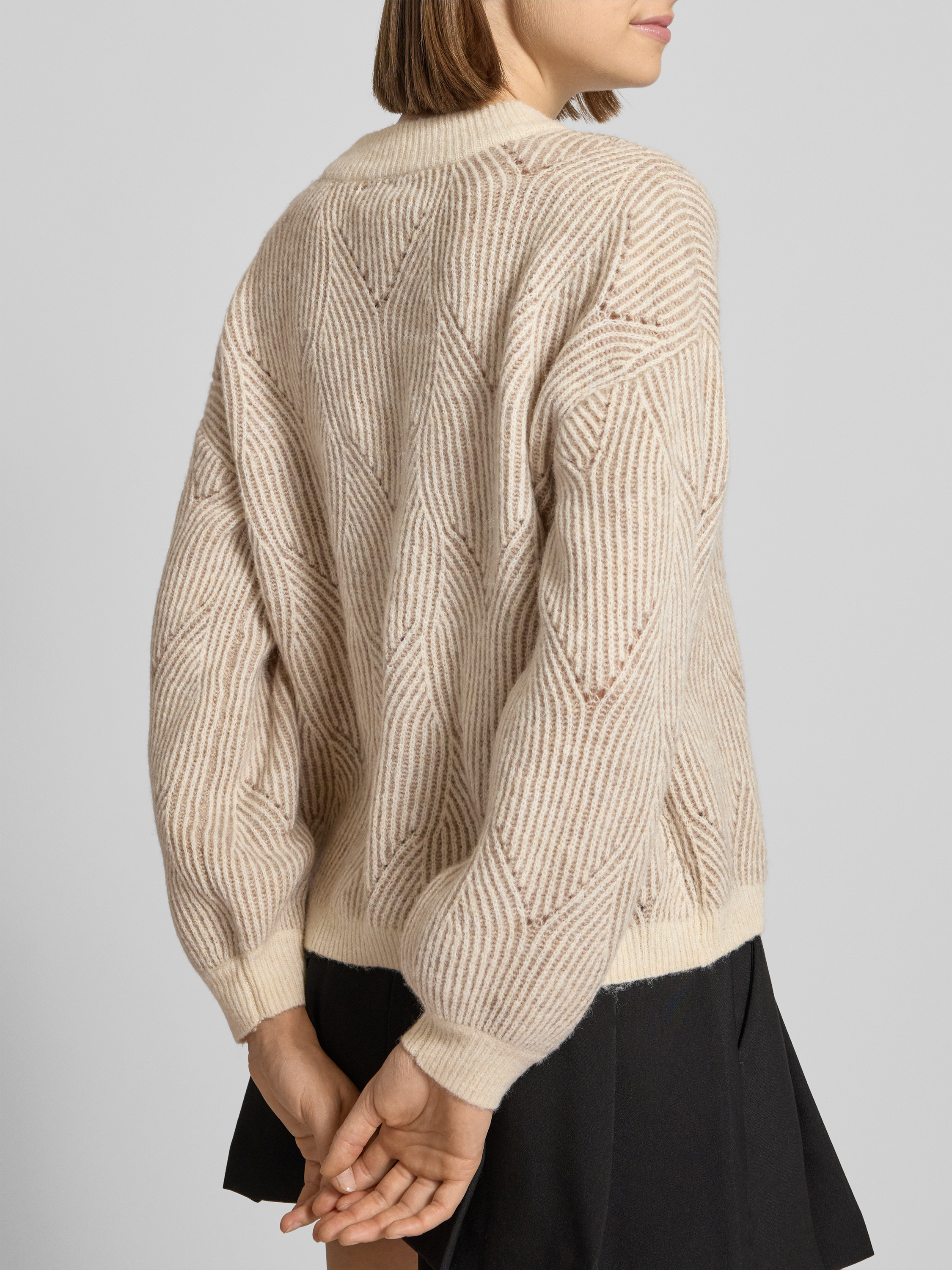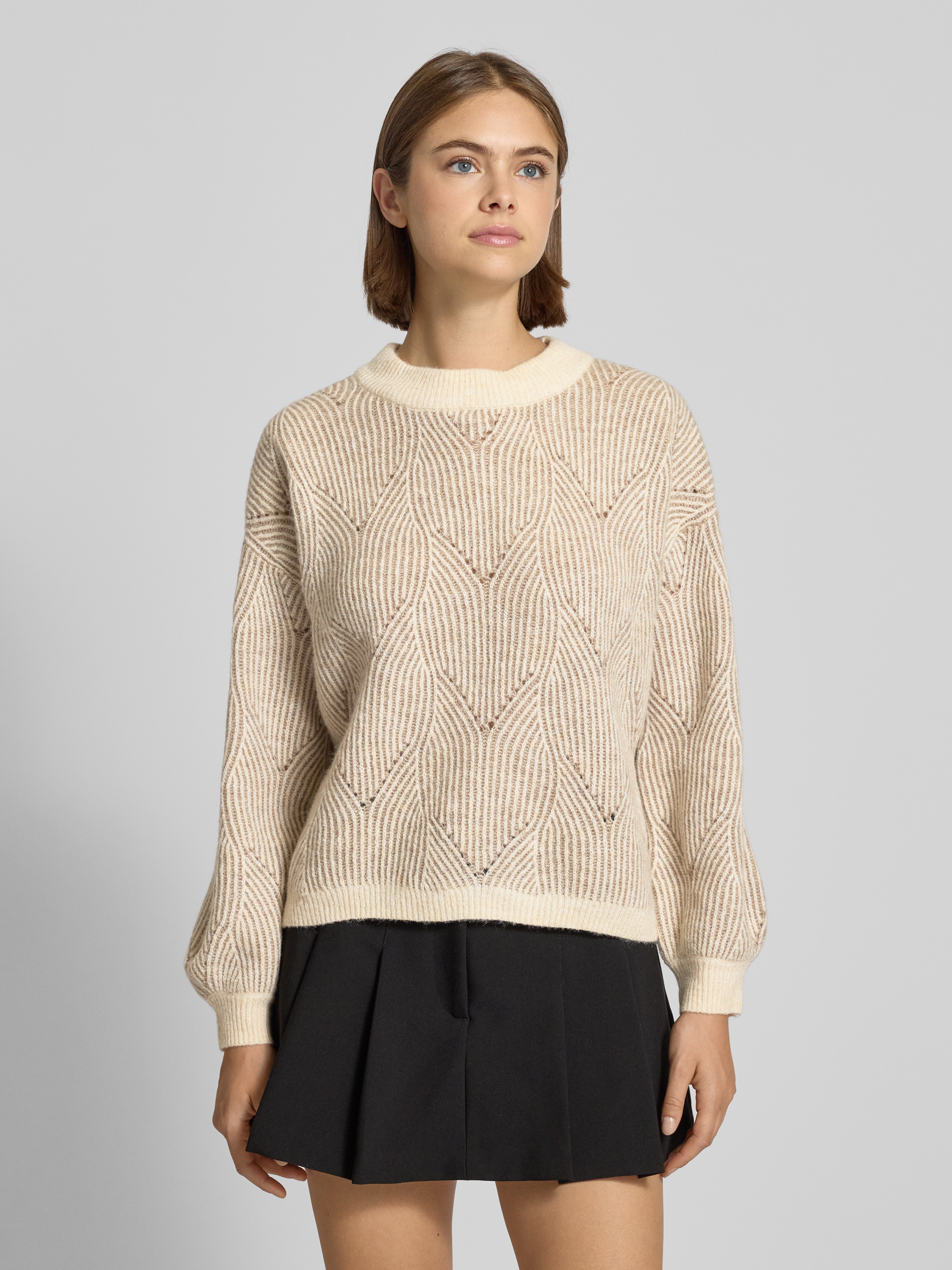 PiecesComfort Fit Strickpullover mit Woll-Anteil 'JENNA' in sand melange