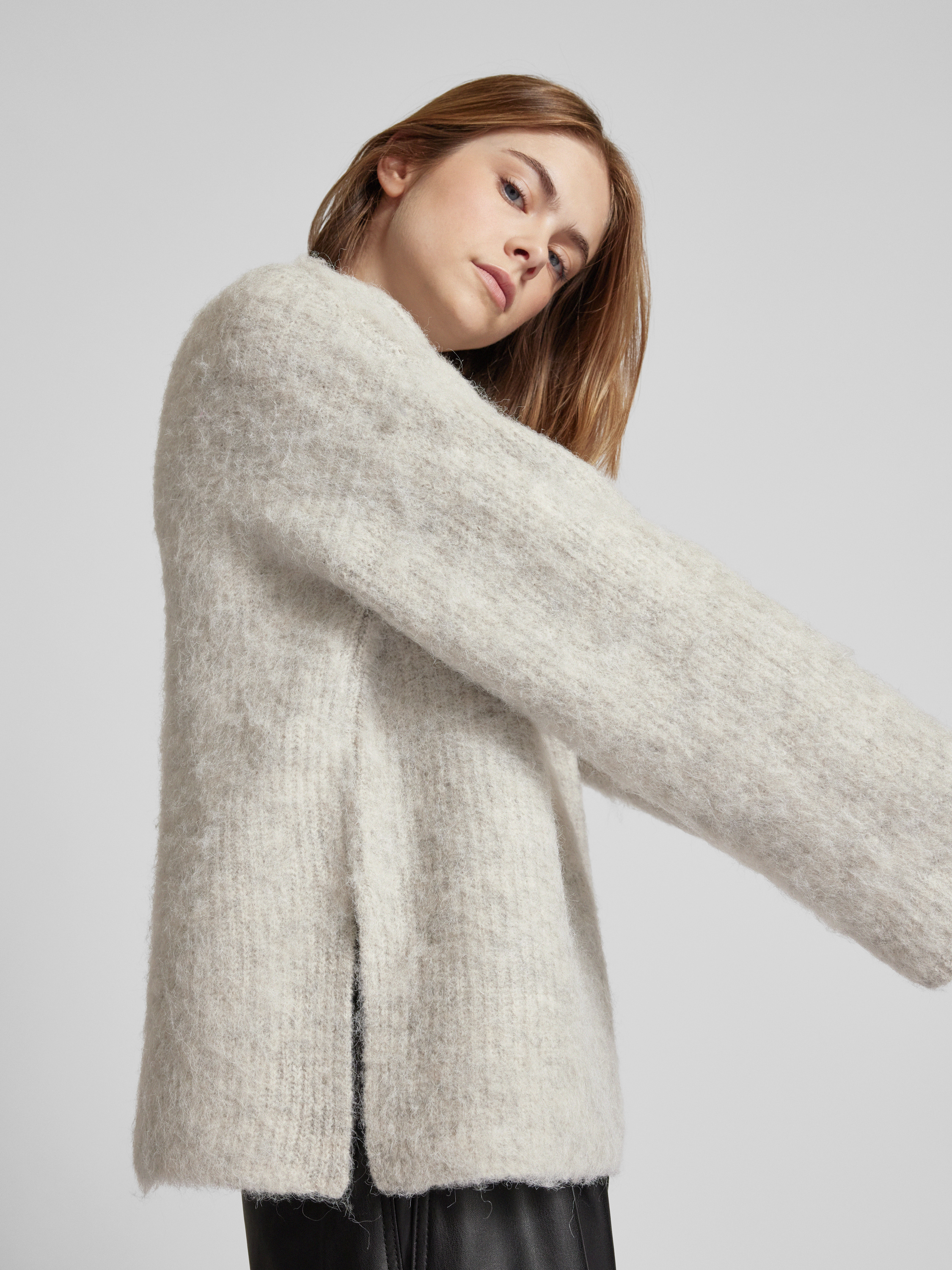 PiecesComfort Fit Strickpullover mit Woll-Anteil Modell 'MALA'l in hellgrau