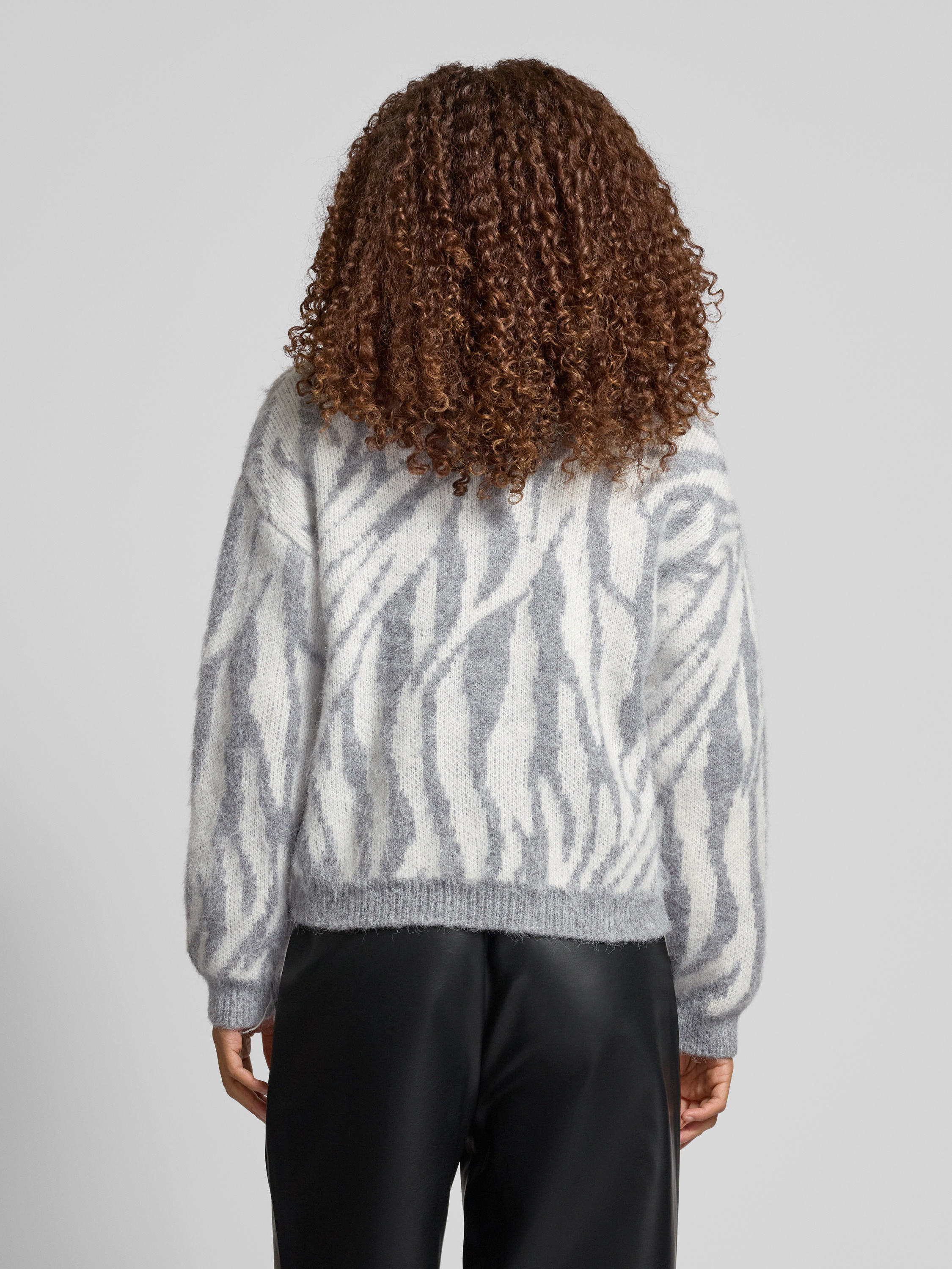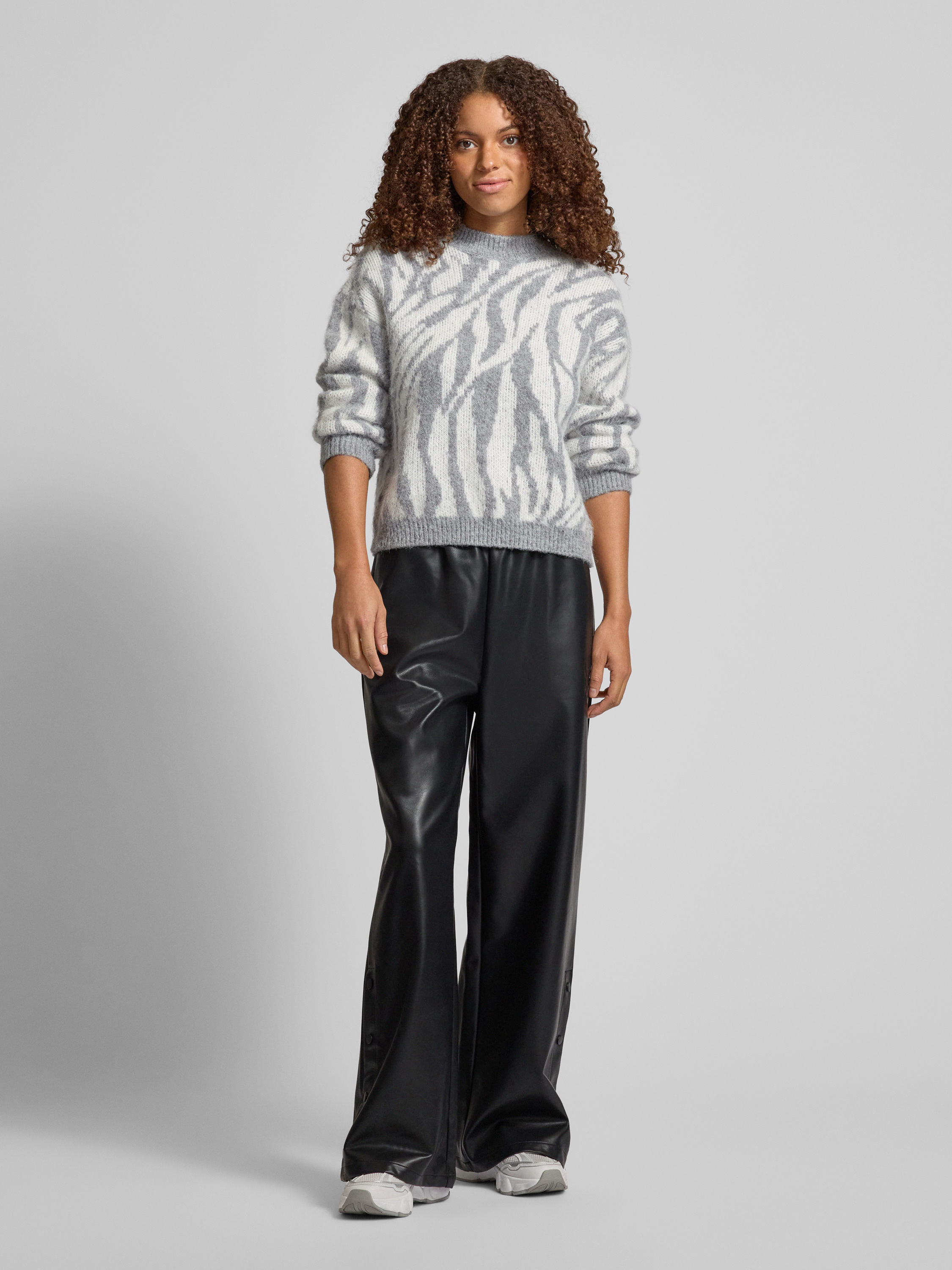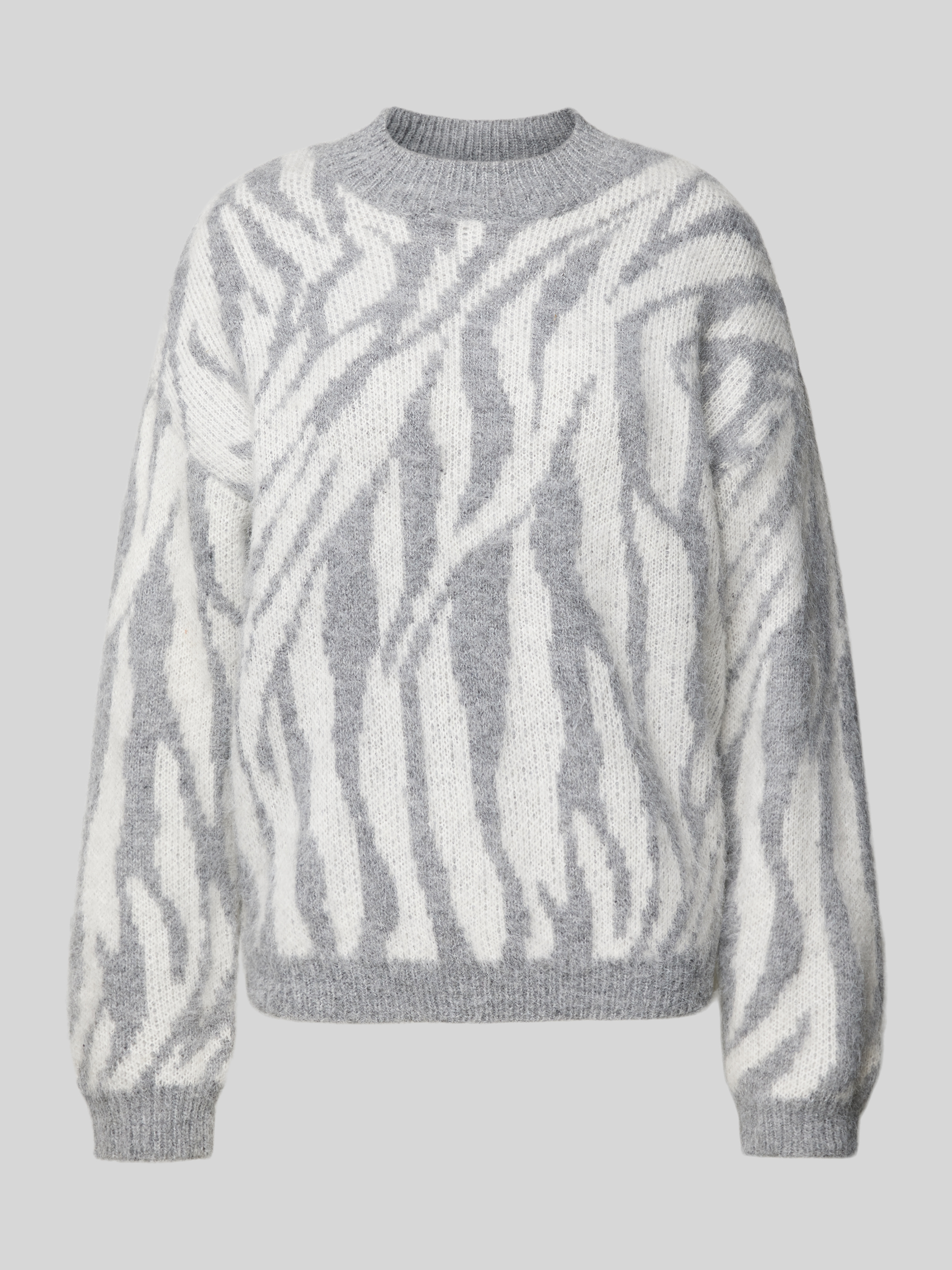 PiecesComfort Fit Strickpullover mit Wollanteil und Allover-Muster Modell 'NOELA' in hellgrau