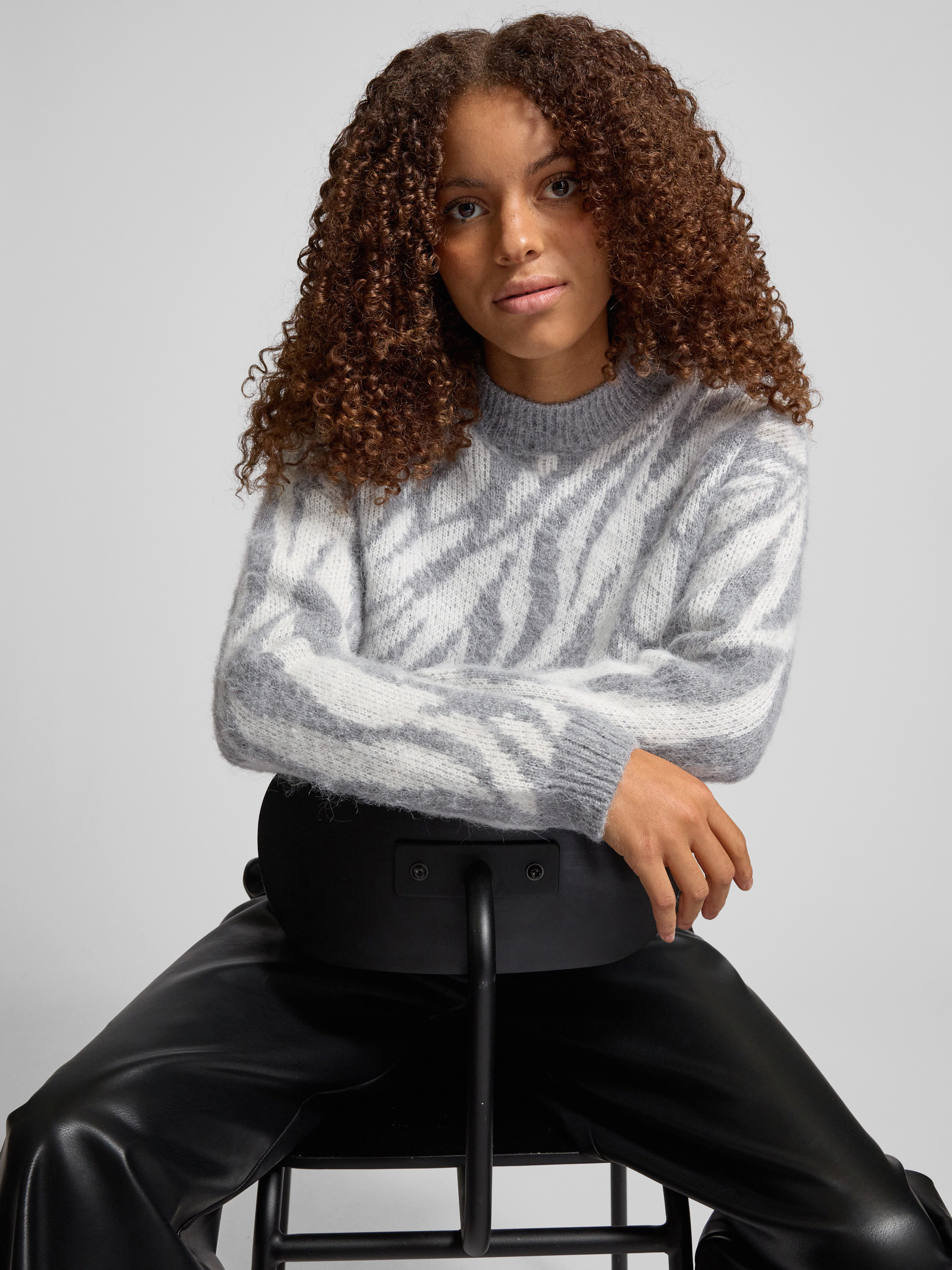 Der Comfort Fit Strickpullover 'Noela' von PIECES präsentiert sich in einem abstrakten Allover-Muster und kombiniert stilvolle Lässigkeit mit angenehmer Wärme. Der Mock-Neck-Kragen und die langen Ärmel sorgen für eine gemütliche Passform, während der Polyester-Mix für dauerhafte Formbeständigkeit sorgt. Ideal für den Alltag.