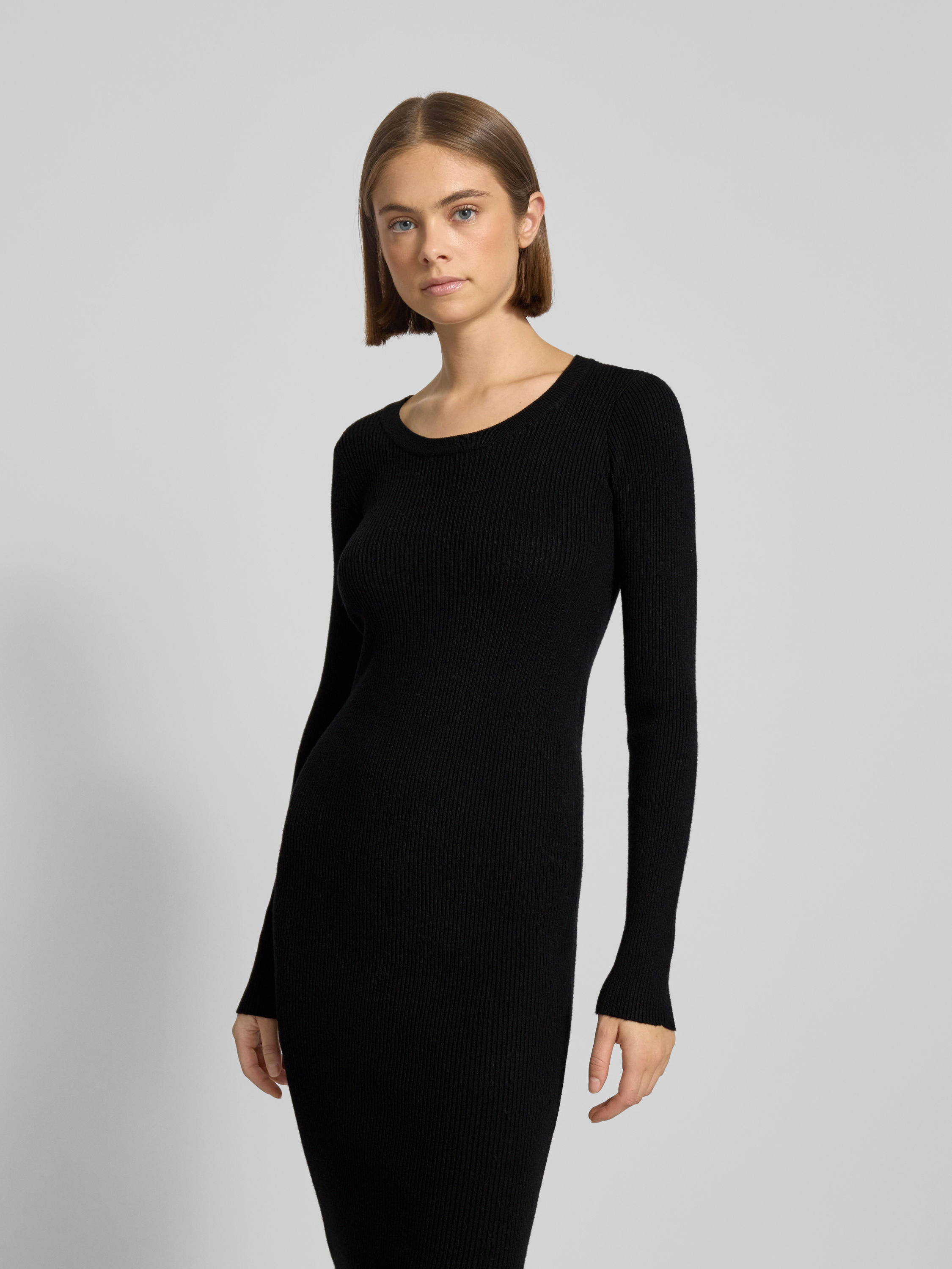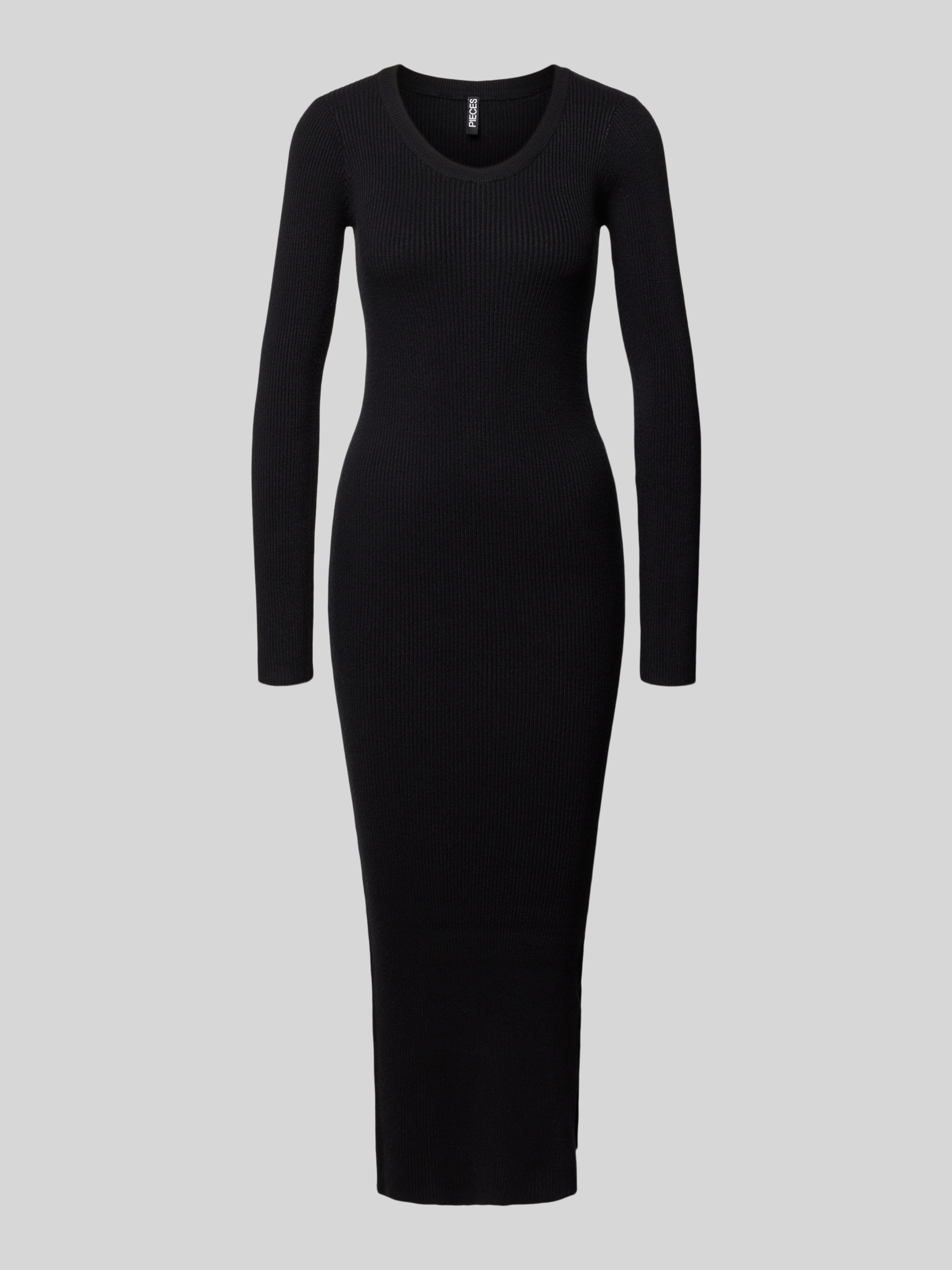 PiecesFigurbetontes Strickkleid aus geripptem Viskose-Mix Modell 'MIRA' in black
