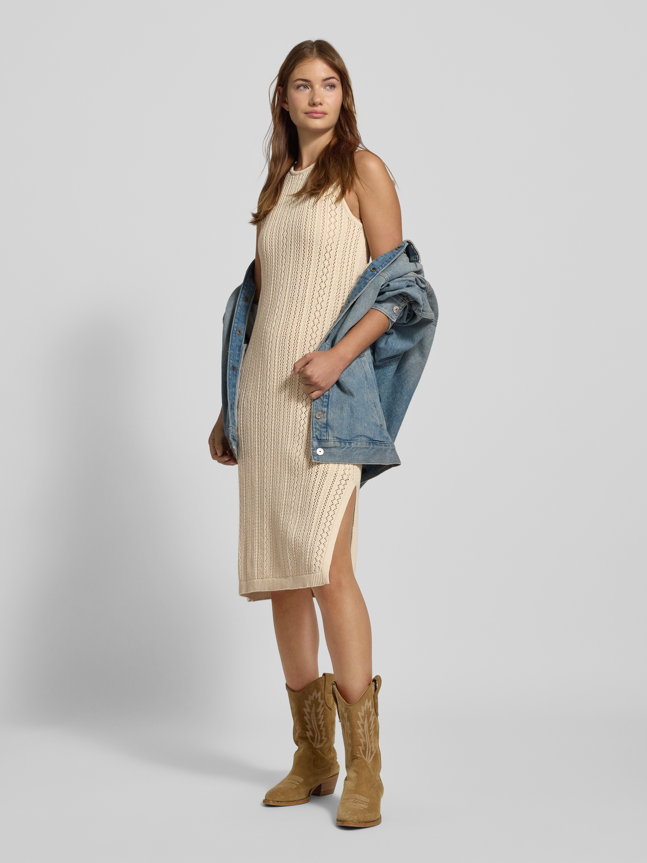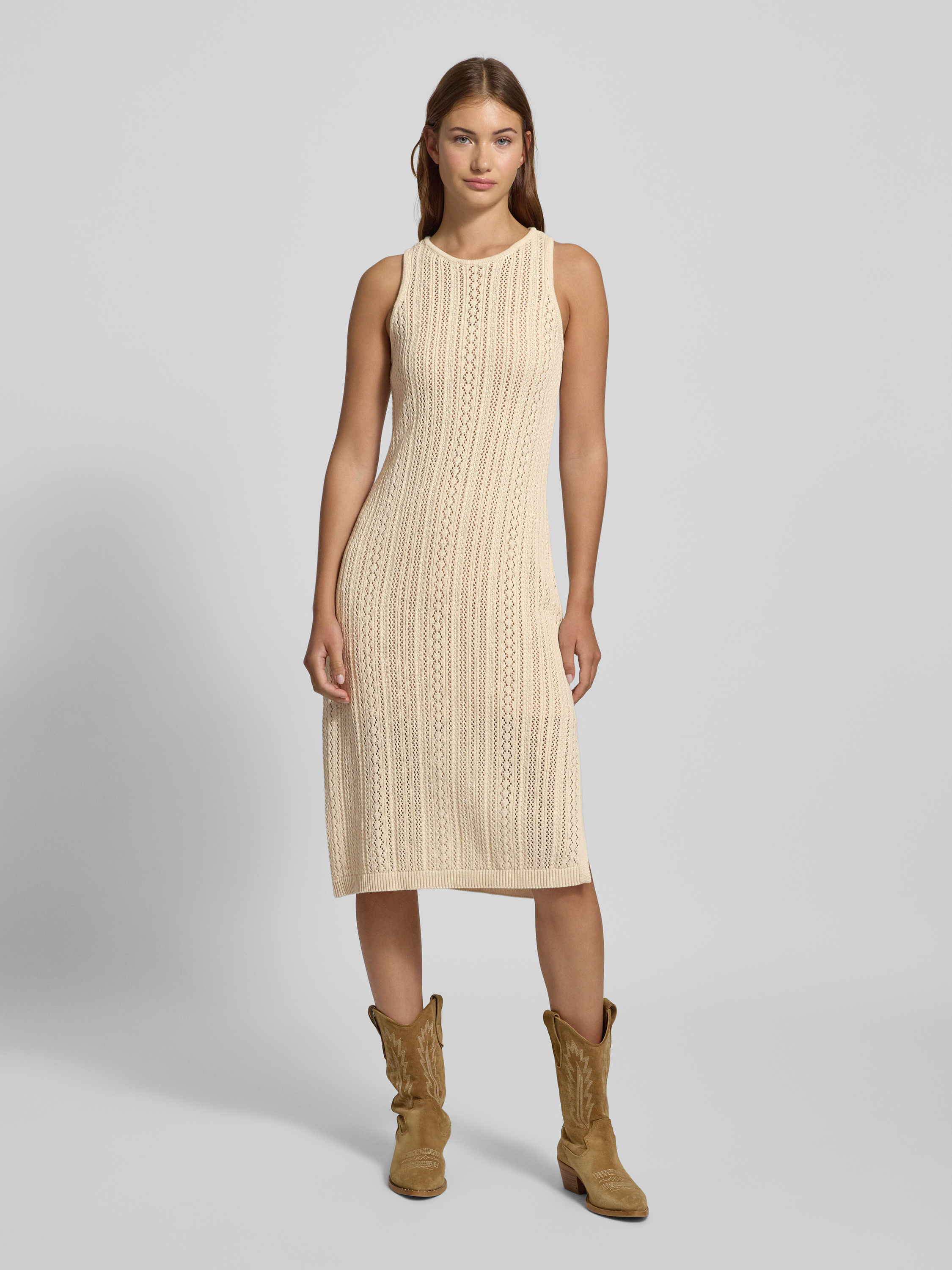 PiecesLoose Fit Strickkleid aus reiner Baumwolle Modell 'NUKA' in beige