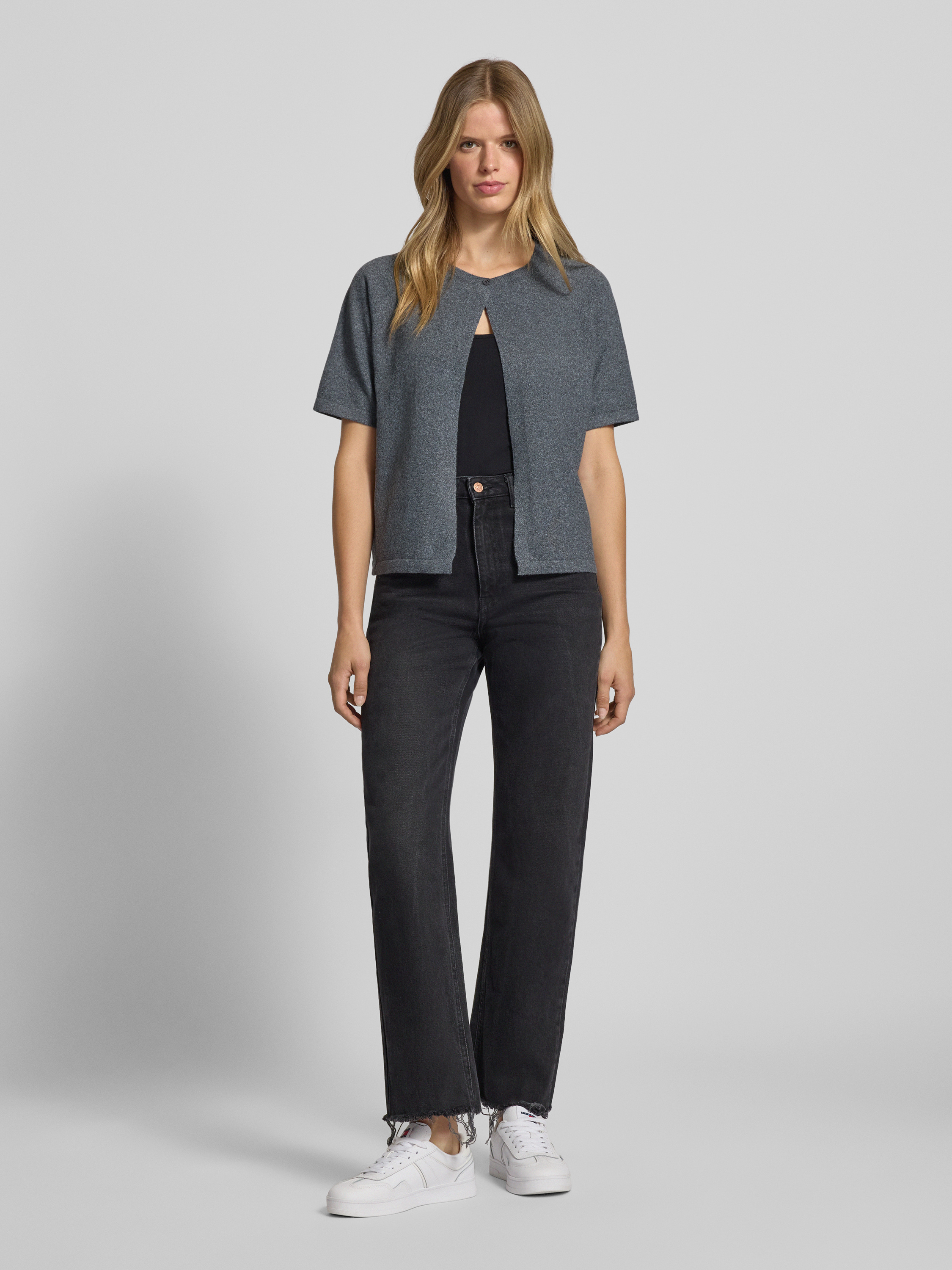 Der Regular Fit Cardigan Bree von Pieces zeigt sich in melierter Optik und liegt dank seiner Strickverarbeitung angenehm auf der Haut. Kurze Raglanärmel und der Rundhalsausschnitt unterstützen eine bequeme Passform, sodass er sich vielseitig kombinieren lässt. Besonders an warmen Tagen sorgt er für angenehmen Komfort.