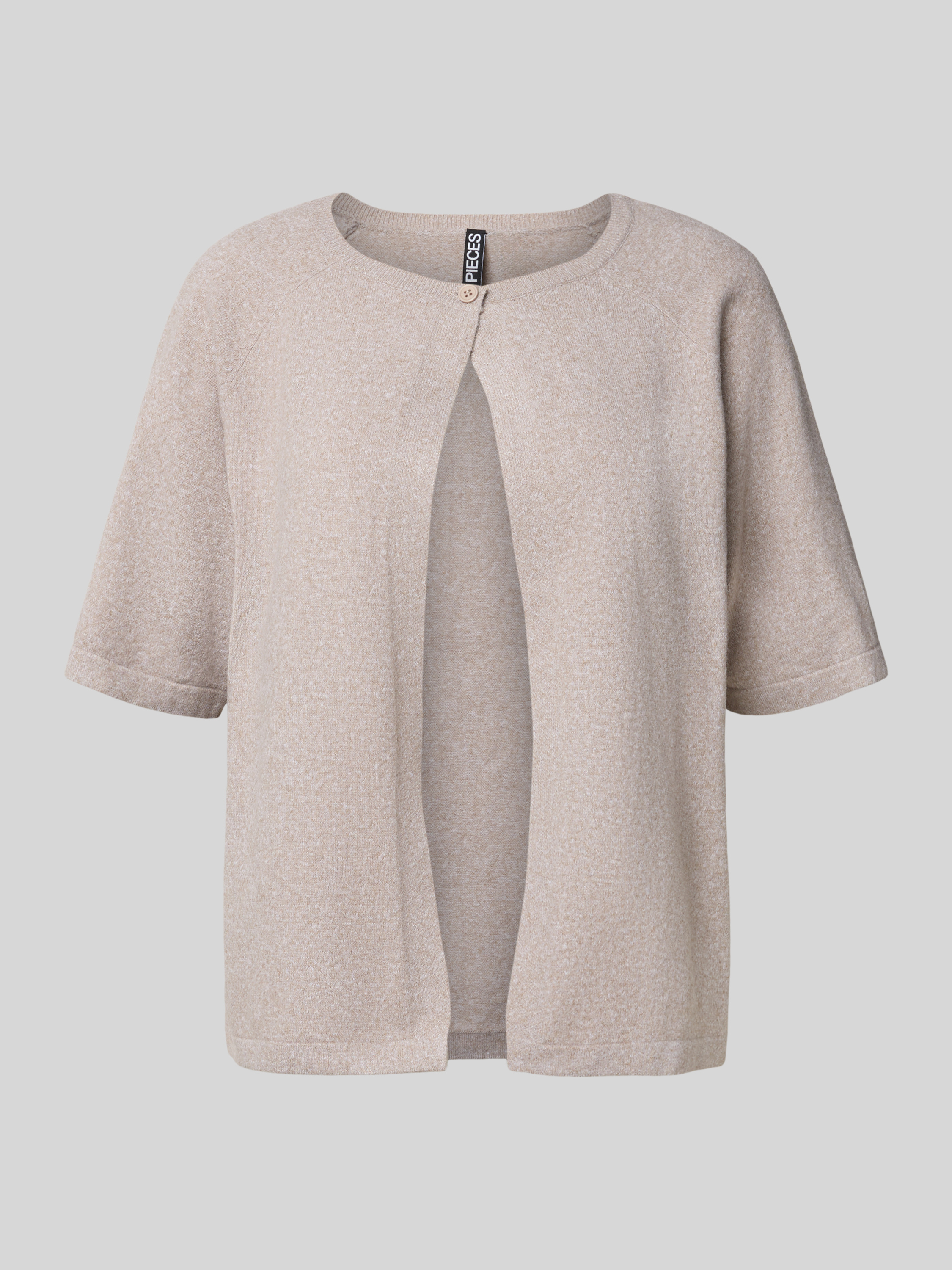 Der Regular Fit Cardigan Bree von Pieces zeigt sich in melierter Optik und liegt dank seiner Strickverarbeitung angenehm auf der Haut. Kurze Raglanärmel und der Rundhalsausschnitt unterstützen eine bequeme Passform, sodass er sich vielseitig kombinieren lässt. Besonders an warmen Tagen sorgt er für angenehmen Komfort.
