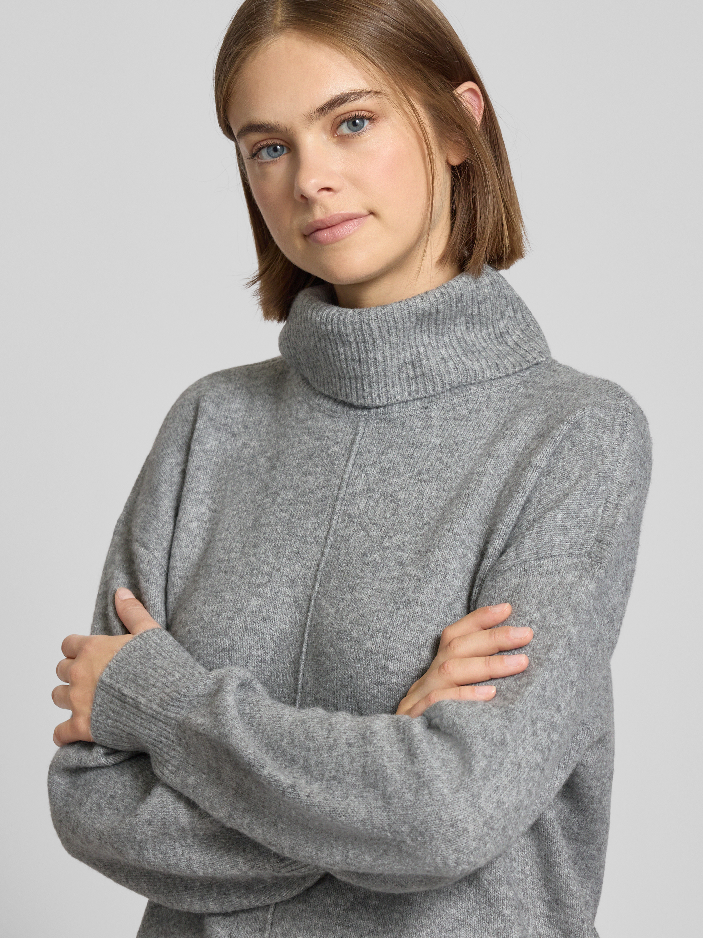PiecesRegular Fit Rollkragenpullover mit Wollanteil Modell 'MALOU' in hellgrau