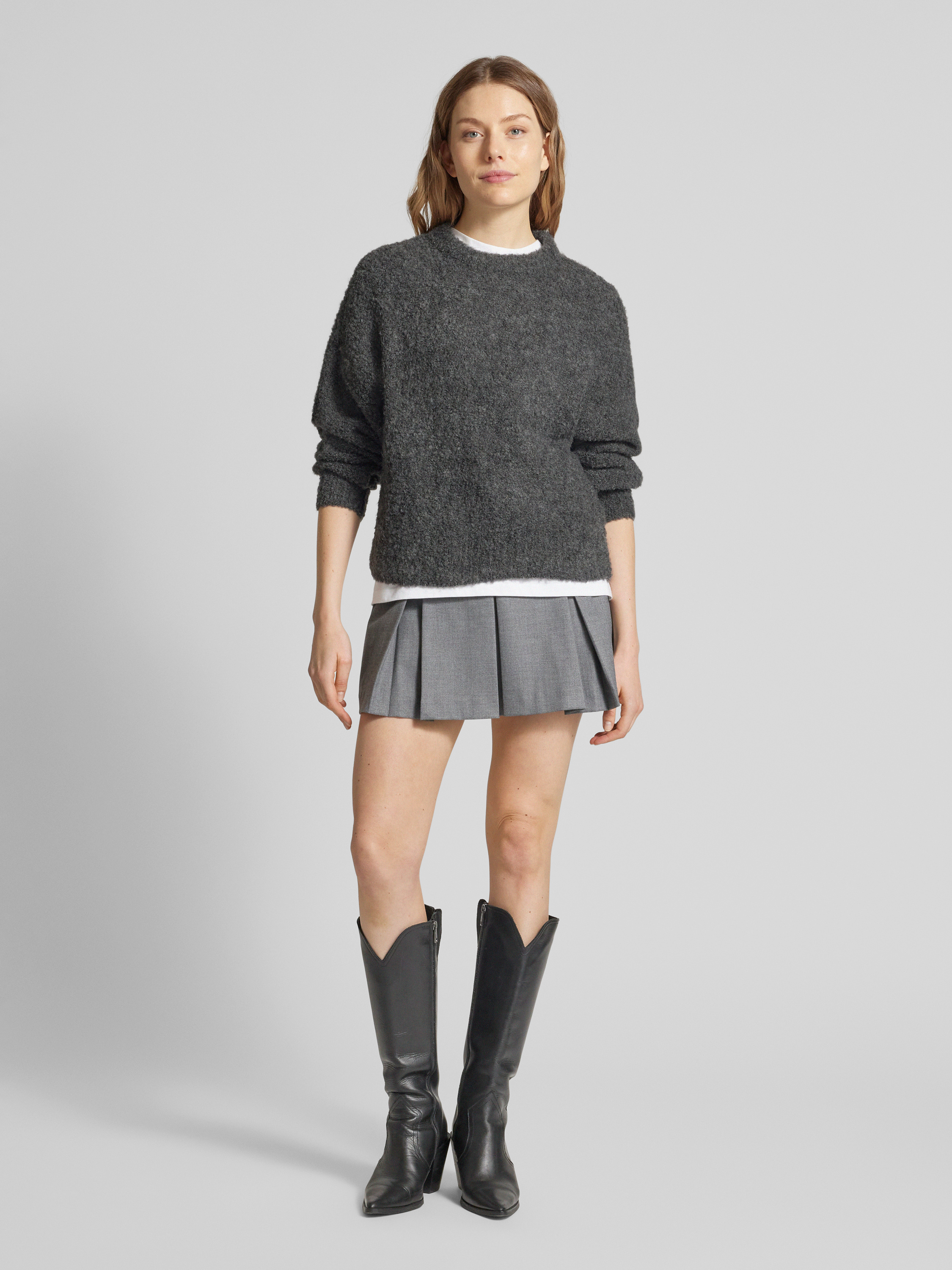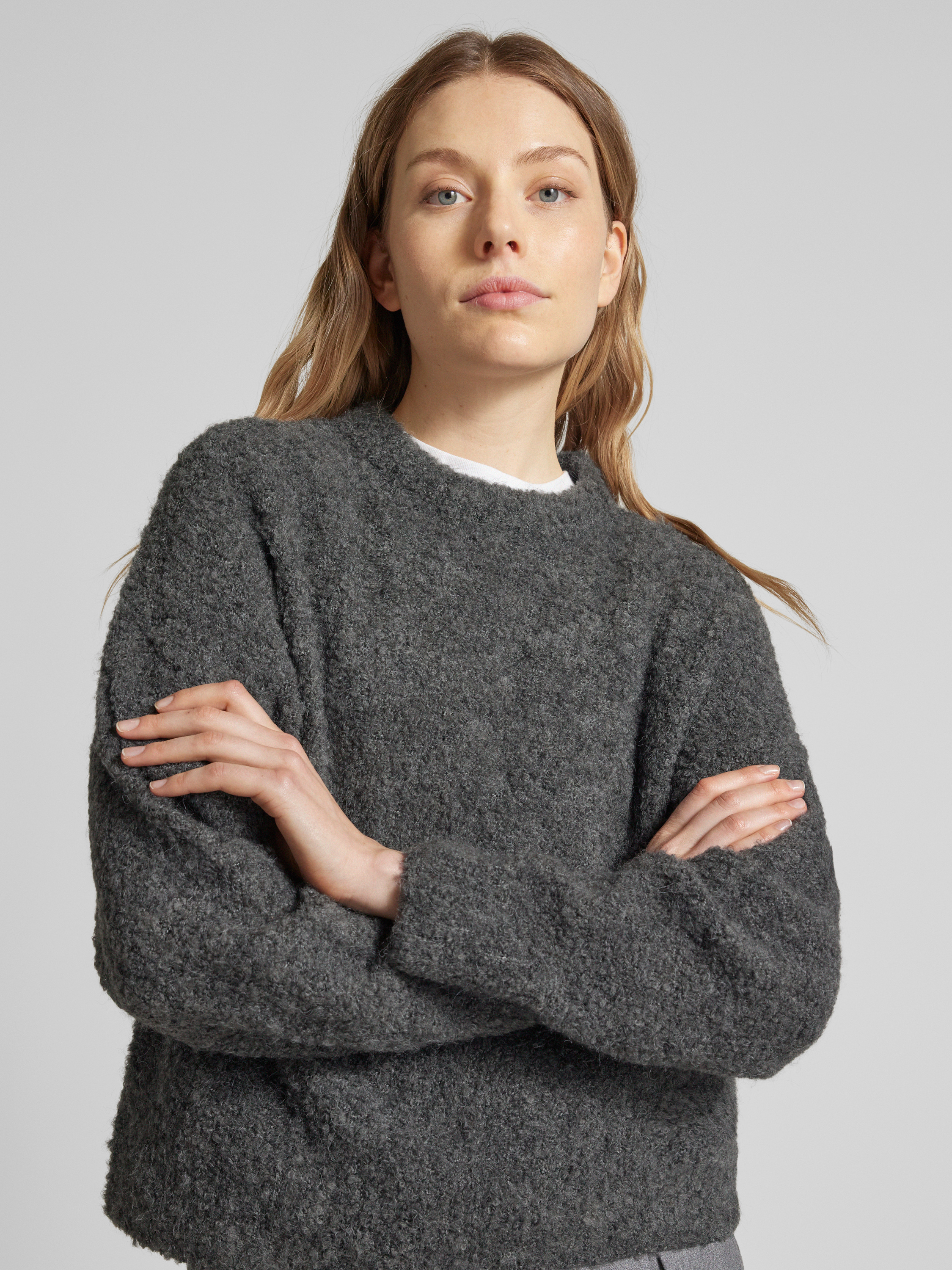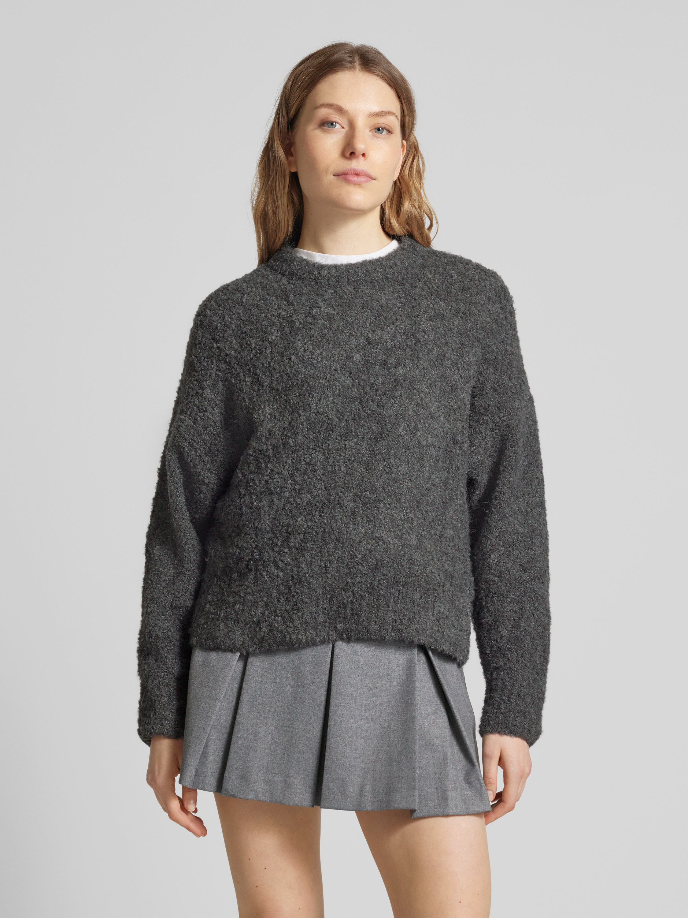 PiecesRegular Fit Strickpullover mit Wollanteil Modell 'NATHERINE' in anthrazit