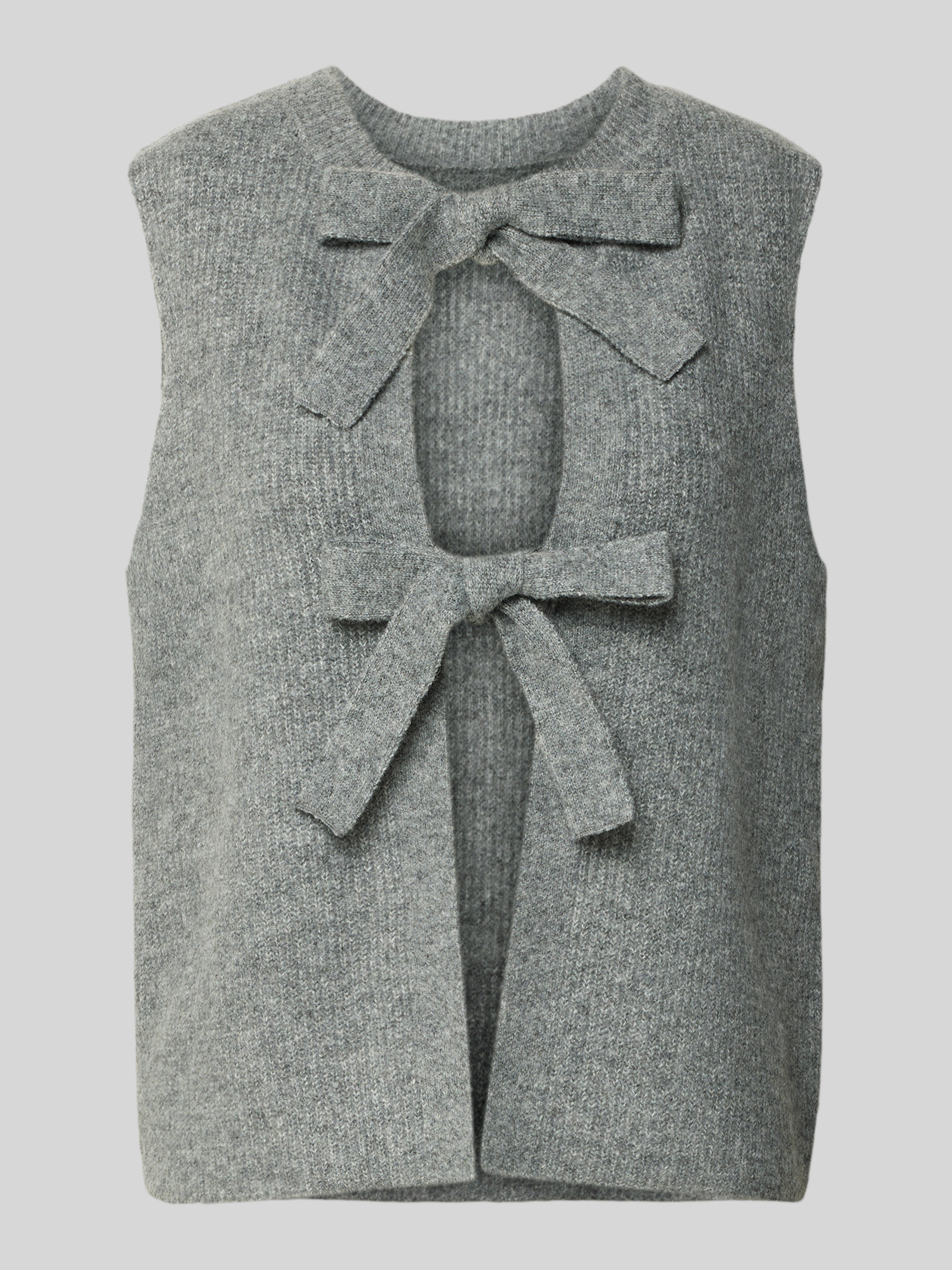 • Pieces Regular Fit Strickweste mit Bindeverschluss Modell 'SILLY' Hellgrau Melange