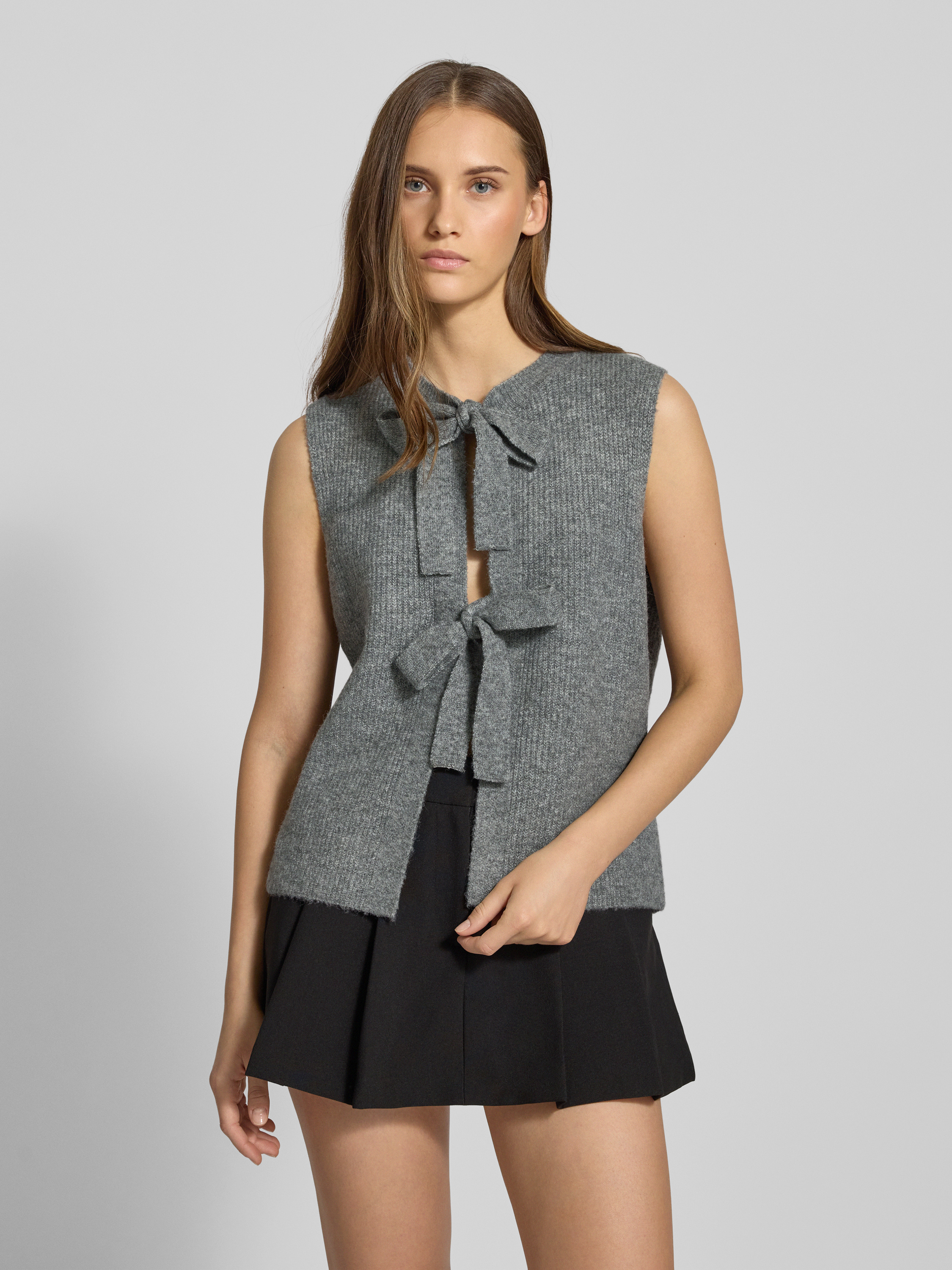 PiecesRegular Fit Strickweste mit Bindeverschluss Modell 'SILLY' in hellgrau melange