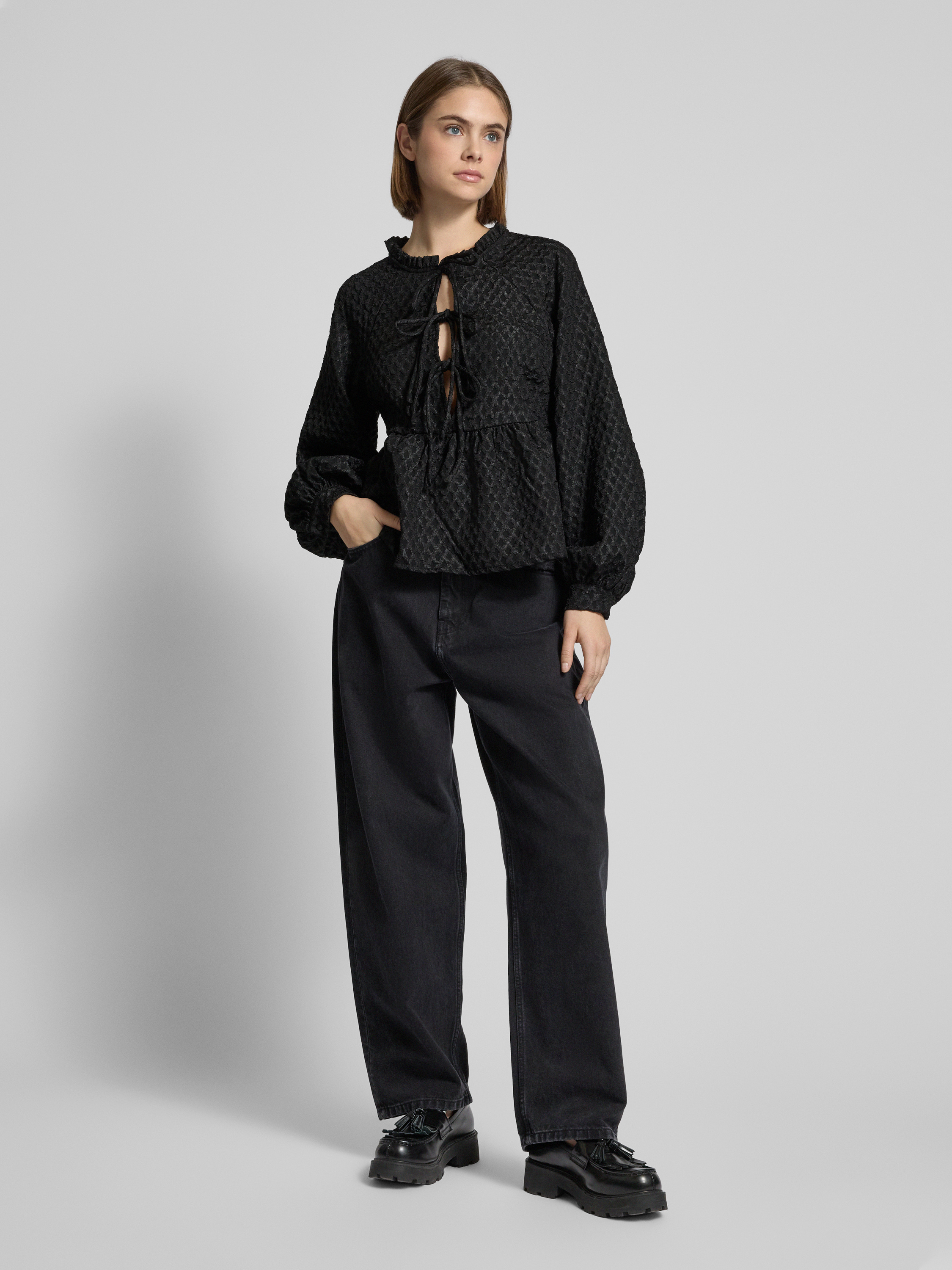 PiecesRelaxed Fit Bluse mit Struktur-Muster Modell 'NIBE' in black