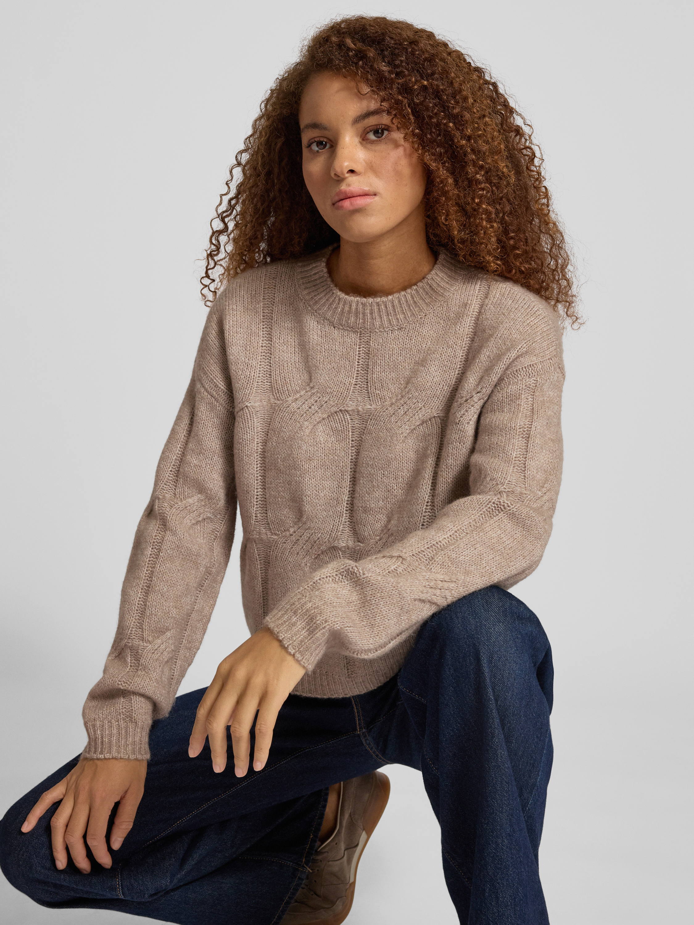 PiecesRelaxed Fit Strickpullover mit Woll-Anteil Modell 'JENNA' in beige