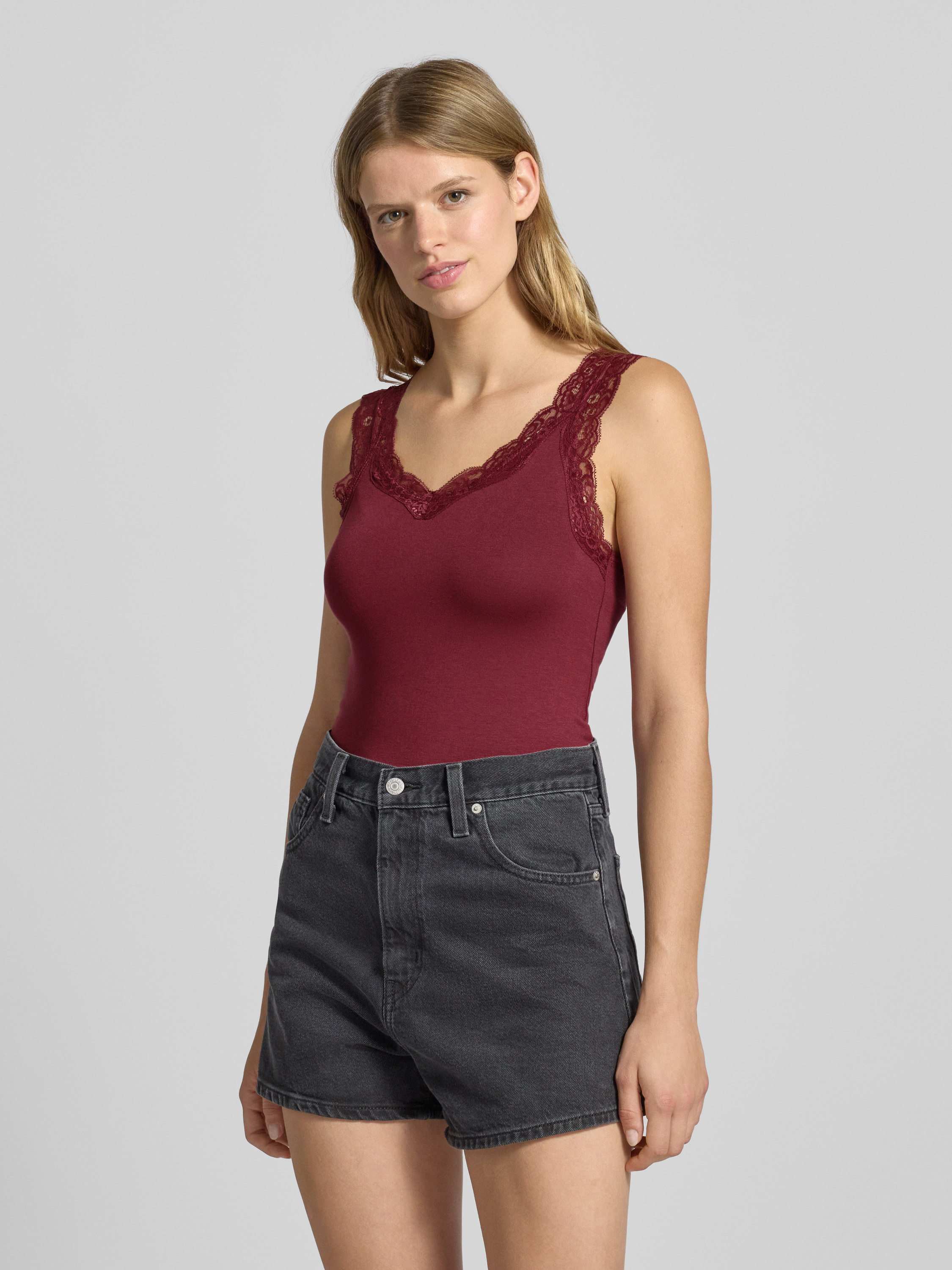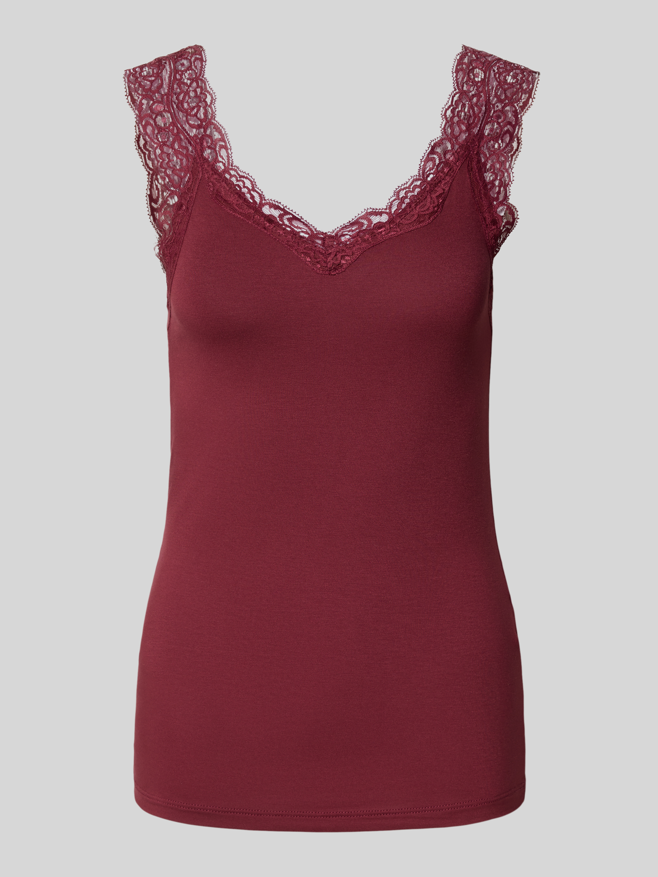 PiecesSlim Fit Tank Top aus Viskose-Mix Modell 'BARBERA' in dunkelrot