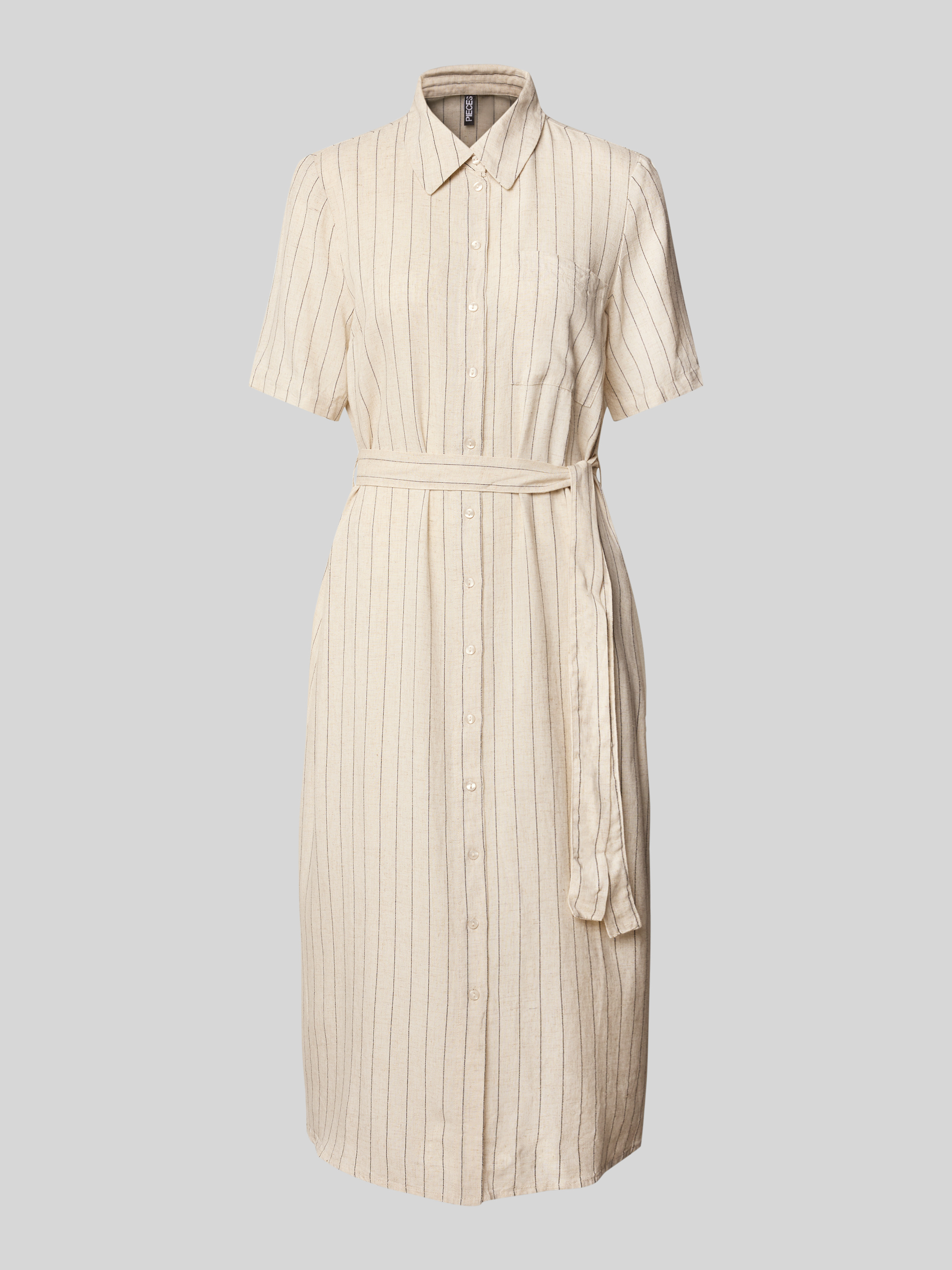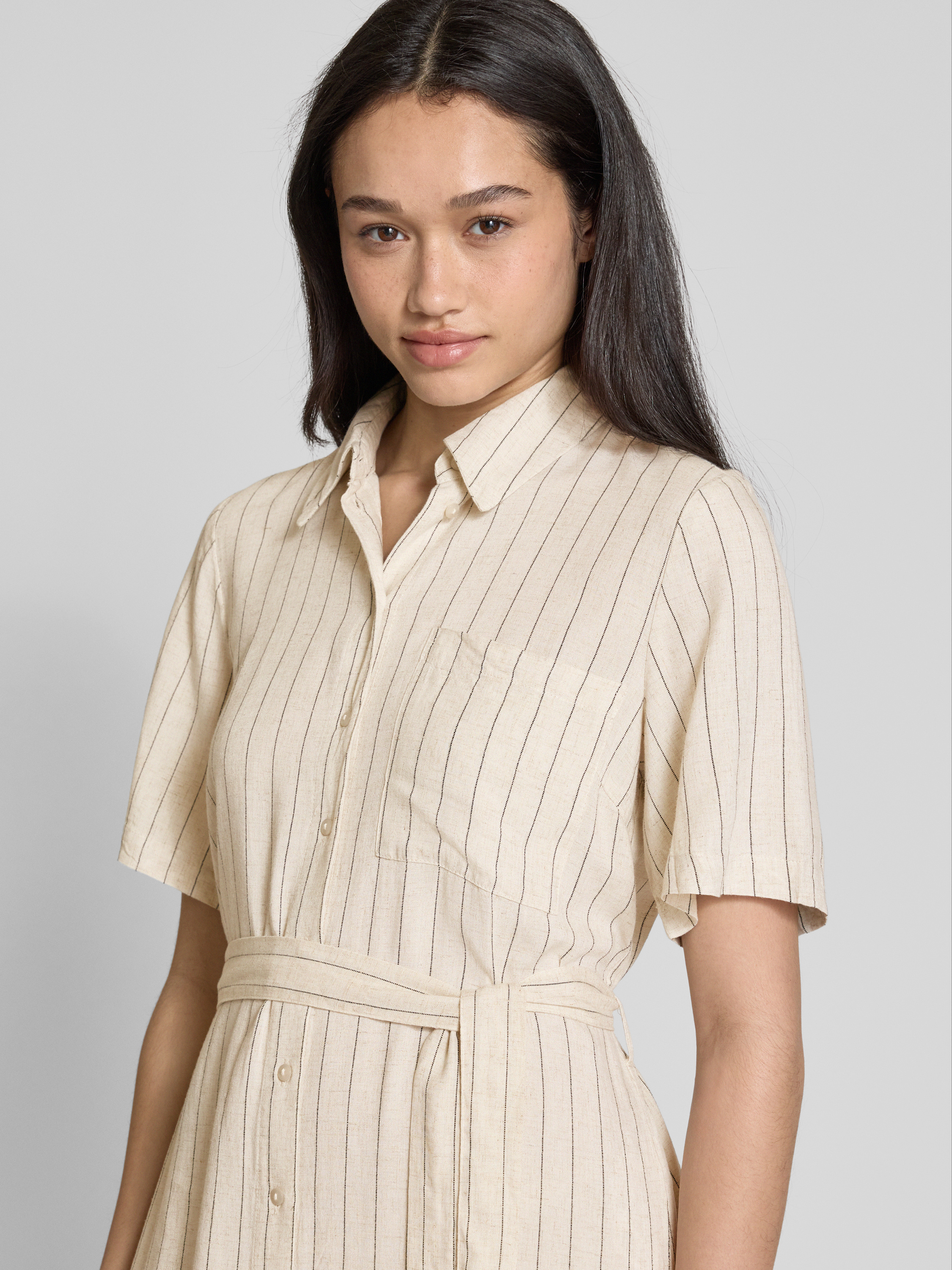 PiecesTailliertes Freizeitkleid aus Viskose-Leinen-Mix Modell 'PIA' in beige