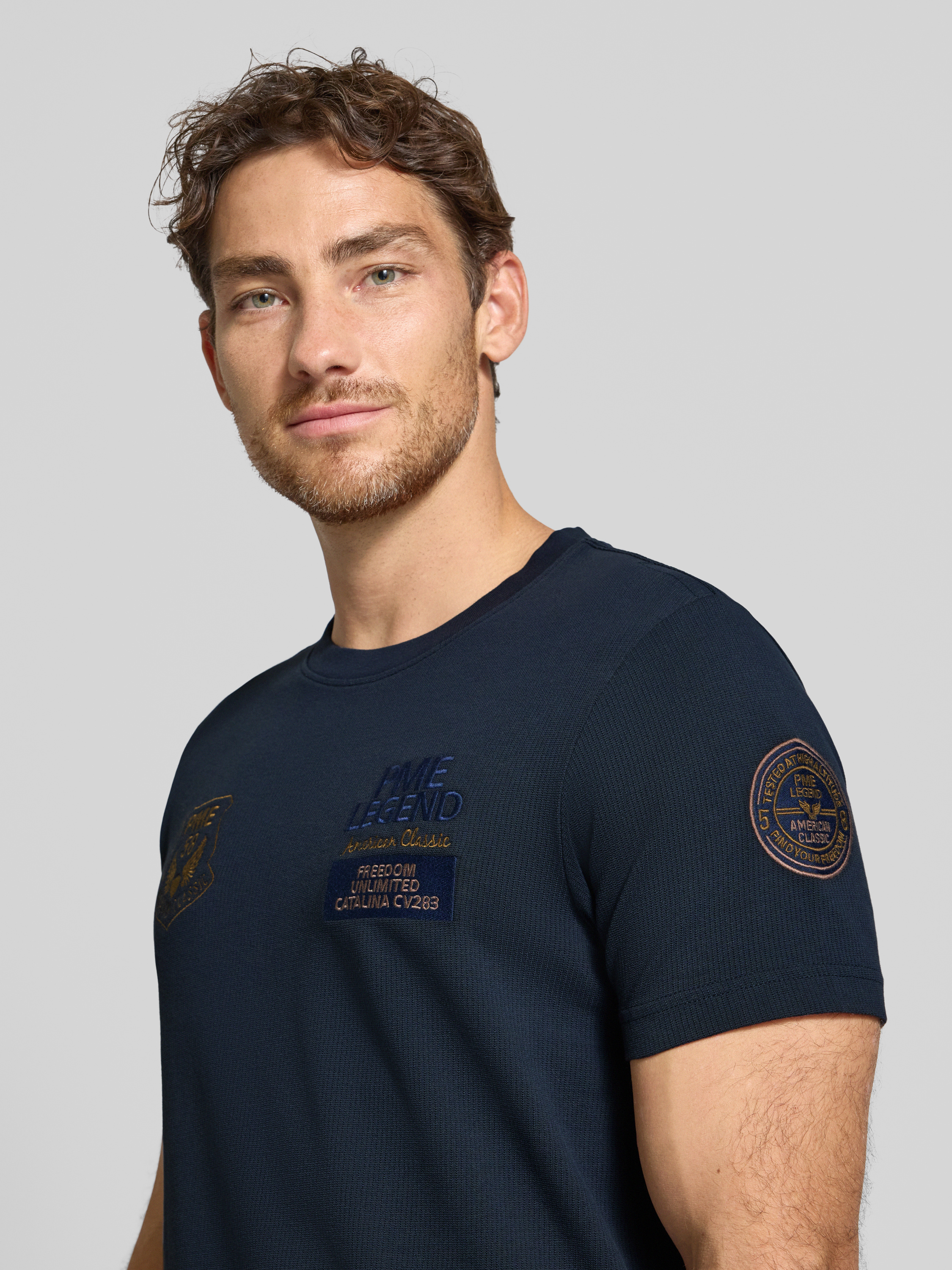 PME LegendT-Shirt mit Logo- und Motiv-Stitchings Modell 'ON' in marine