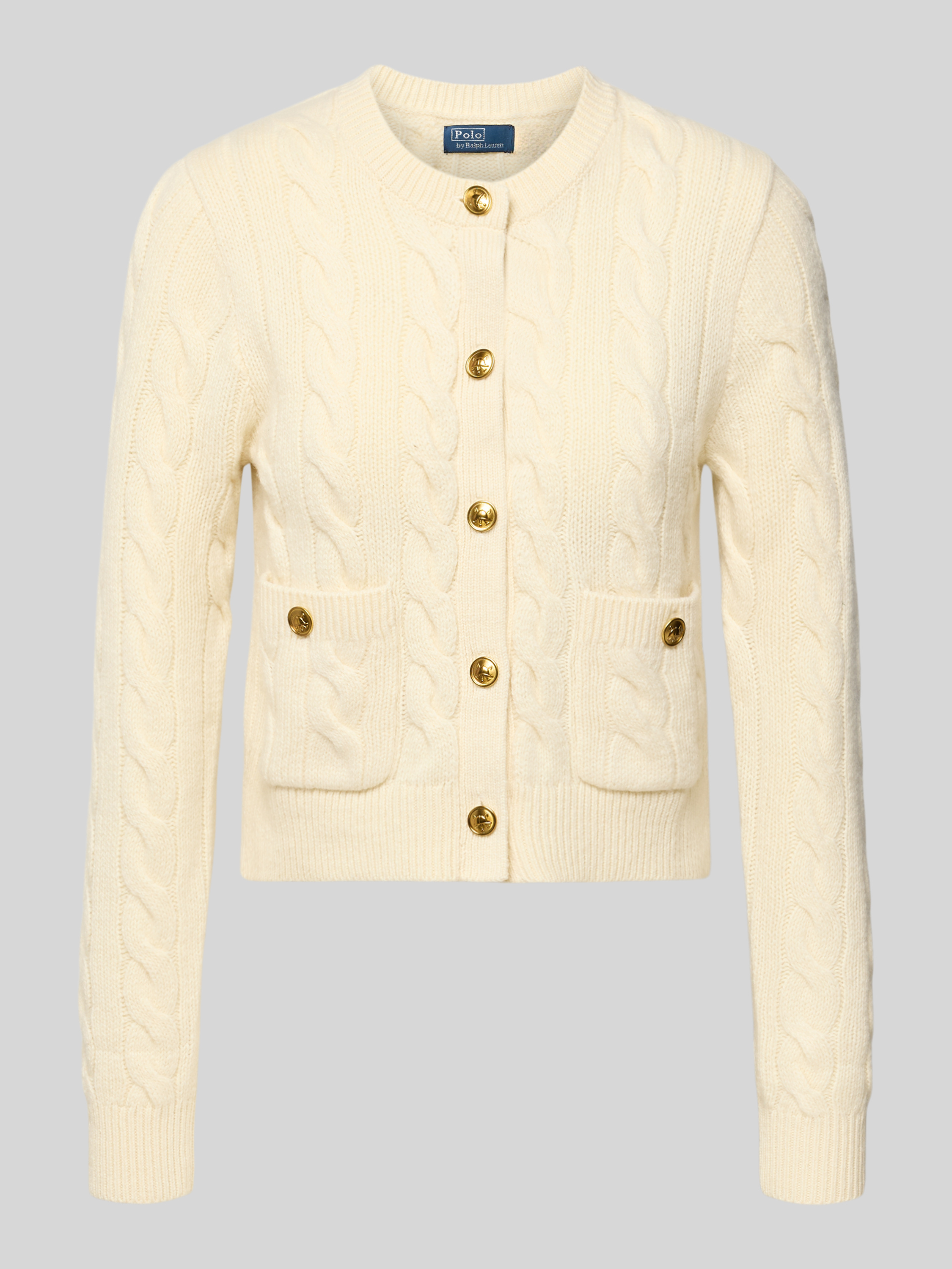Polo Ralph LaurenCardigan aus Lanawolle-Kaschmir-Mix mit Zopfmuster in ecru
