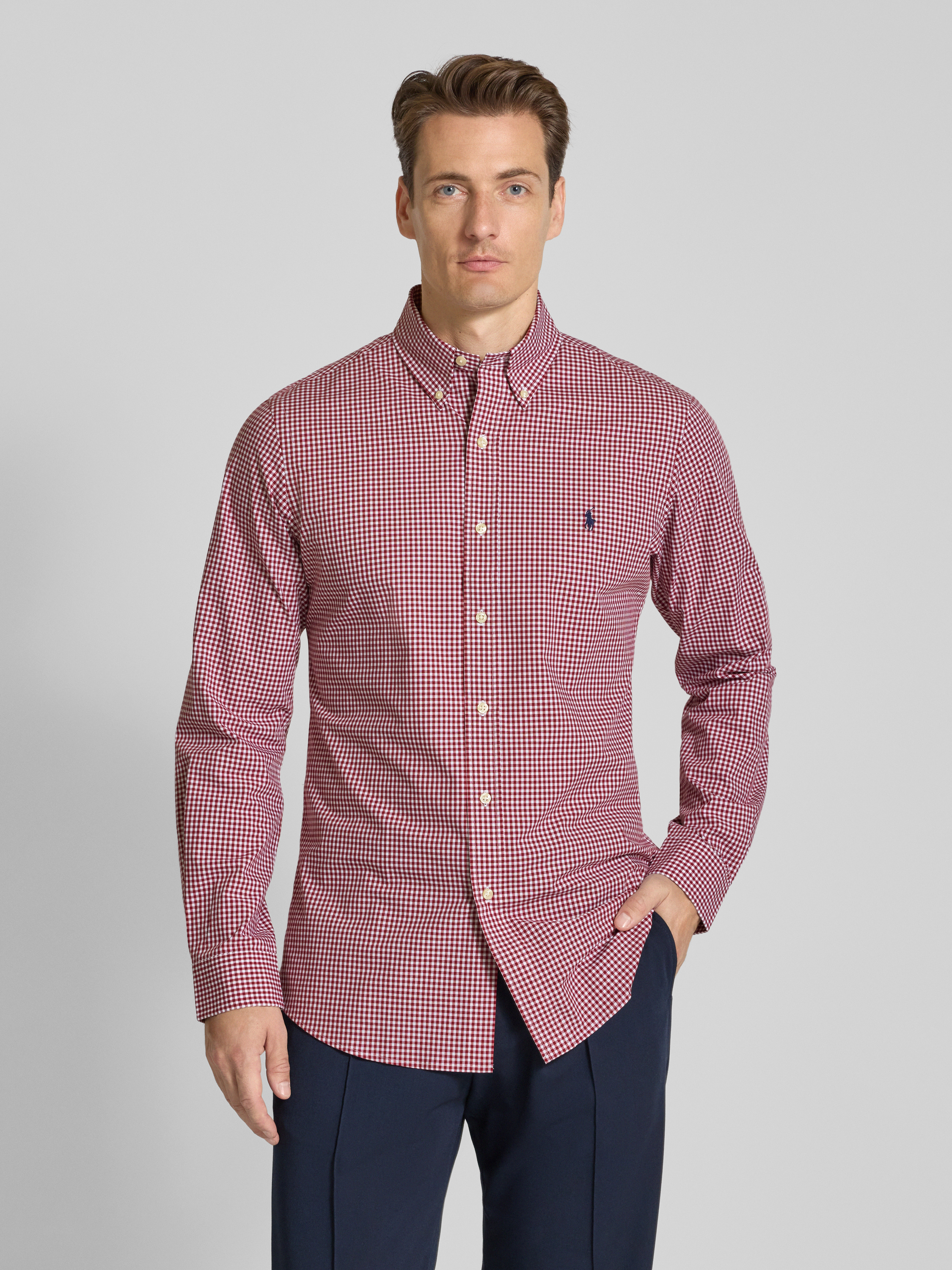 Das Herren Freizeithemd von Polo Ralph Lauren aus einem Baumwoll-Elasthan-Mix liegt angenehm auf der Haut und passt sich dem Körper in einem Custom Fit an. Durch den klassischen Button-Down-Kragen wirkt das Hemd unkompliziert, während das dezente Label-Stitching einen sportiven Akzent setzt. Ideal für entspannte Stunden, lässt sich das Freizeithemd mit Knopfleiste vielseitig kombinieren.