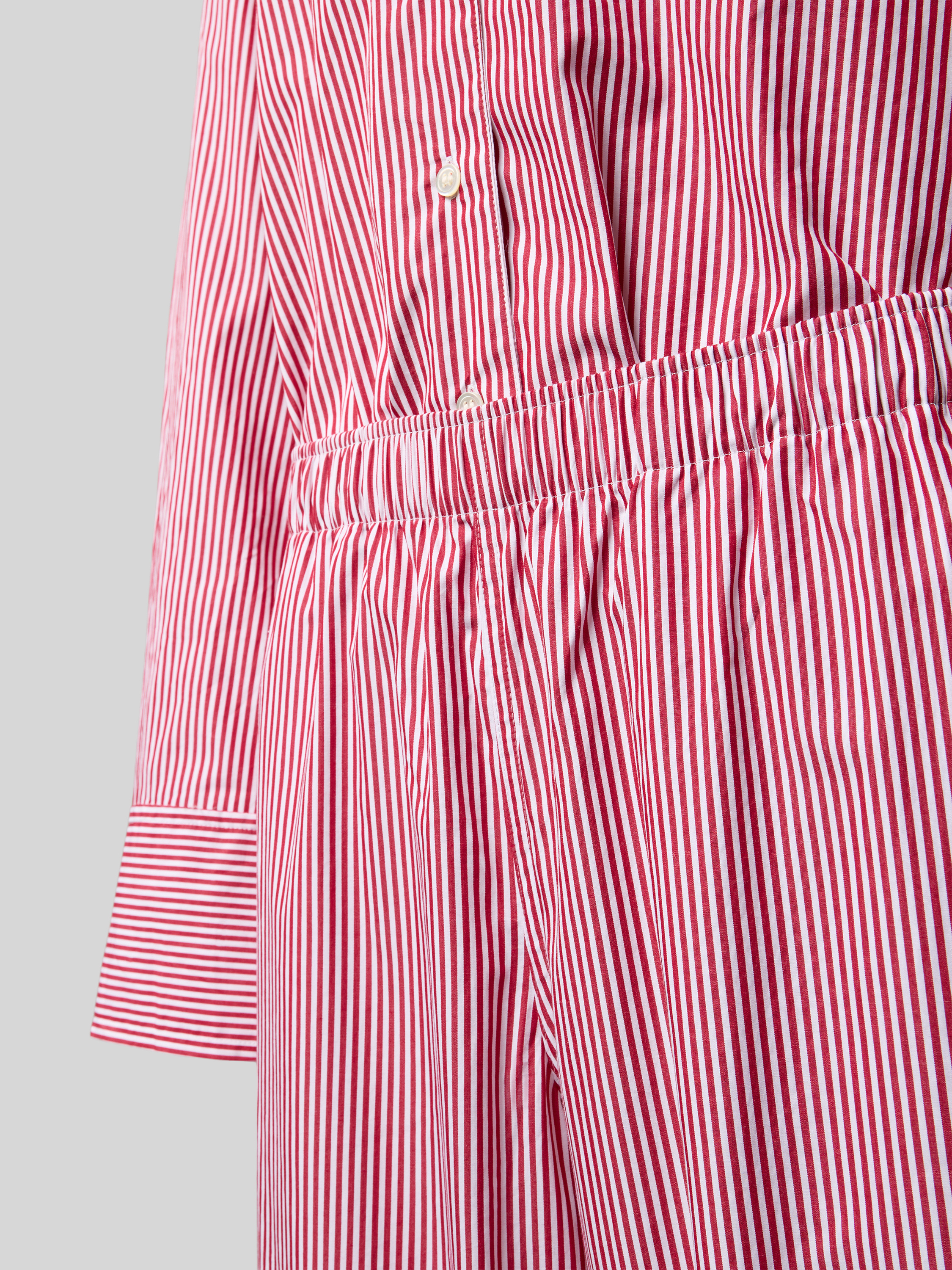 Der Damen Pyjama von Polo Ralph Lauren fällt durch seinen lockeren Schnitt angenehm leicht und sorgt für entspannte Bewegungsfreiheit. Reine Baumwolle legt sich weich auf die Haut und schafft ein angenehmes Tragegefühl, während der klassische Reverskragen eine zeitlose Note verleiht. Dezente Details wie Brusttasche und Label-Stitching runden das Gesamtbild ab.