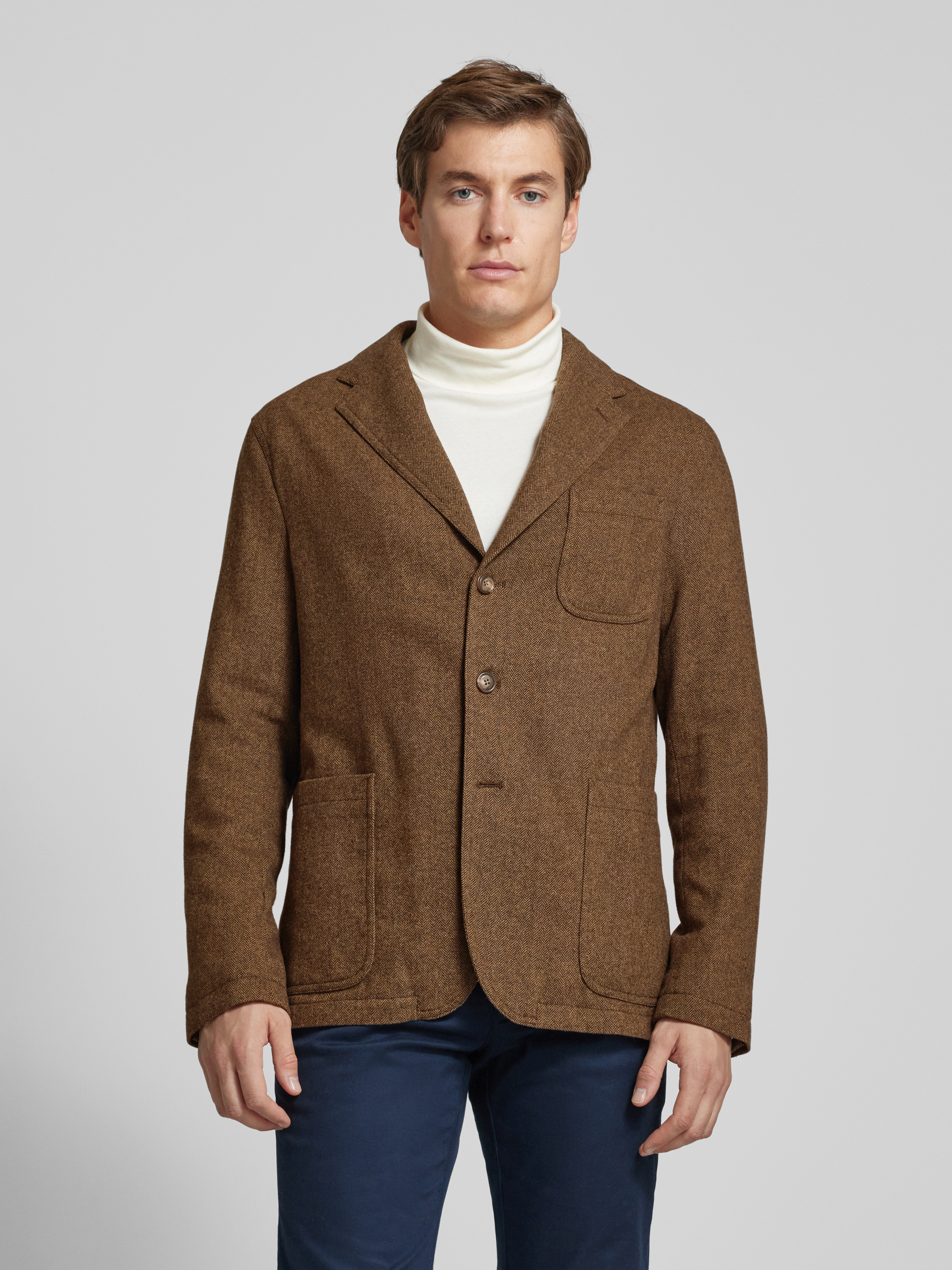 Das Sakko von Polo Ralph Lauren kombiniert einen Material-Mix mit Woll-Anteil, der für ein angenehmes Tragegefühl sorgt. Durch den Regular Fit und den klassischen Reverskragen erhält es eine zeitlose Silhouette. Praktische Details wie aufgesetzte Eingrifftaschen und eine Brusttasche runden das Design ab.