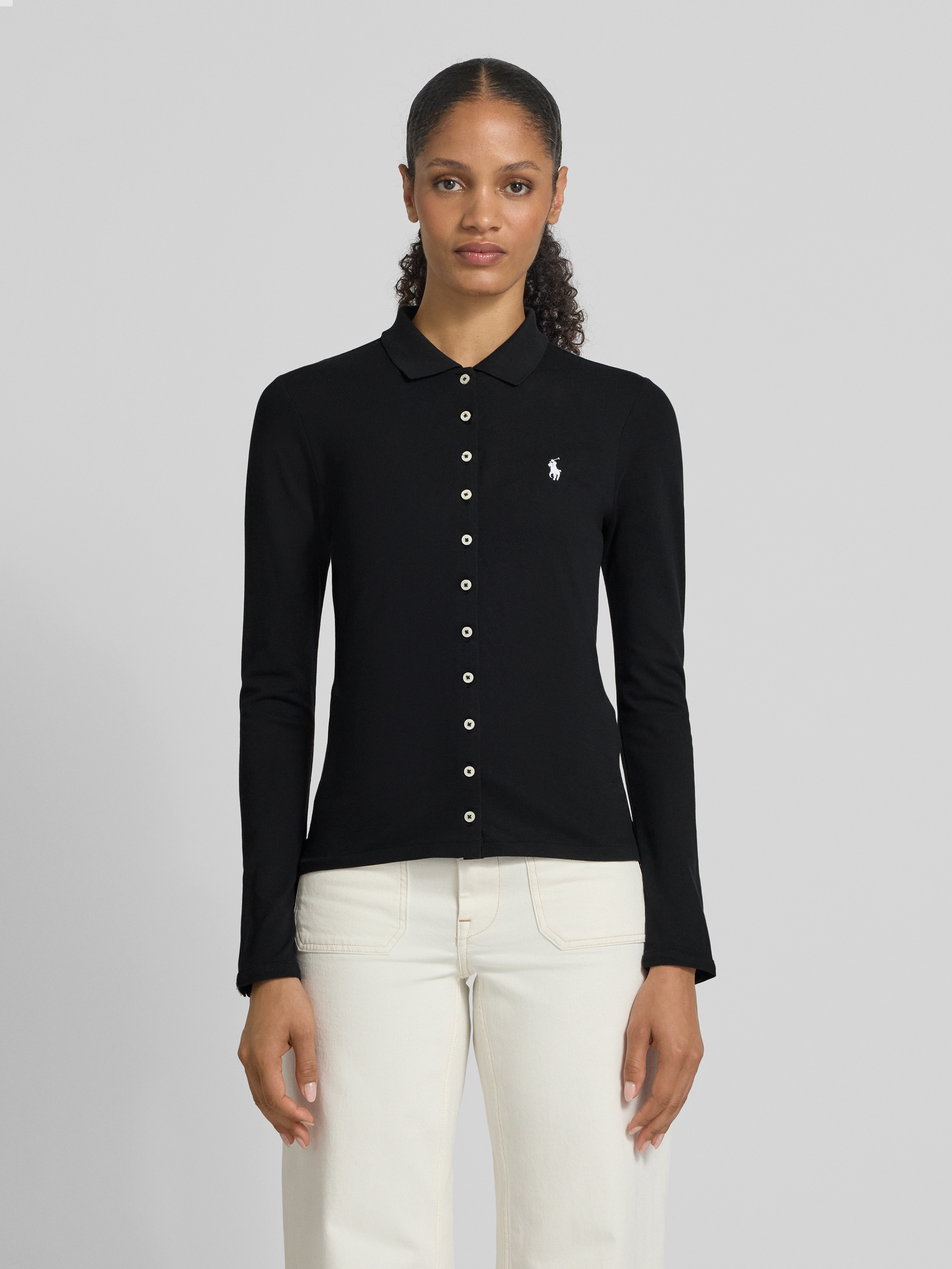 Das Damen Poloshirt von Polo Ralph Lauren sitzt durch den schmalen Schnitt angenehm nah am Körper und formt eine gepflegte Silhouette. Dank des Baumwoll-Elasthan-Mixes bleibt das Shirt flexibel und fühlt sich weich an. Dezentes Label-Stitching rundet den sportlichen Look wirkungsvoll ab.