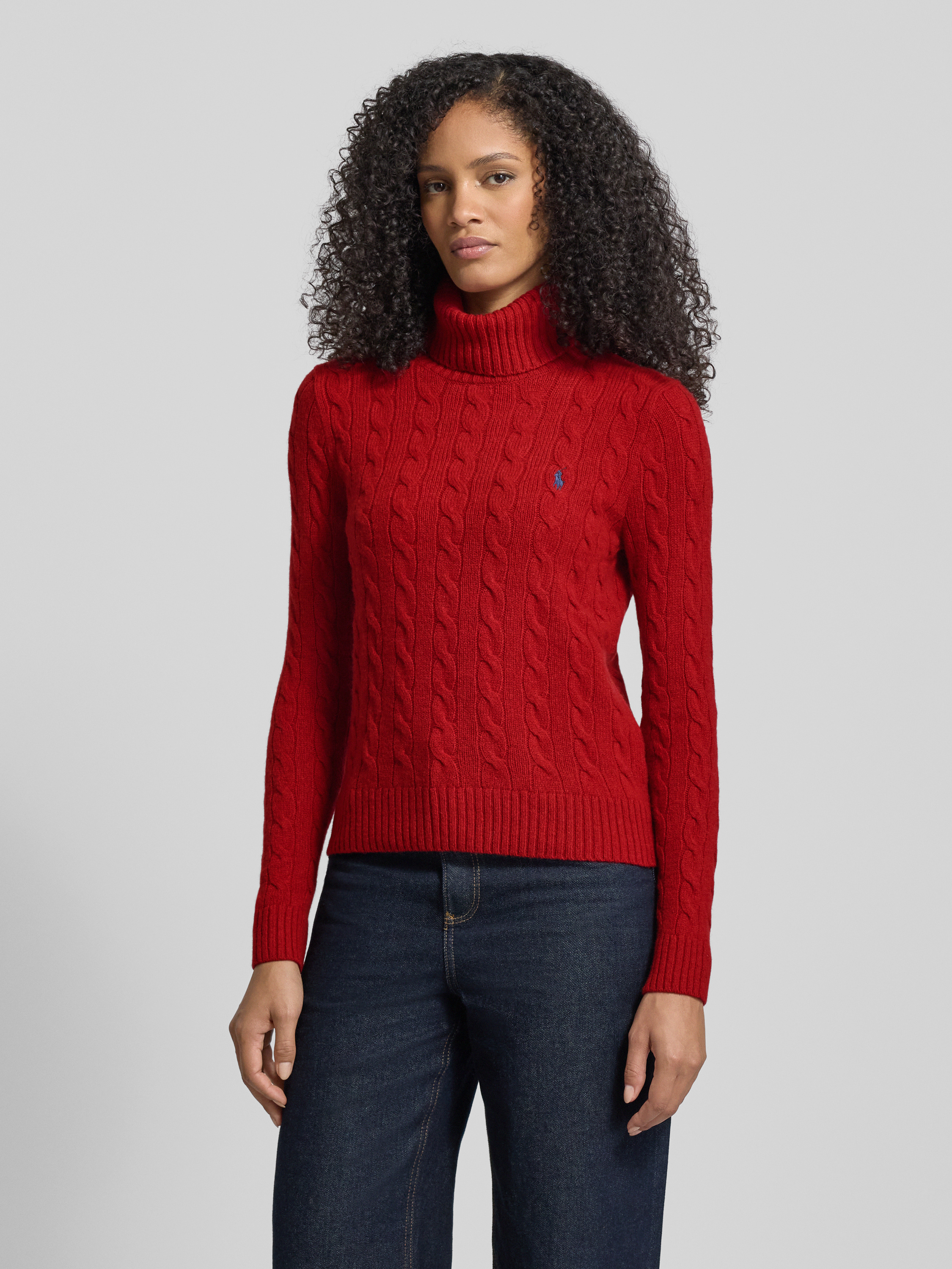 Der Damen Strickpullover von Polo Ralph Lauren zeichnet sich durch einen schlanken Slim Fit und einen angenehm weichen Material-Mix mit Baumwoll-Anteil aus. Dank des Rollkragens entsteht ein wärmendes Tragegefühl, während das dezente Label-Stitching feine Akzente setzt. Die gerippten Abschlüsse runden das Design harmonisch ab und sorgen für einen formstabilen Sitz.