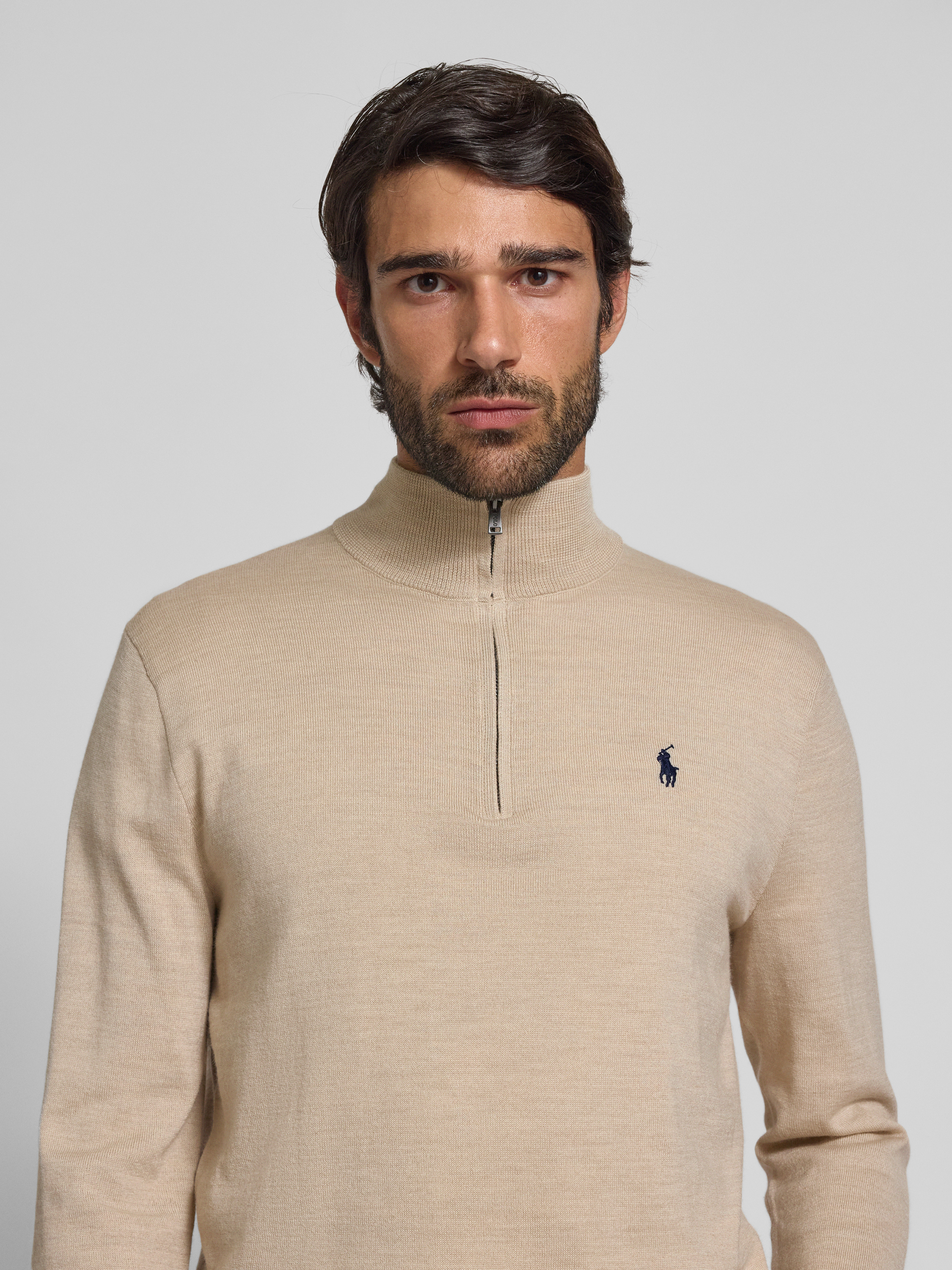 Polo Ralph LaurenStrickpullover mit Troyer-Kragen in ecru