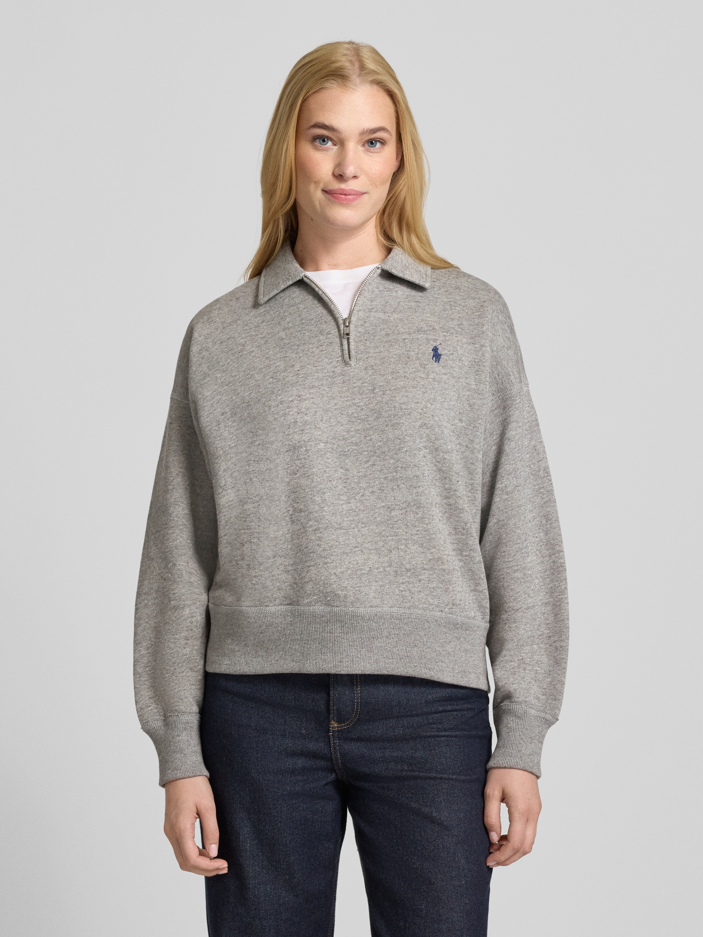 Polo Ralph LaurenSweatshirt mit Polokragen und Label-Stitching in mittelgrau