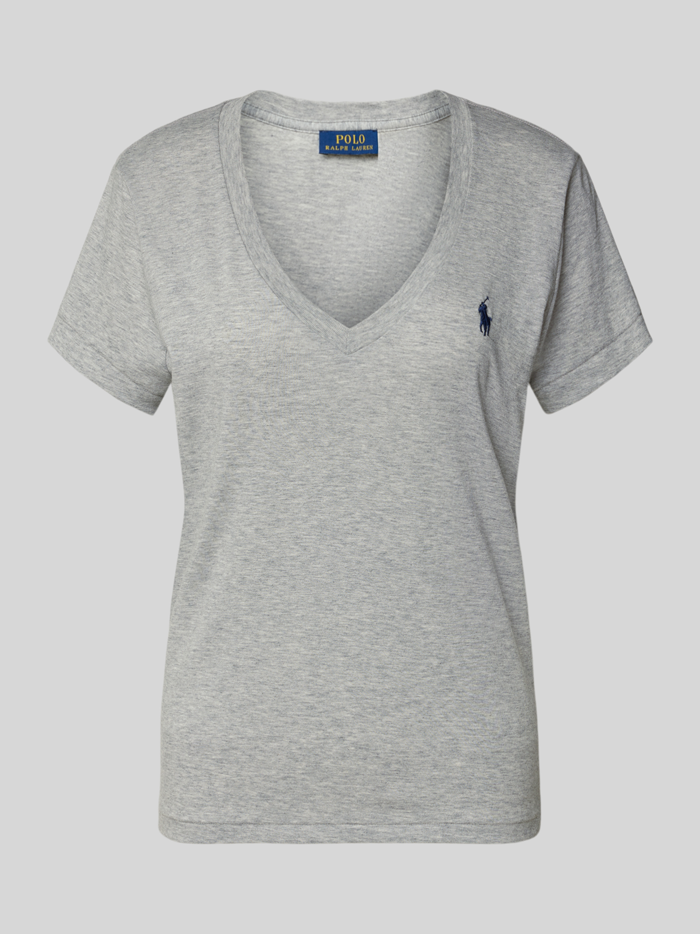 Polo Ralph LaurenT-Shirt mit Label-Stitching und V-Ausschnitt in stein