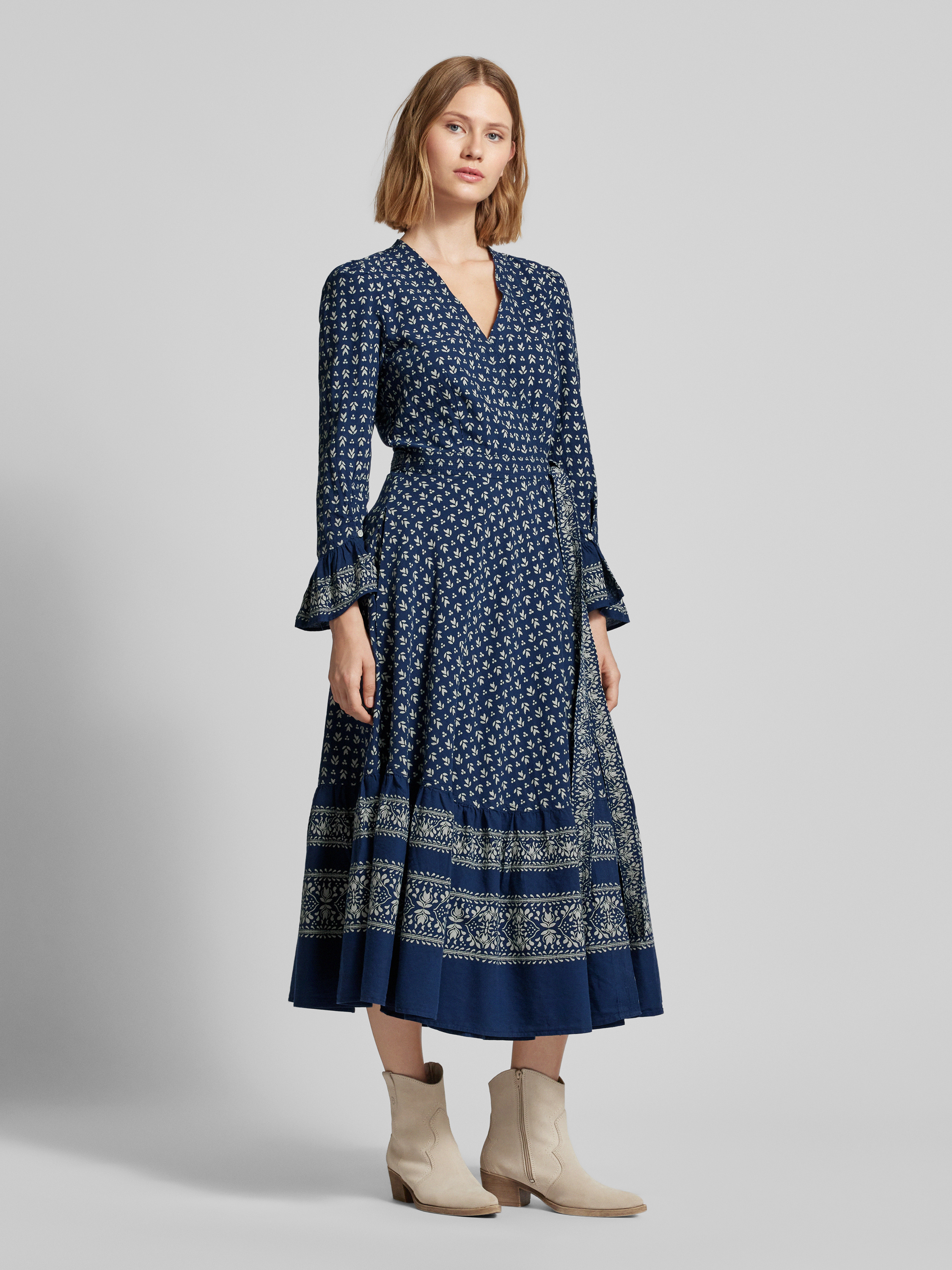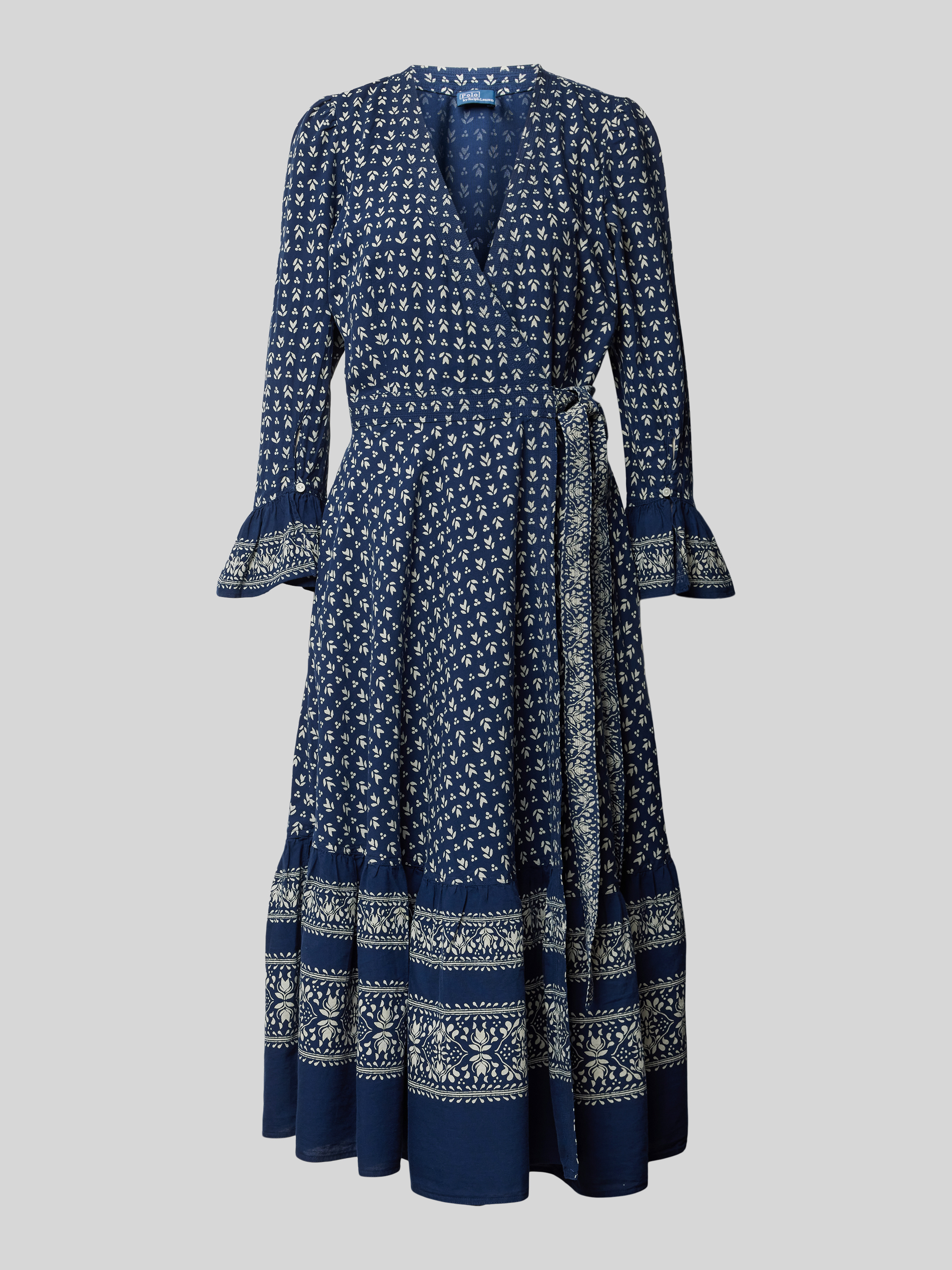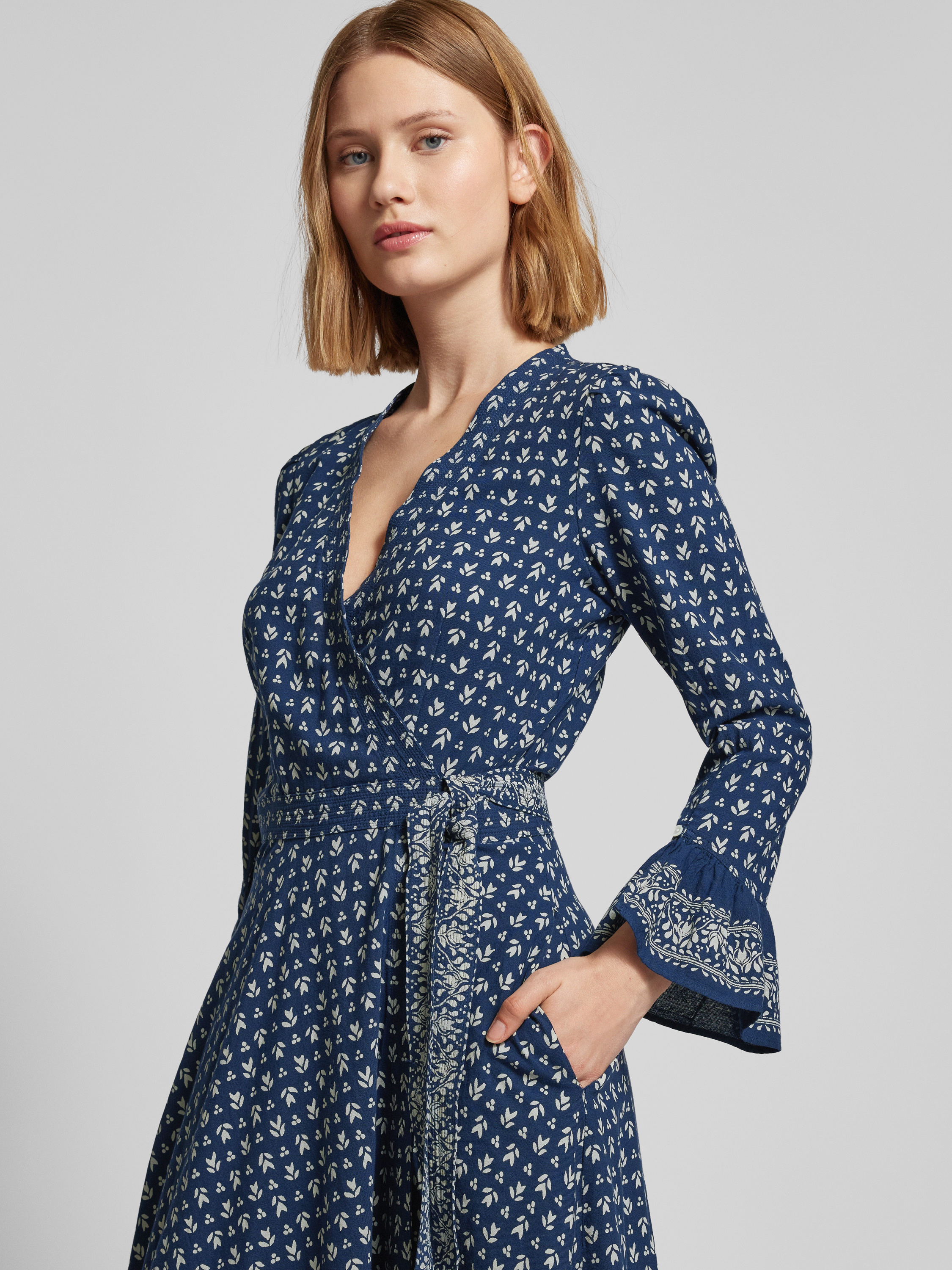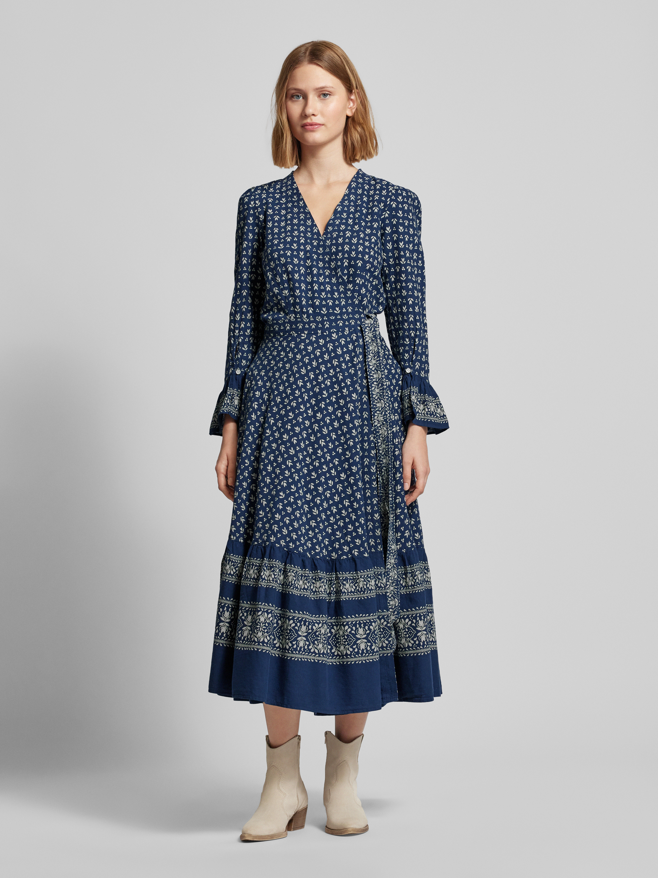 Das Wickelkleid von Polo Ralph Lauren kombiniert den Komfort reiner Baumwolle mit einem leicht ausgestellten Schnitt, der sanft die Silhouette umspielt. Der V-Ausschnitt und die gerüschten Ärmelabschlüsse fügen eine elegante Note hinzu. Mit dem Bindegürtel lässt sich die Passform individuell anpassen.
