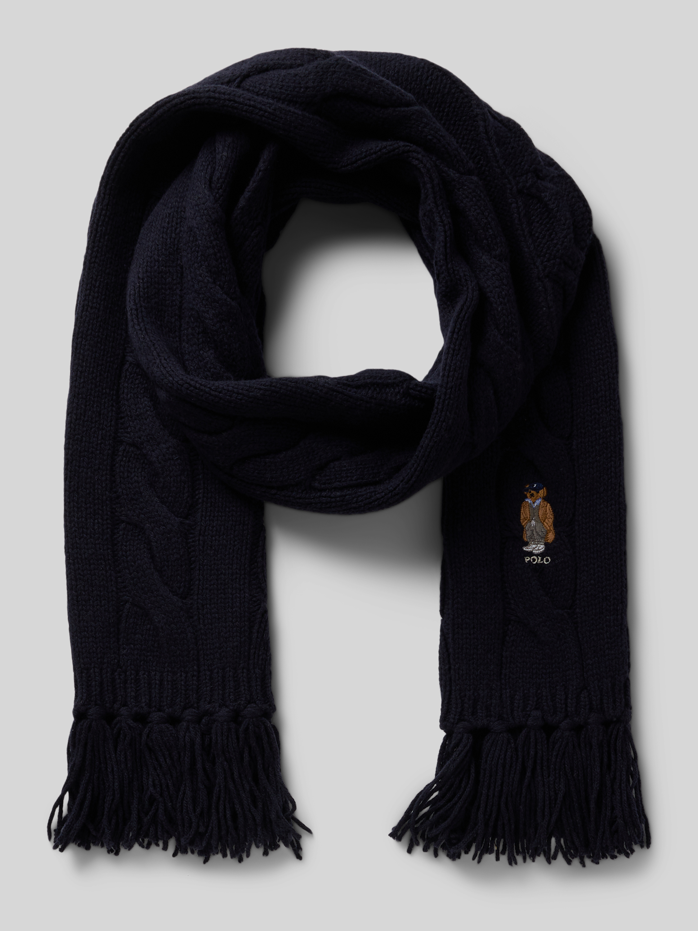 Der Damen Wollschal von Polo Ralph Lauren verbindet einen klassischen Zopfstrick mit einem feinen Woll-Mix, wodurch eine angenehme Haptik entsteht. Durch das Motiv-Stitching und die Fransen wirkt der Schal abwechslungsreich. So lässt sich jedes Outfit bei kühleren Temperaturen stilvoll ergänzen.