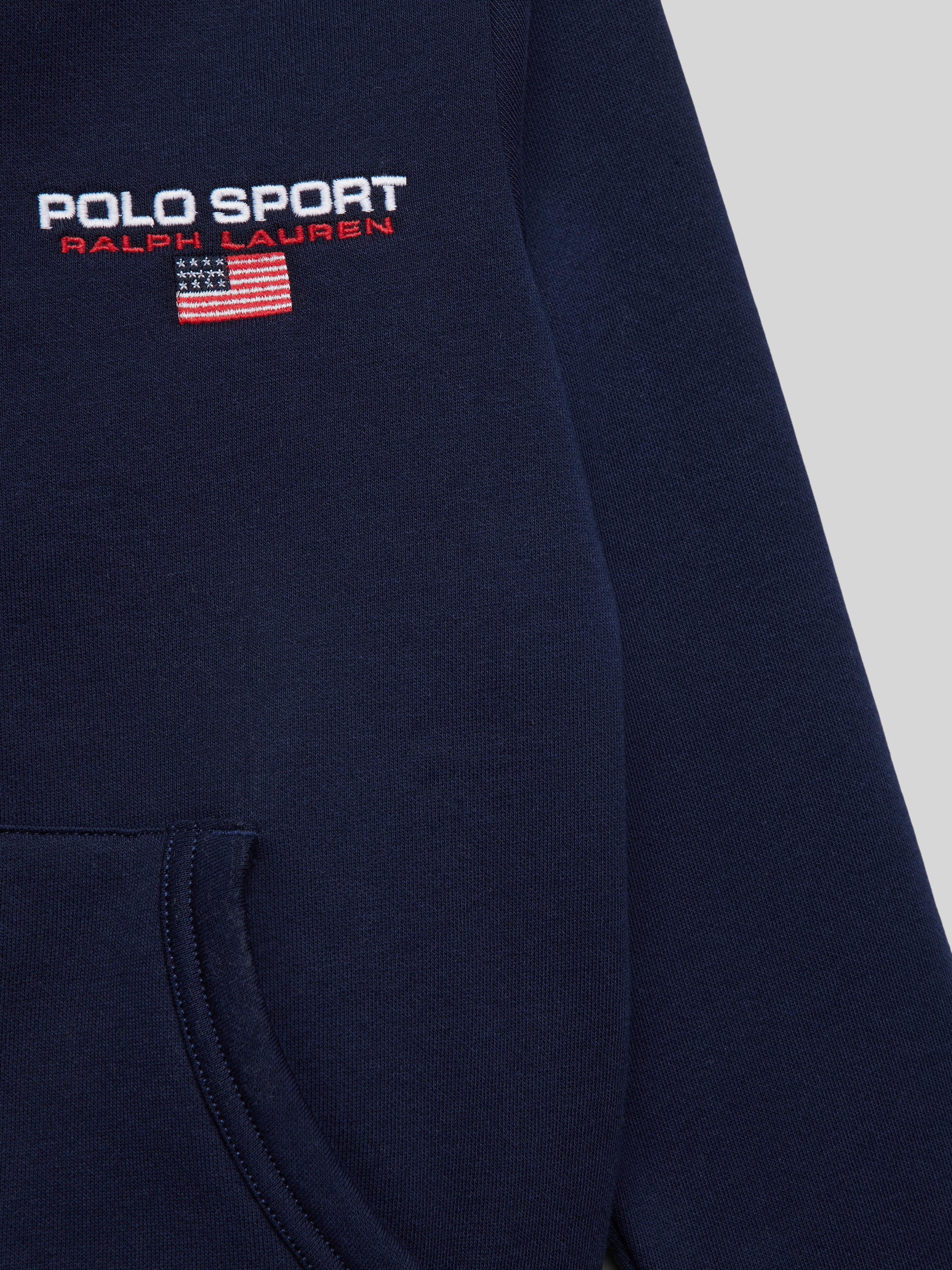 Die Sweatjacke von Polo Sport kombiniert eine lässige Melange-Optik mit dem angenehmen Tragekomfort eines Baumwoll-Mixes. Der Regular Fit sorgt für ausreichend Bewegungsfreiheit, während die Kapuze mit Tunnelzug an kühlen Tagen zusätzlichen Schutz bietet. Praktische Eingrifftaschen runden das funktionale Design ab.