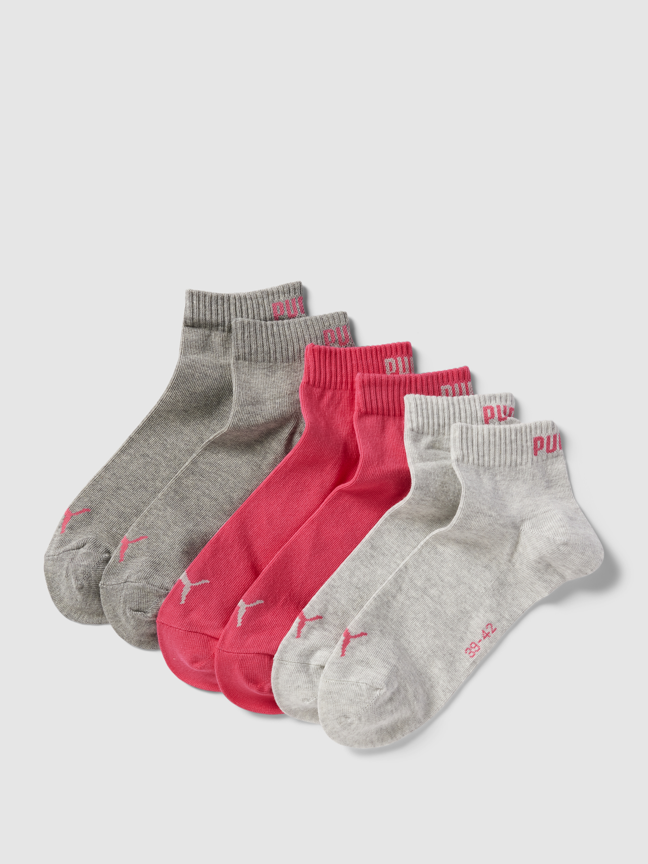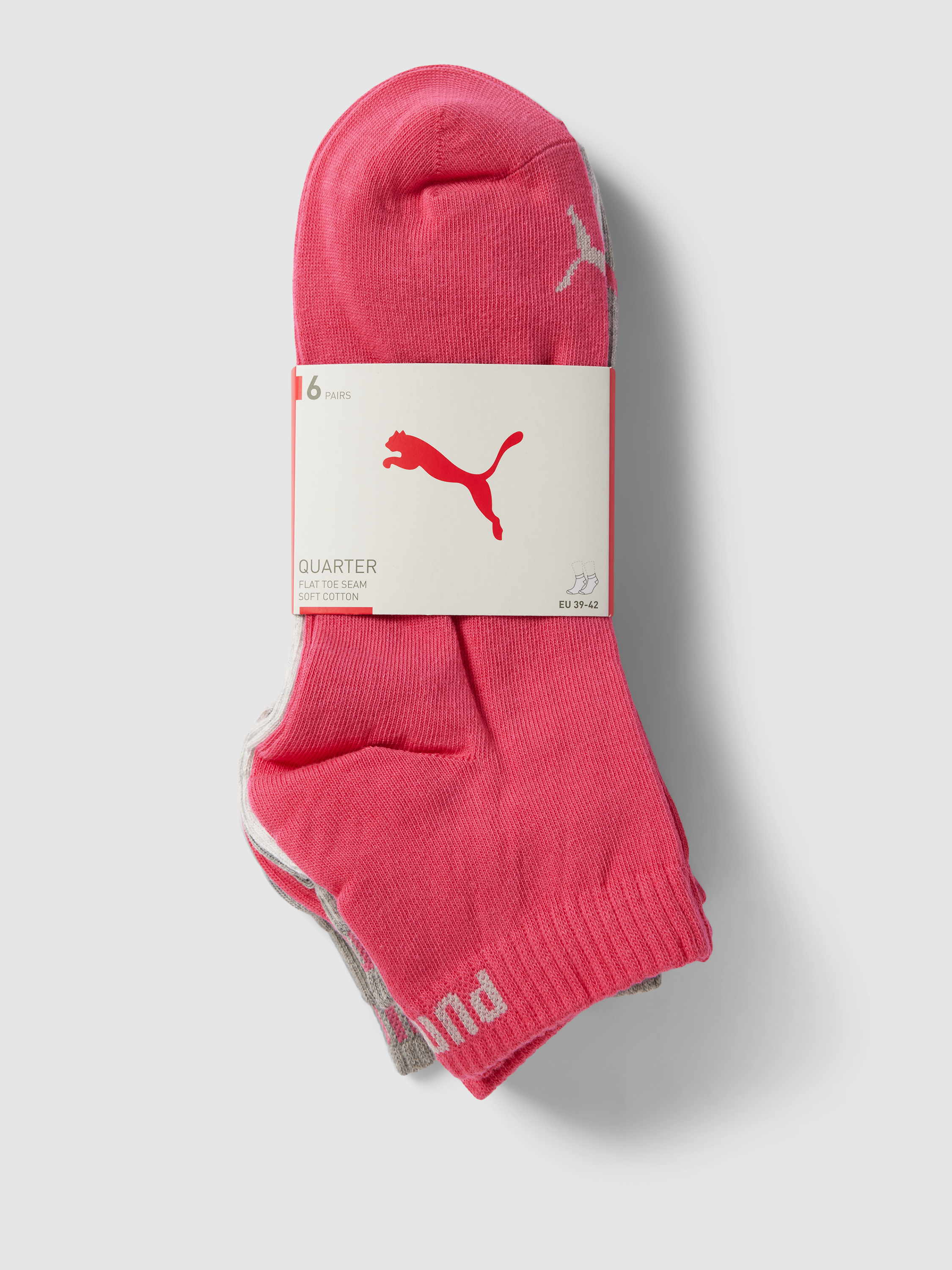 PUMASneakersocken mit Label-Print Modell 'Quarter Plain' im 6er-Pack in pink