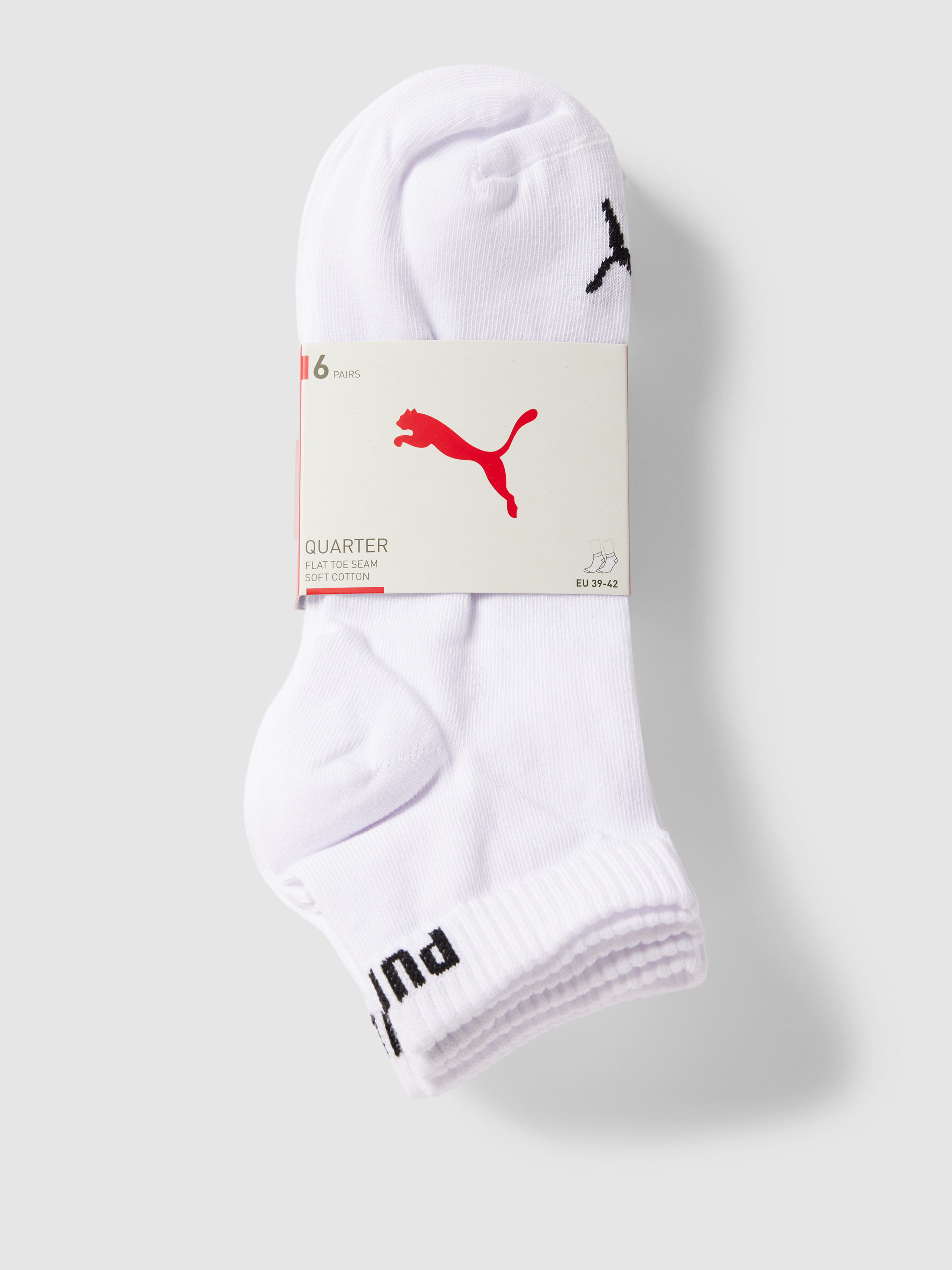 PUMASneakersocken mit Label-Print Modell 'Quarter Plain' im 6er-Pack in weiss