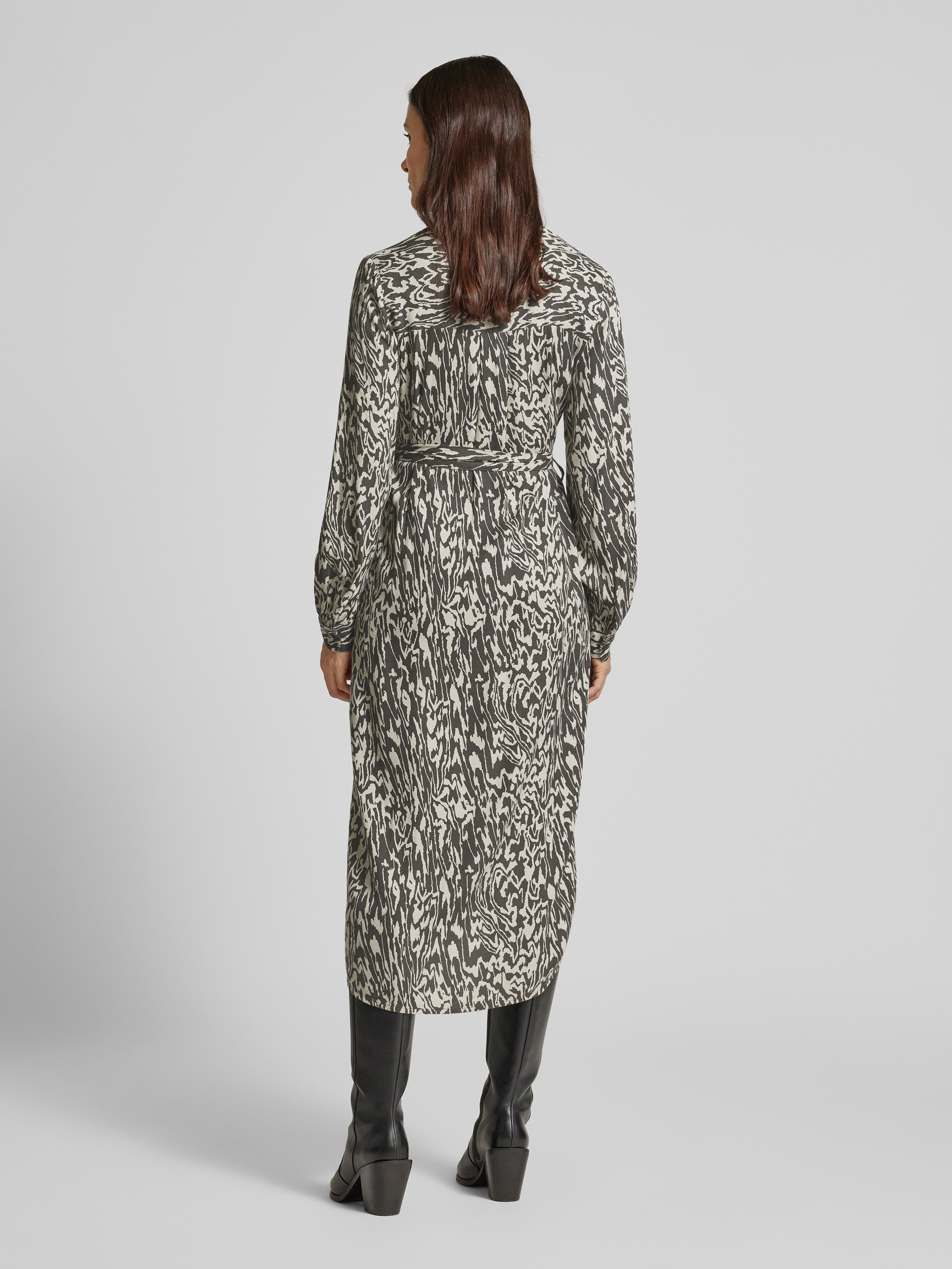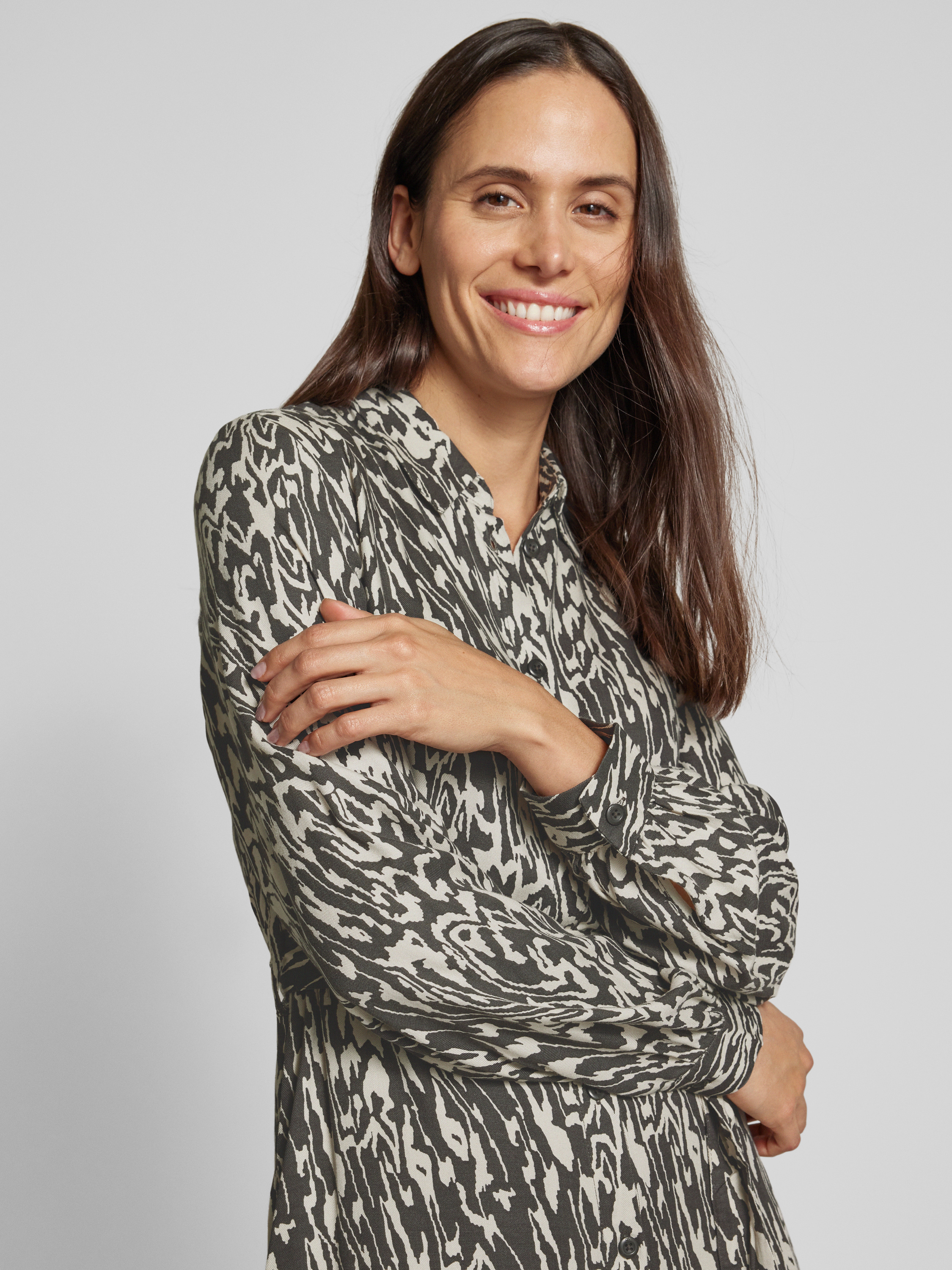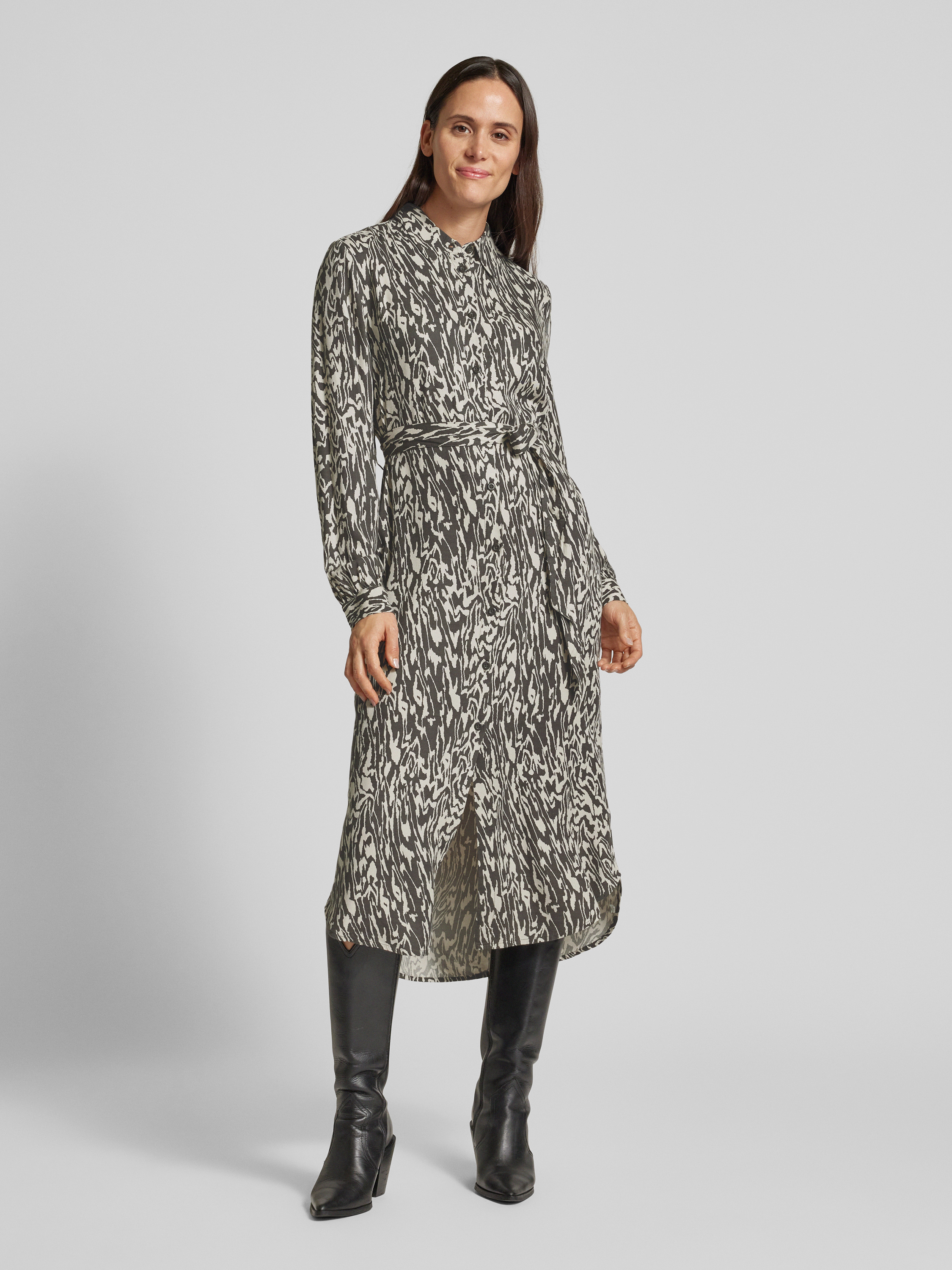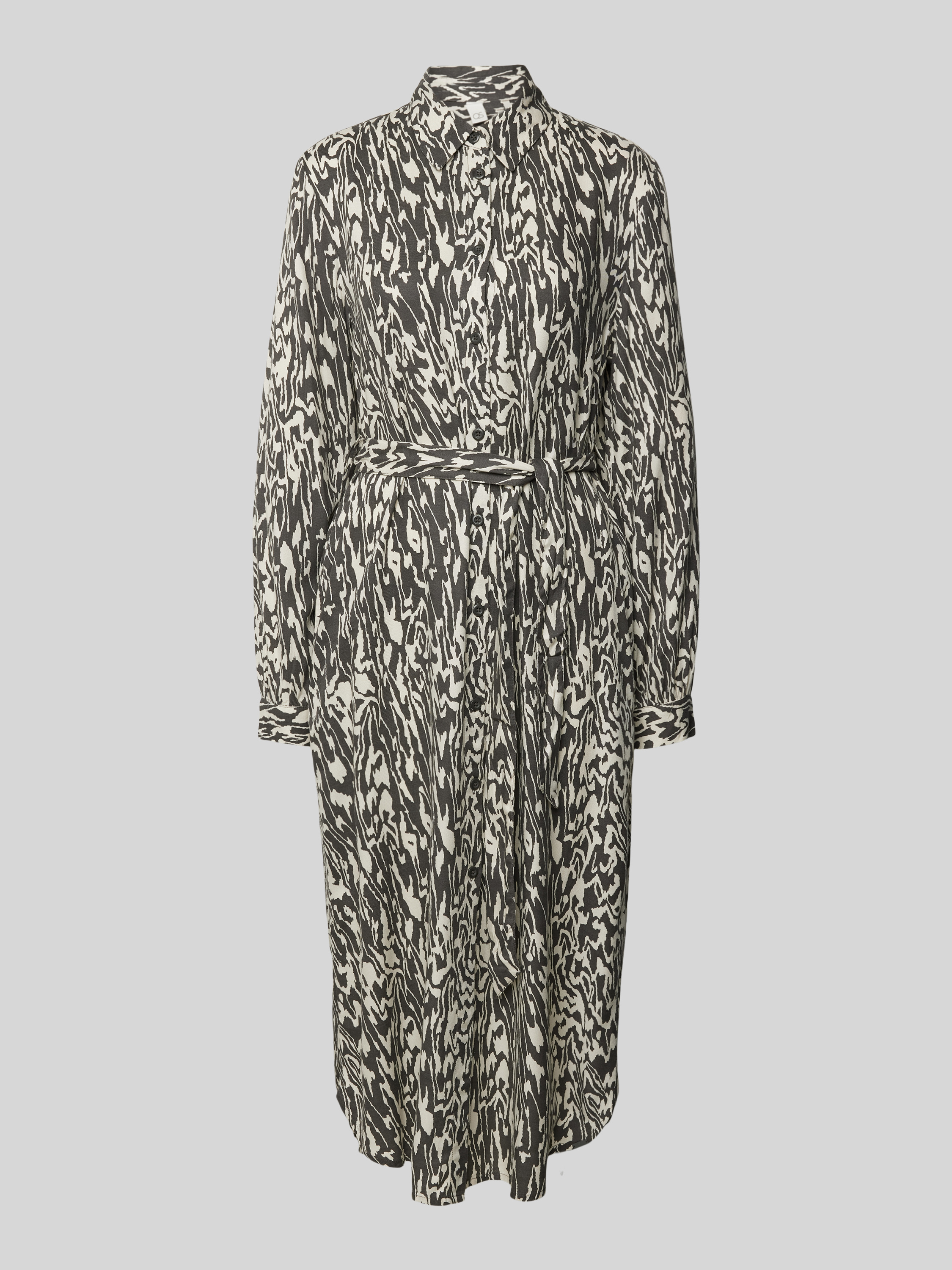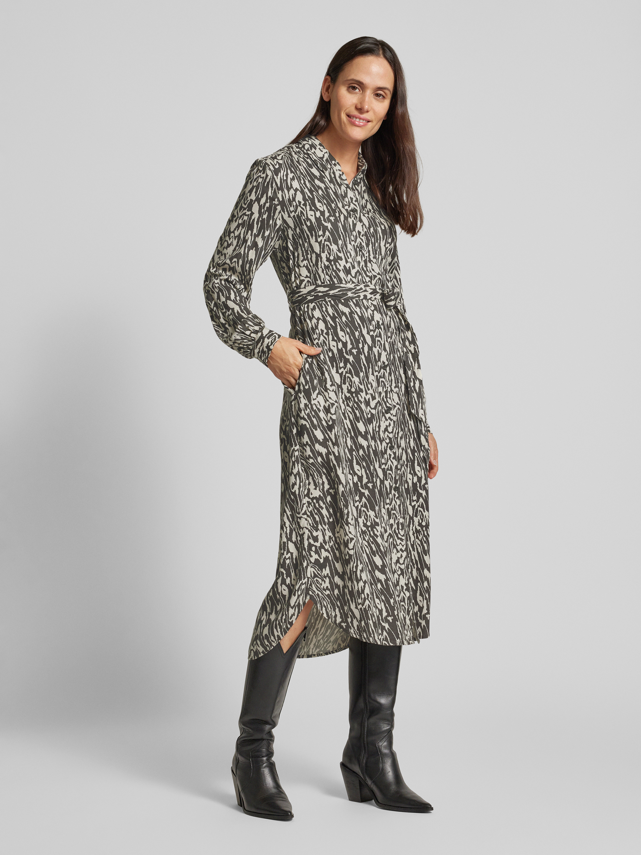 Das Hemdblusenkleid von QS by s.Oliver aus reiner Viskose vereint einen geraden Schnitt mit einem eleganten Umlegekragen und einer dezenten Knopfleiste. Der Bindegürtel ermöglicht es, die Silhouette individuell zu betonen, wodurch eine vielseitige Tragbarkeit im Alltag entsteht.