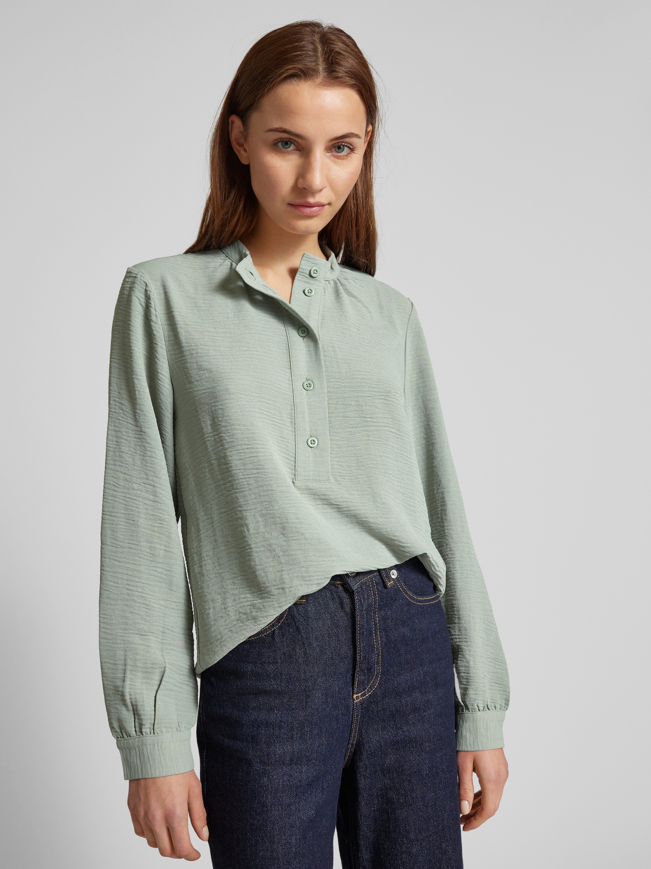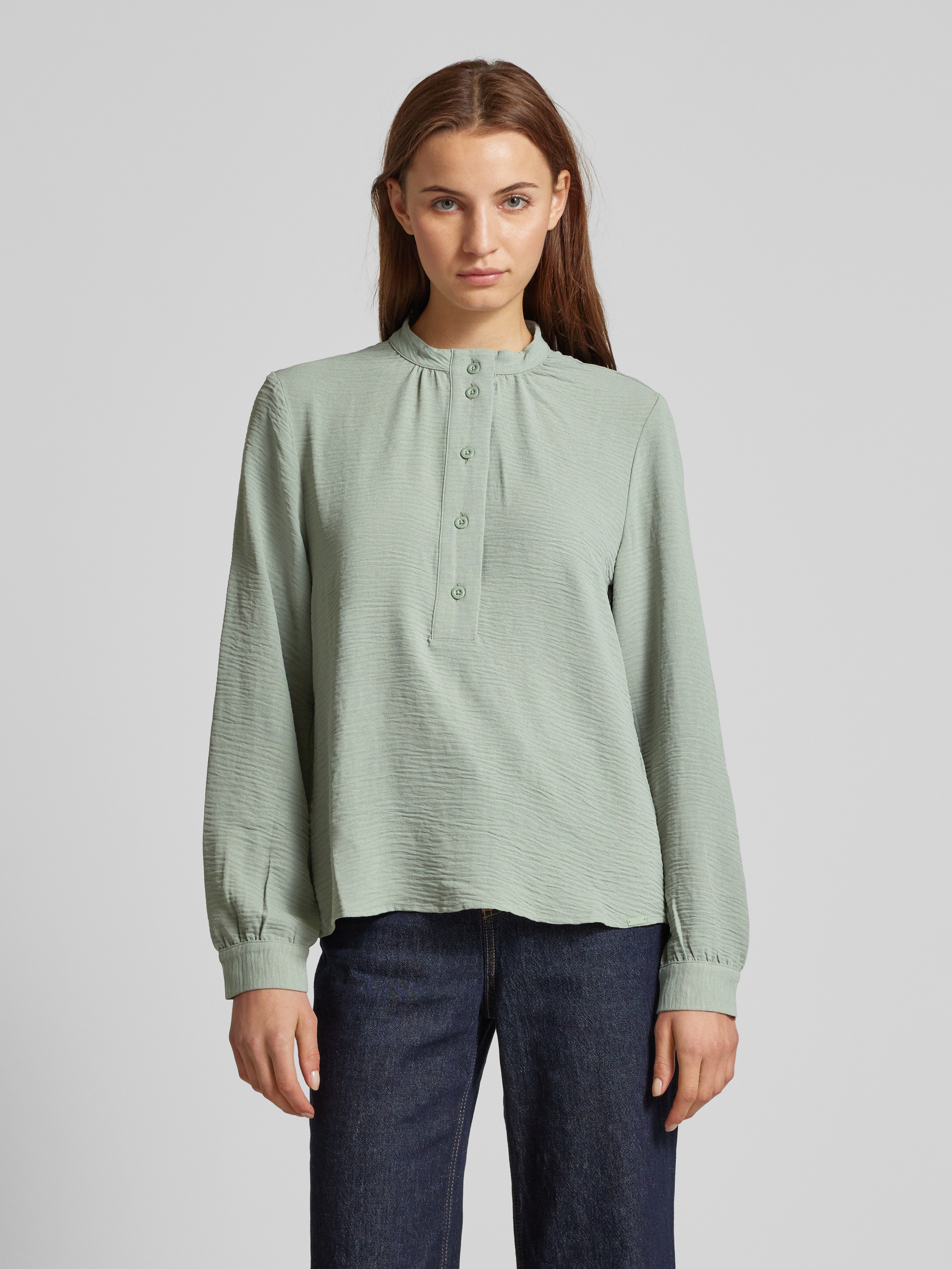 Die Regular Fit Bluse von QS kombiniert elegantes Design mit Komfort. Der Stehkragen und die Ballonärmel verleihen der Bluse eine raffinierte Note, während das Strukturmuster für eine ansprechende Optik sorgt. Diese Bluse eignet sich hervorragend für unterschiedliche Anlässe.