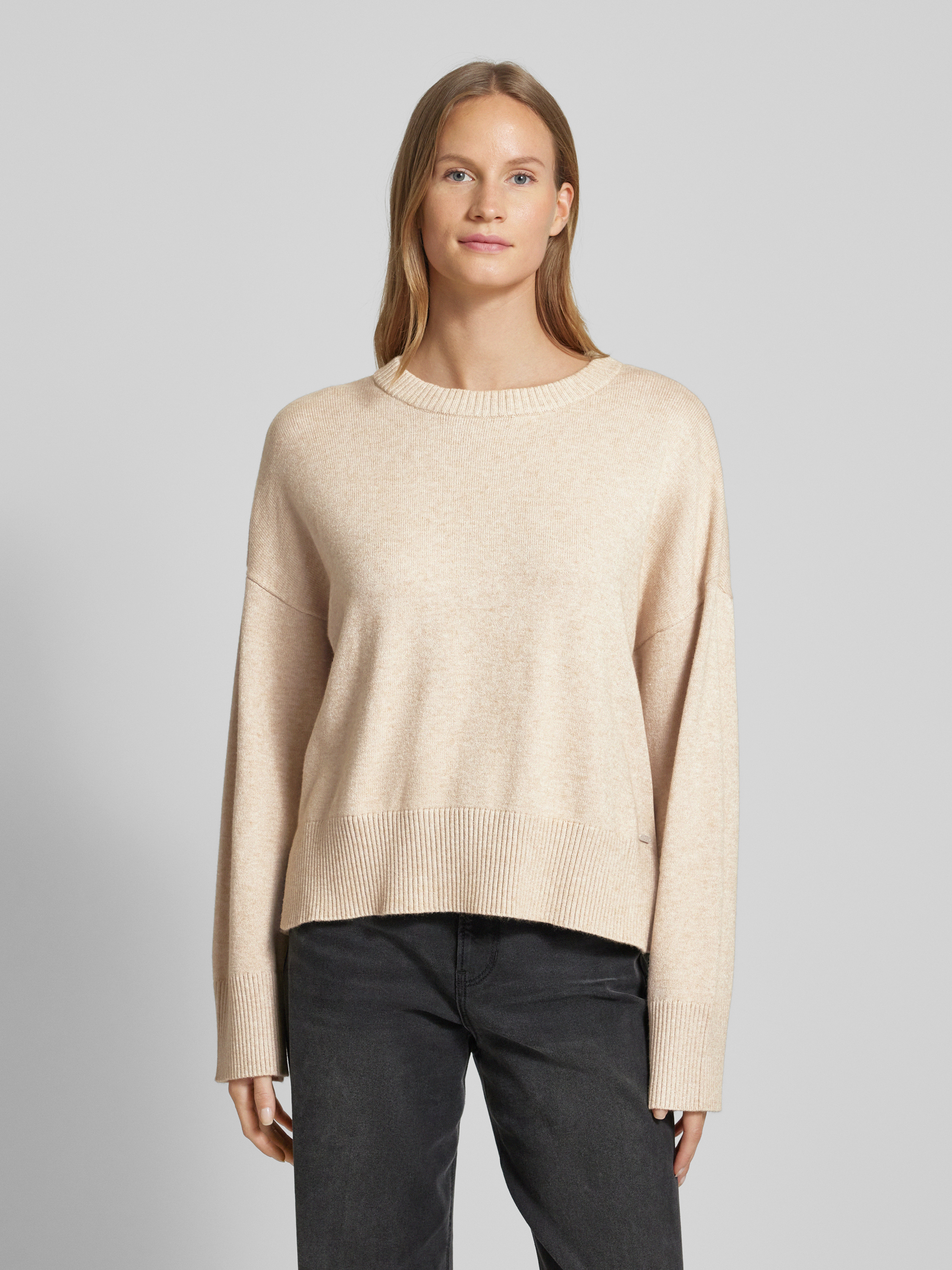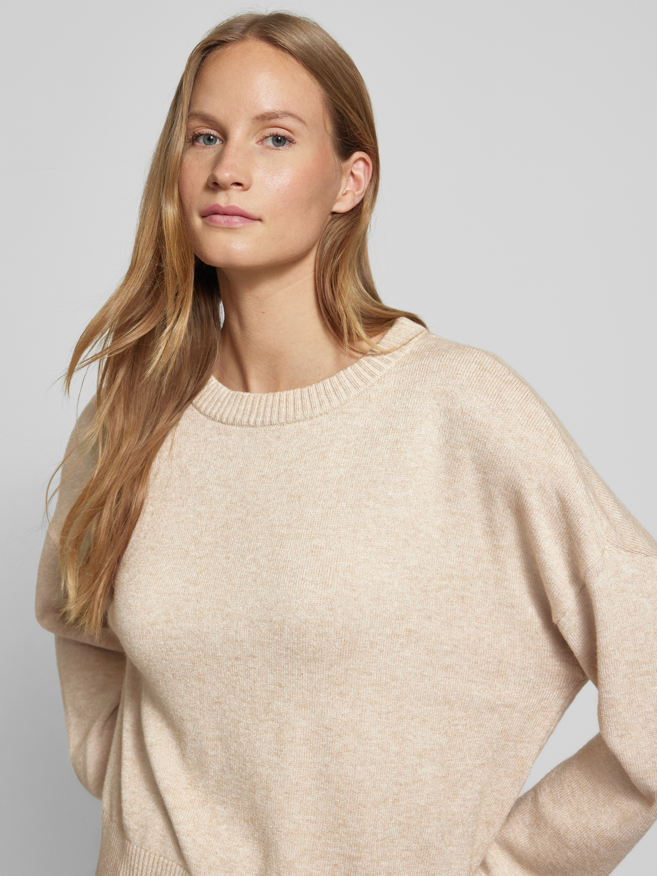 QSStrickpullover aus Viskose-Mix mit überschnittenen Schultern in beige
