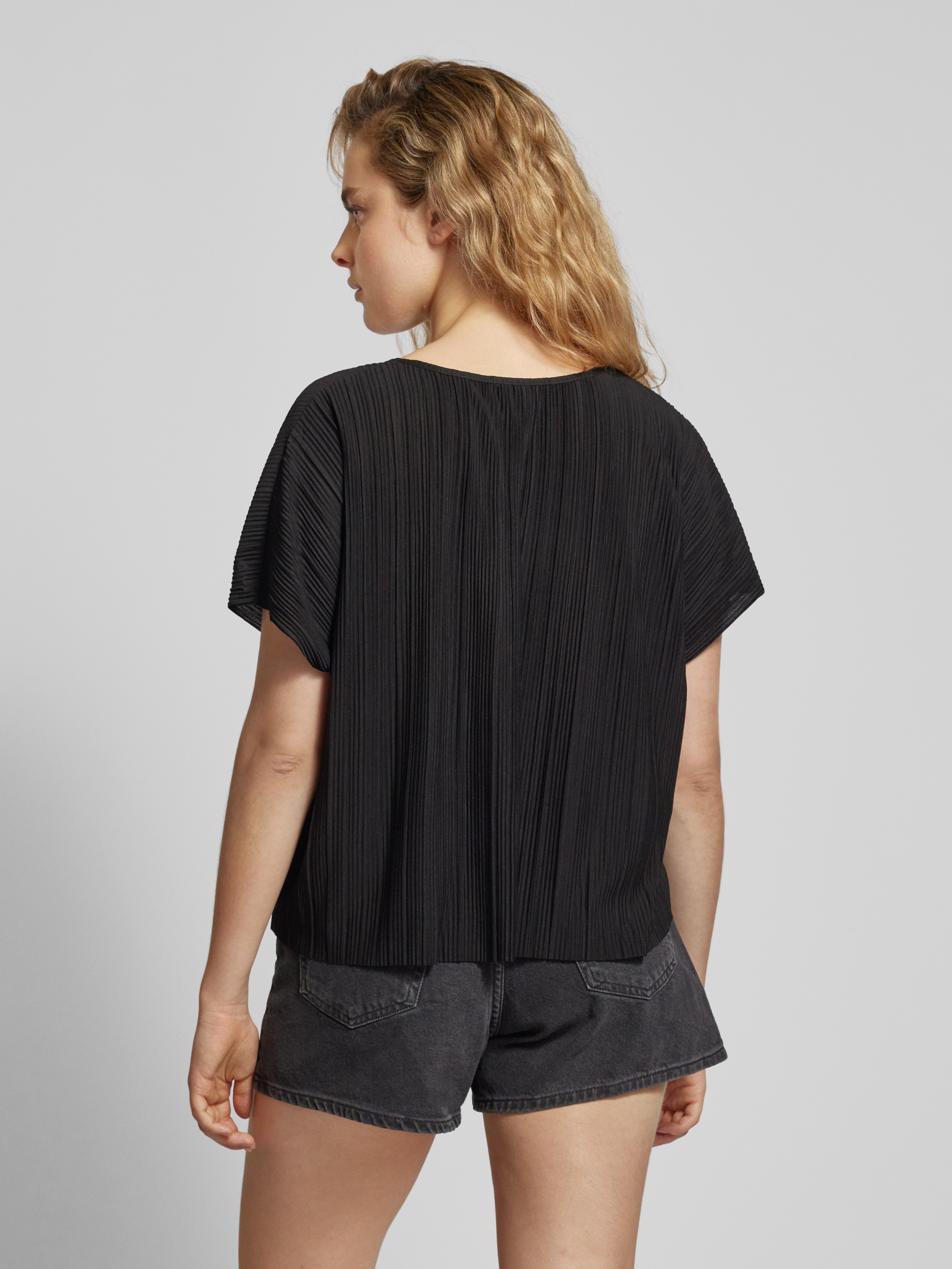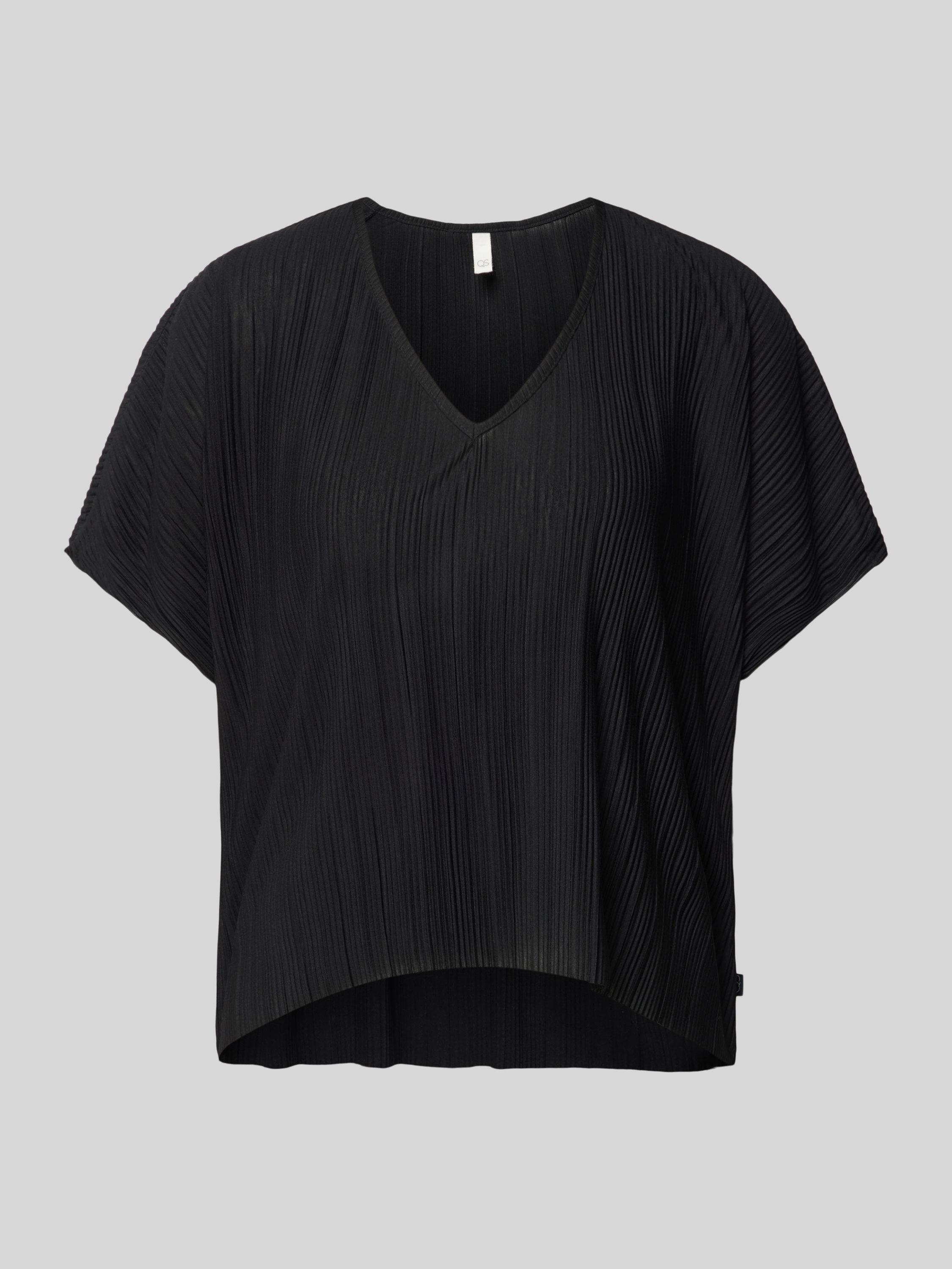 Das T-Shirt von QS by s.Oliver aus reiner Baumwolle kombiniert Leichtigkeit mit einem lässigen Schnitt und einem V-Ausschnitt. Die Plisseefalten verleihen dem Design eine interessante Struktur, während das Label-Detail subtil Akzente setzt. Es eignet sich ideal für einen entspannten Alltag.
